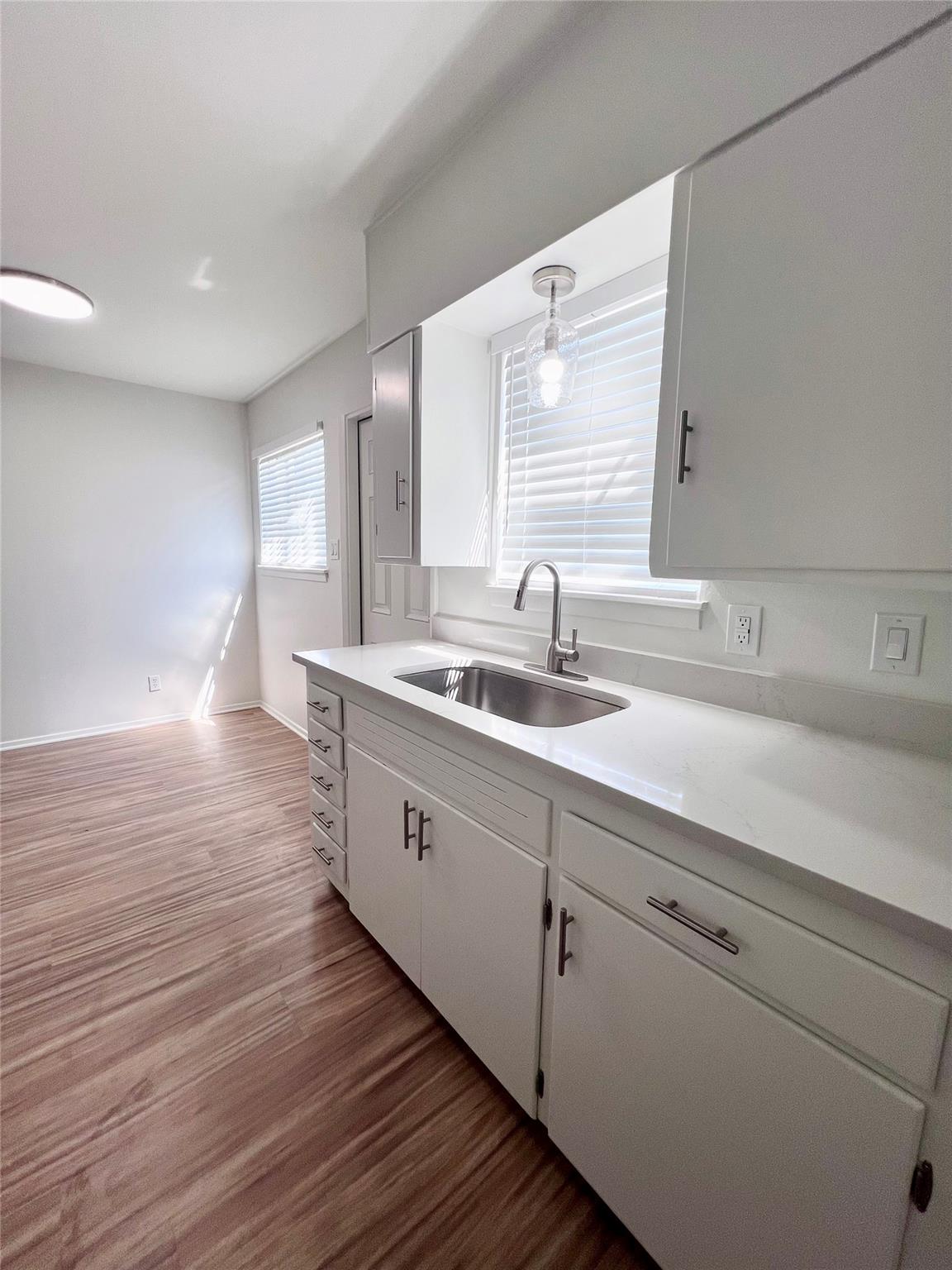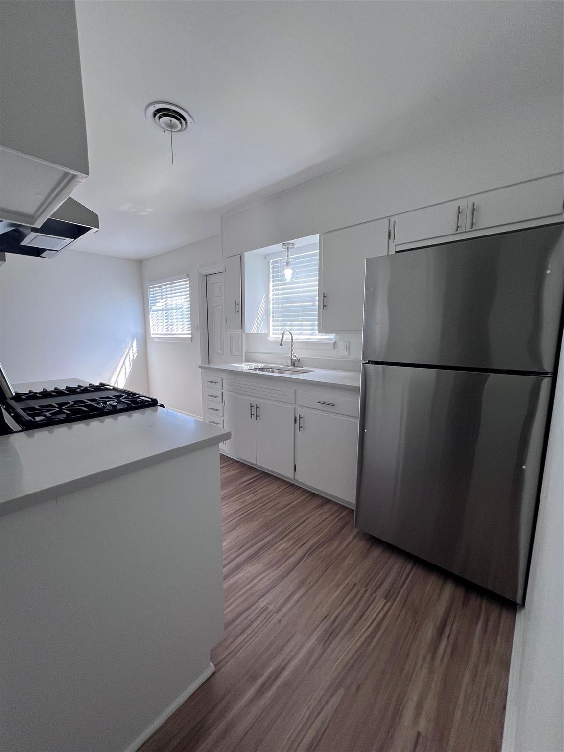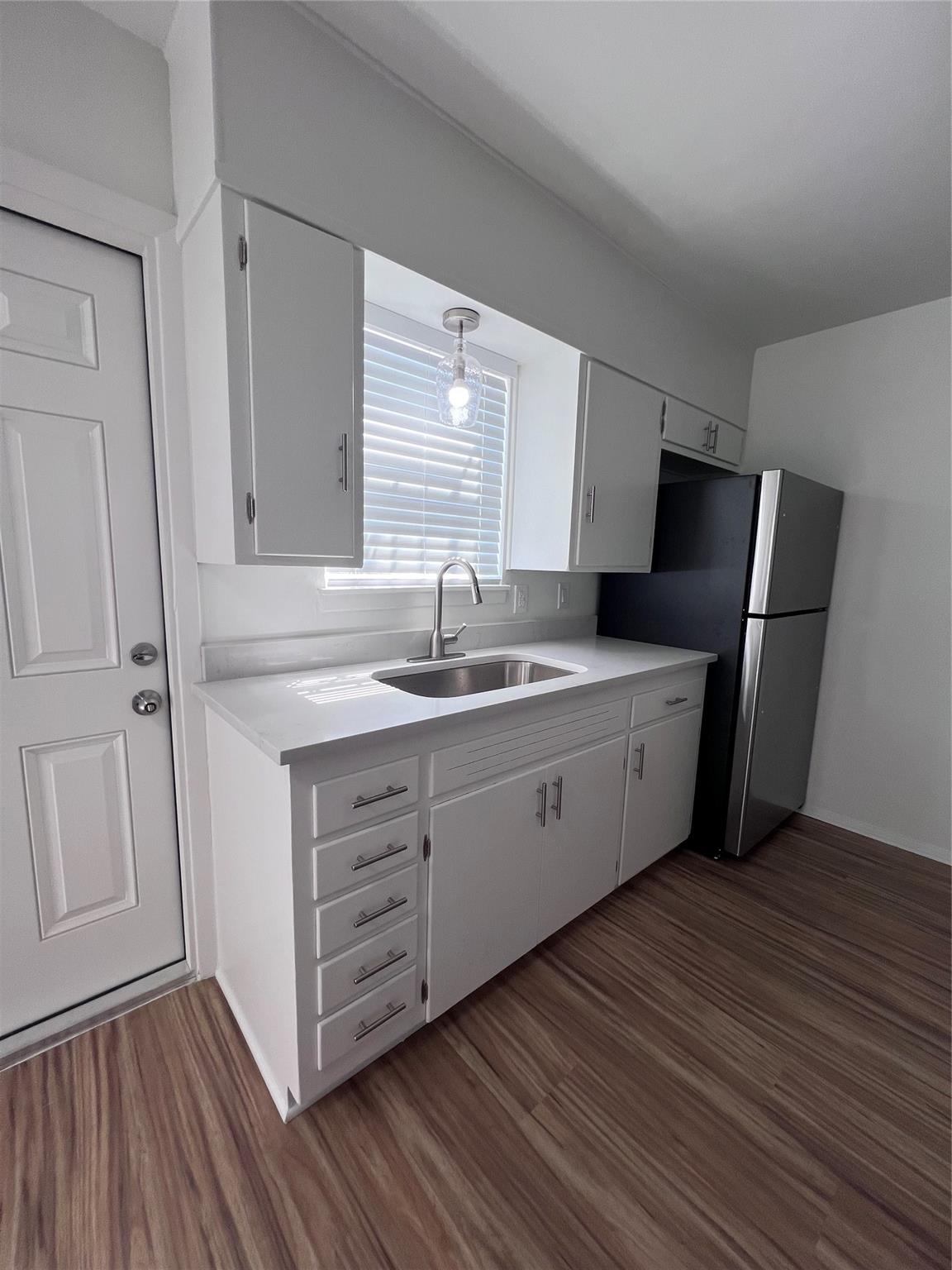 Darling 2 bedroom 1 bath duplex. Just completely renovated. Every surface updated inside and out. All hard surface floors, quartz counters in kitchen and bath. SS appliances. Washer/Dryer in utility room. Carport parking. Fenced back yard. Please submit photo ID along with docs from listing. Renters insurance required.