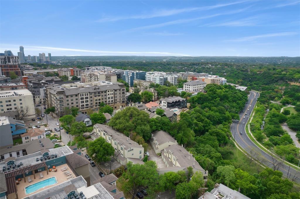 Truly one of best views in Central Austin. Complex and this unit sit on top of cliff overlooking Lamar and Pease Park. Close to Bus Stops, Shopping, Downtown, Parks and more. Great 2 story BEING LEASED AS 1 BEDROOM AND 1 BATH PLUS OFFICE EACH FOR 2 SEPARATE PEOPLE AS ROOMMATE MATCHING. GREAT for UT Students or Professionals wanting to beat Austin Rents. Washer dryer fridge stay. Exterior currently being upgraded. New dishwasher, AC recently serviced. **HOA includes water and trash FURNISHED IF WANT IT