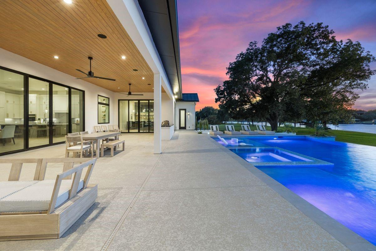 1813 Legends Parkway on Lake LBJ is undeniably one of the most exquisite estates on LBJ, the true epitome of luxury. Stunning lakeviews that captivate the imagination, overlooking the spa, negative edge pool and the luscious green lawn that sprawls over the 4.4 acreestate that seems to flow endlessly into the lake with its 243’ ft. of spectacular open waterfront. Several fantastic entertainingopportunities include the stylish high-end lounge and bar or take the fun outdoors to the summer kitchen with large entertaining poolsidepatio, lakeside the boat house provides lake fun and activities, all embracing the outstanding location and unsurpassed views of the lake.So much more than a home it's a lifestyle. The Legends is a highly coveted gated golf course // waterfront community on the ColoradoArm of Lake LBJ. The impressive collaboration of light warm neutrals, new construction, aye-inspiring modern style, and a designlayout that so perfectly provides a tranquil paradise that will provide a lifetime of memories. The home is being offered stylishlyfurnished, with the watercraft, its everything you need to enjoy luxurious lake life immediately.