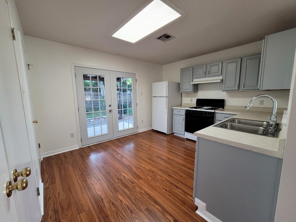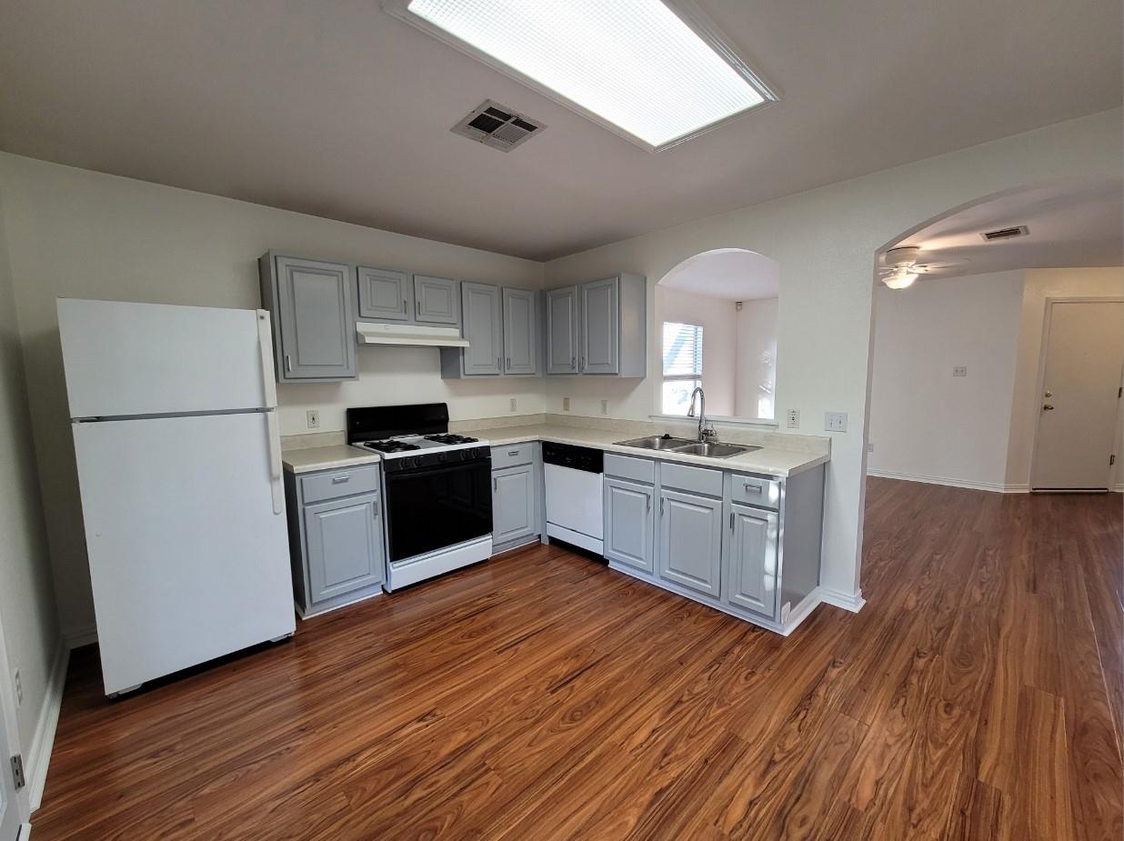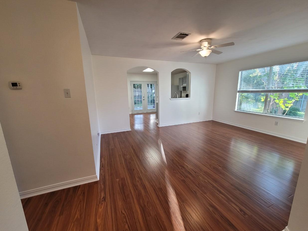 Welcome to your dream home in the heart of the highly sought-after Spring Branch community! This meticulously maintained single-story gem is situated on a peaceful cul-de-sac street, offering the perfect blend of tranquility and convenience. As you step inside, you'll be greeted by an inviting open concept floorplan, highlighted by an abundance of natural light and waterproof laminate wood flooring that flows throughout the main living areas and bedrooms. The spacious living room sets the stage for cozy gatherings or entertaining friends, creating a warm and welcoming atmosphere. The eat-in kitchen is a chef's delight, boasting ample cabinetry, a gas range, and a pantry for all your culinary needs. Picture yourself enjoying morning coffee or hosting al fresco dinners with beautiful French doors that open to a covered back patio, seamlessly blending indoor and outdoor living. Retreat to the generously sized owner's suite, featuring a large walk-in closet and a private bathroom for a luxurious escape. The additional bedrooms provide flexible space for guests, a home office, or whatever suits your lifestyle. Step outside to discover the private backyard oasis, adorned with lush landscaping that creates a serene retreat. Whether you're unwinding after a long day or hosting weekend barbecues, this outdoor space is the perfect extension of your home. Located just minutes away from major amenities, you'll enjoy easy access to the huge HEB Plus, Seton Hospital, Lake Kyle Park, Uptown Kyle Domain project, Plum Creek Golf Course, Hays City Store Restaurant, I-35, San Marcos, EVO Entertainment, South Austin, Tanger Outlet Mall, Southpark Meadows, shopping, restaurants, Downtown Buda bars and restaurants, over eight wineries/breweries/distilleries, and Doc’s Drive-in Theater in Buda. Washer, dryer, and refrigerator included. Schedule a showing today!