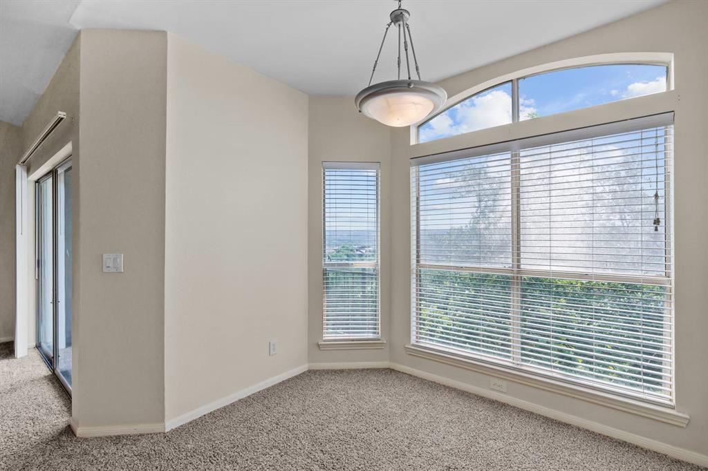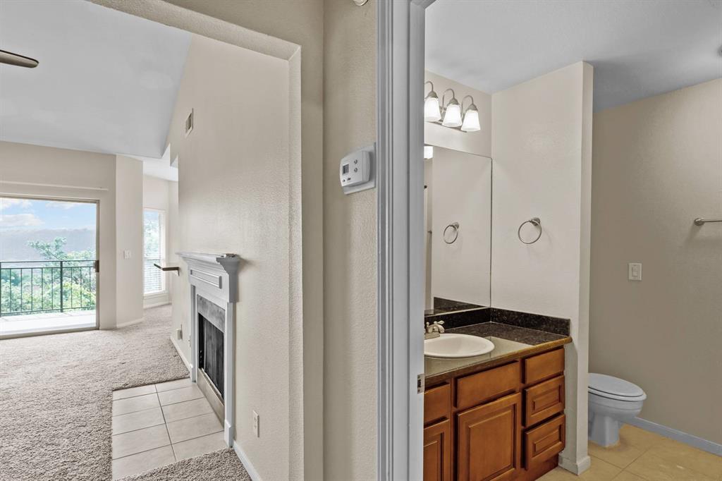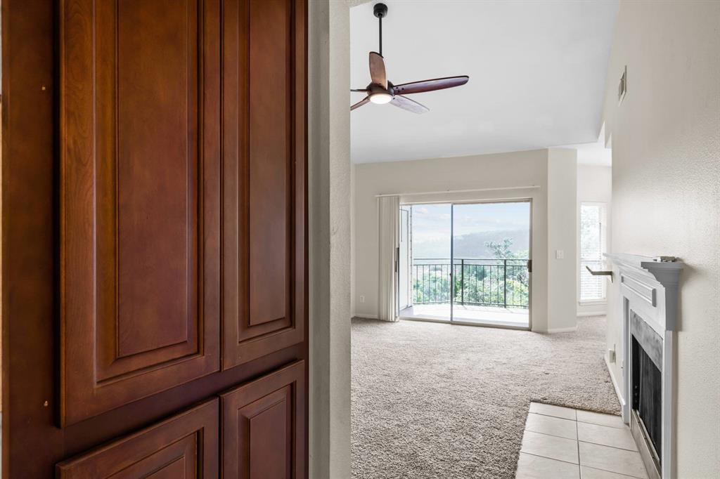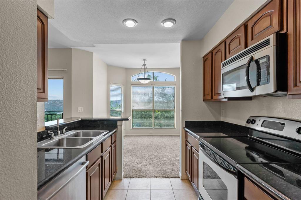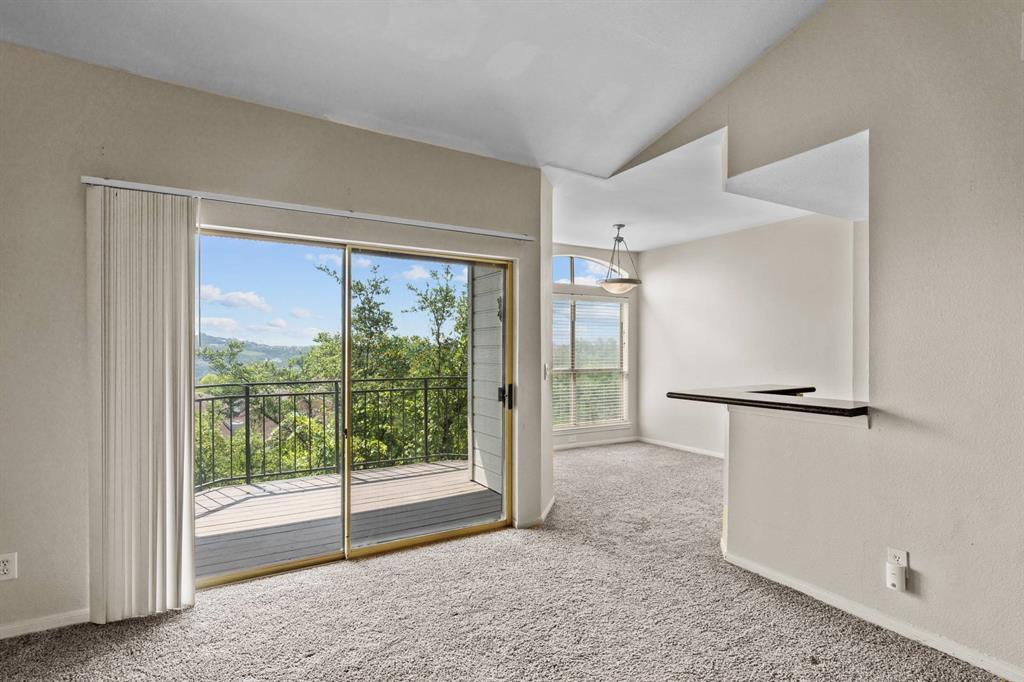Panoramic Views from your private balcony! This 1-bedroom / 1-bathroom condo is on the top floor so no one is overhead. Enjoy your morning coffee or cocktail after a long day while overlooking the breathtaking views of the Hill Country from your covered balcony. Living room showcases a vaulted ceiling, wood burning fireplace, and ceiling fans. Condo also features a dining area, bar seating, and gourmet kitchen with granite countertop and Stainless Steel appliances. Bedroom features a walk-in closet and ceiling fan. Located just north of the Pennybacker Bridge, the Monte Vista Community is ideally situated right off Capital of Texas Hwy / 360, the hike and bike trails, Lake Austin, Davenport Village, Bull Creek, Arboretum, Domain, and so much more.... This community offers incredible amenities, including a resort-style pool, hot tub, outdoor kitchen/BBQ, fitness center, and clubhouse. Includes 1 designated parking space (Parking Spot is V4), refrigerator, and washer & dryer. HOA covers water, sewer, and trash.