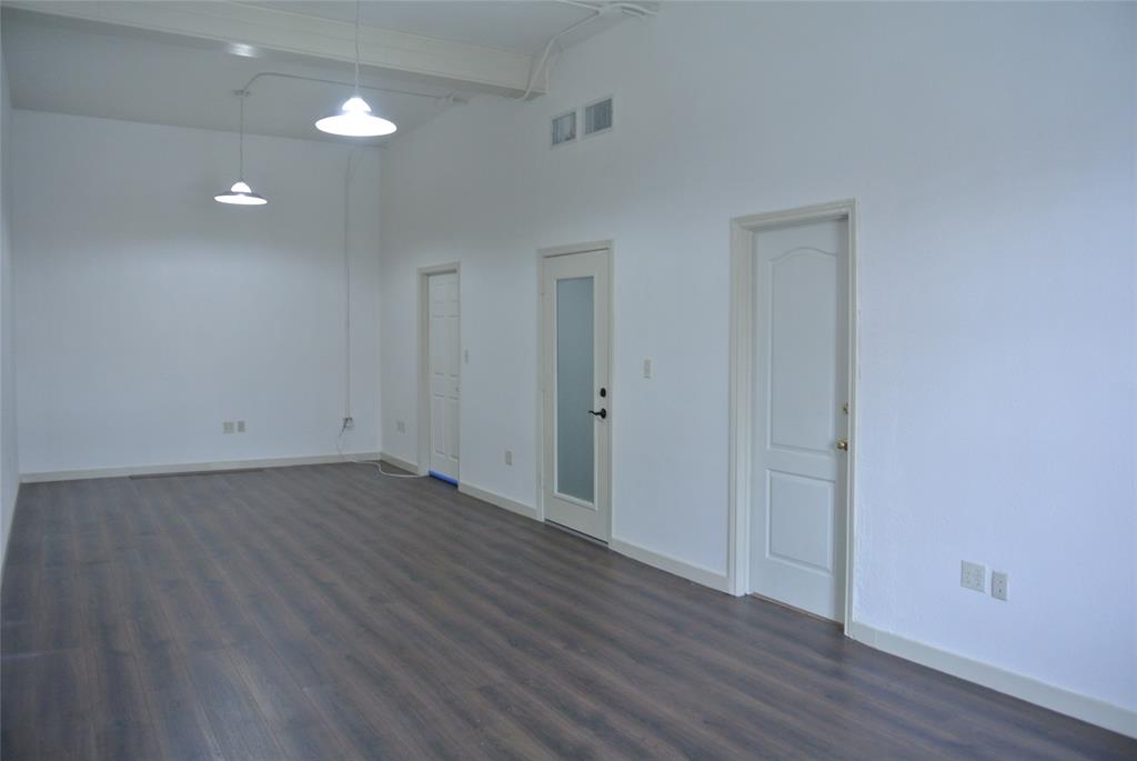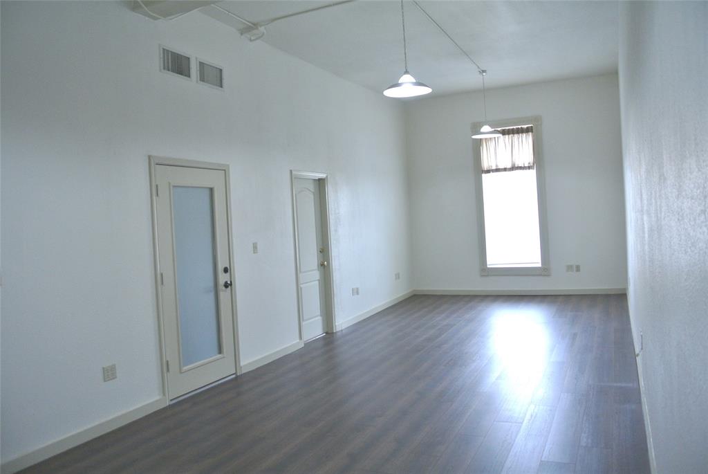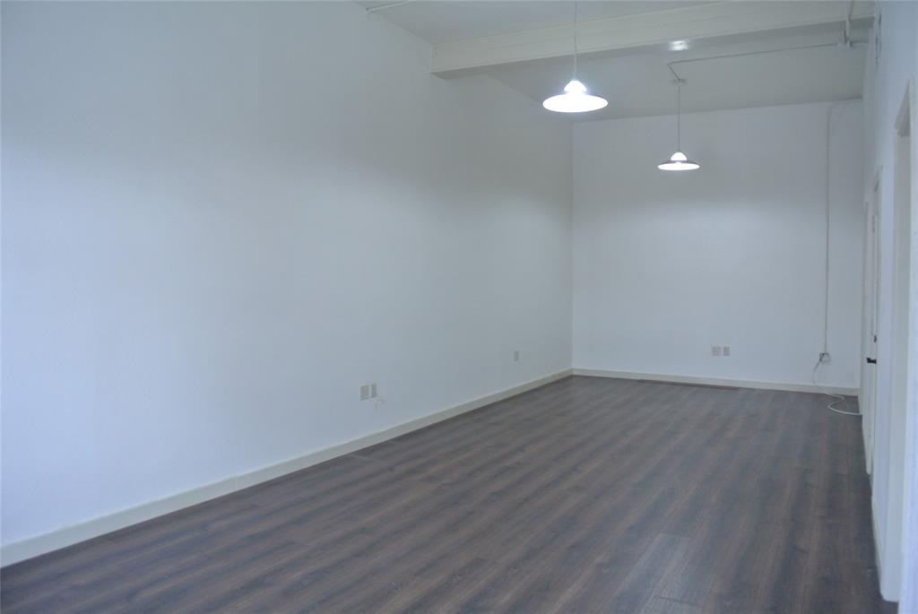Great views of downtown Main Street from this upstairs office space with approximately 432 square feet (33 x 12). Internet connections available. Tall ceilings. Laminate floors. Restrooms and common kitchen areas. Small lobby area. Window faces Main Street. Common area shared with 5 offices.