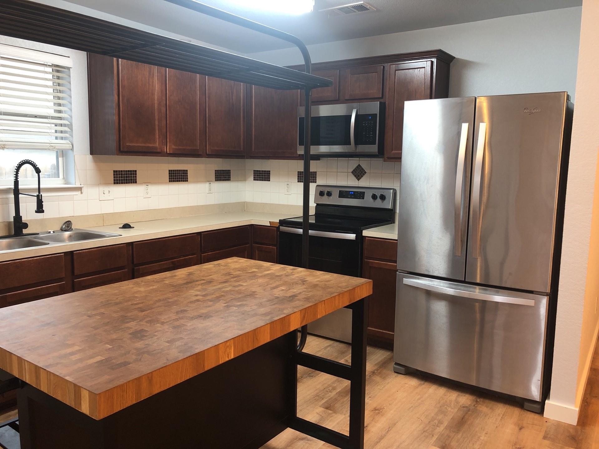 Charming 3bd/2ba home in Jarrell ready for you! This home has no carpet and features laminate throughout the home. Wonderful butcher block center island in the kitchen with stainless appliances. Fridge, washer and dryer are currently provided. Back yard is fully privacy fenced and has a large back patio for your grilling and back yard entertainment.