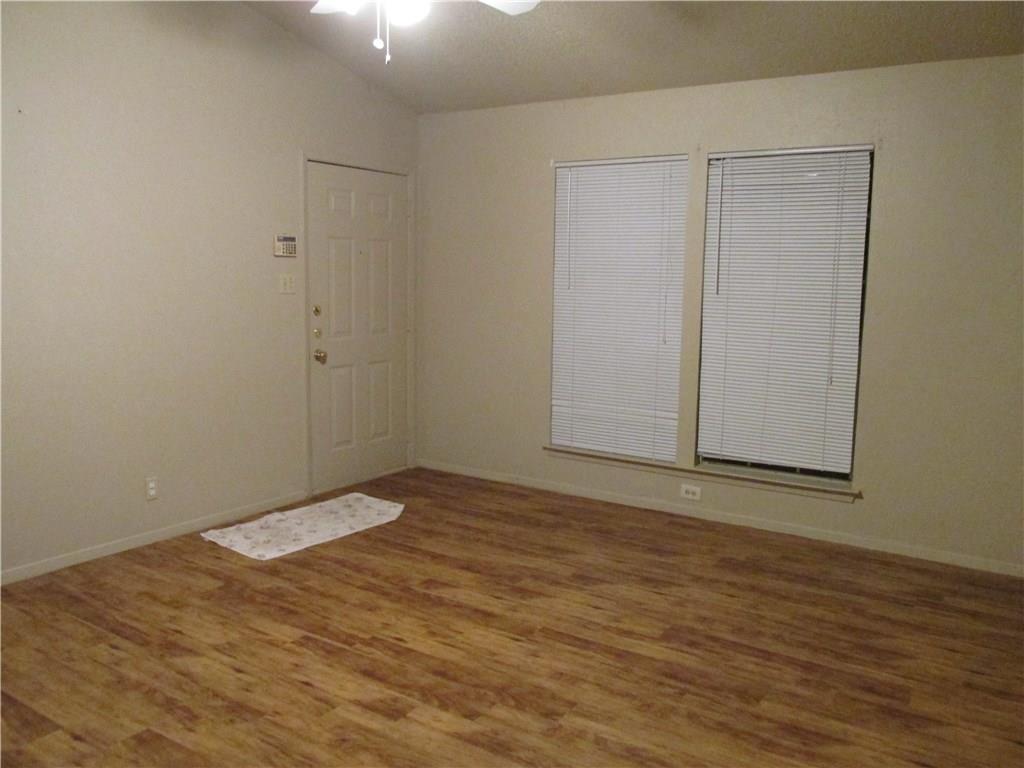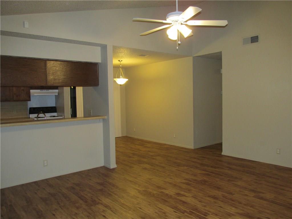 3 bedroom duplex with vinyl planking, fenced back yard and 1 car garage. Owner provides refrigerator, range and dishwasher. Small pets okay.
