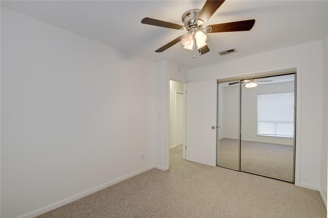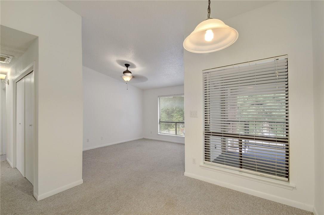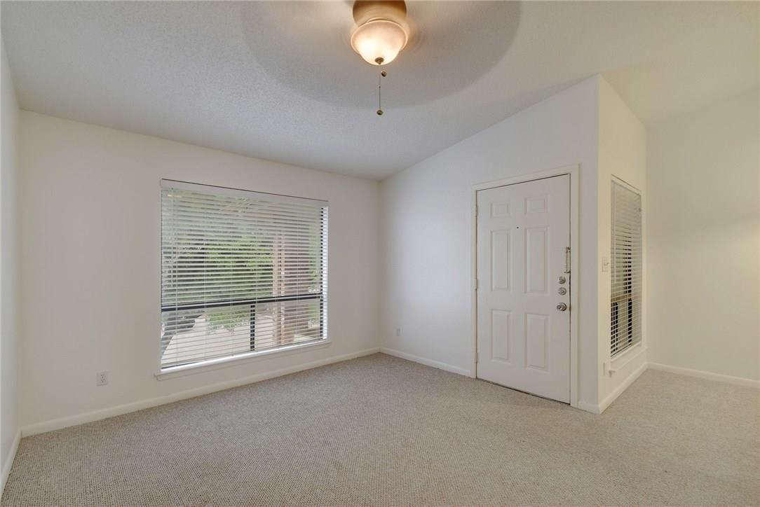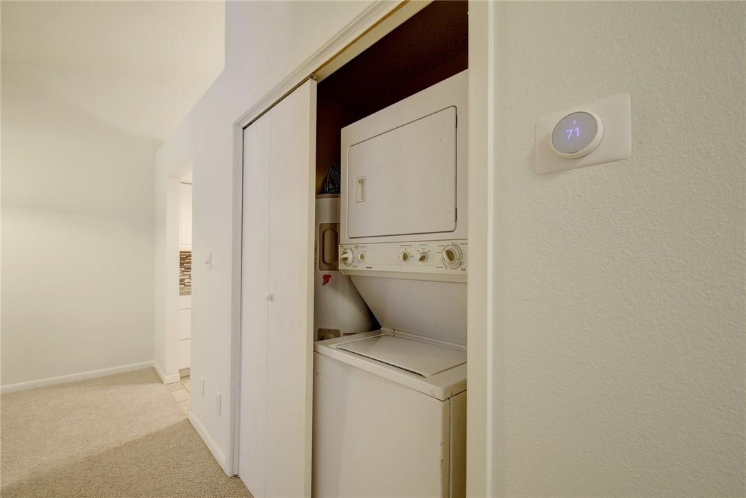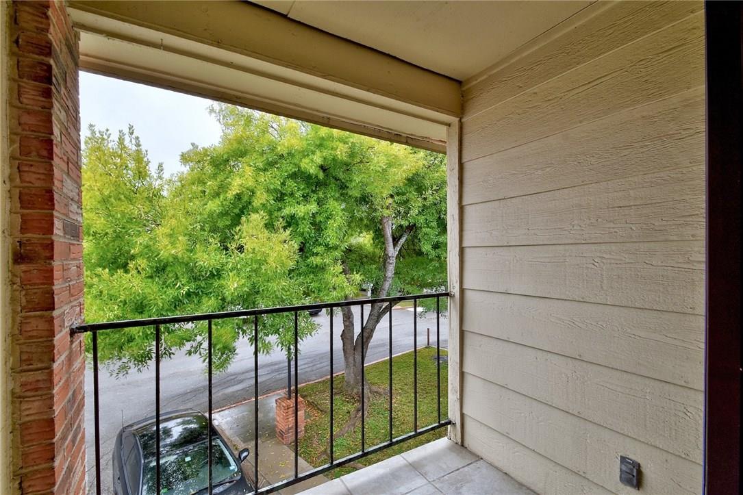 Spacious TWO bedroom TWO bath in gated community in prime location! Bright & airy living area with vaulted ceiling and large picture window providing lots of natural sunlight. Dedicated dining area and updated kitchen with granite counters and tile flooring. Carpet replaced throughout unit with laminate, NO CARPET!! Updated bathroom with new vanity and tile. Tons of storage throughout! Large primary with balcony & MORE storage! Gated community, easy access to downtown and IH-35. Washer & Dryer INCLUDED! OWNER pays for Water! Cant beat this price this close to downtown!