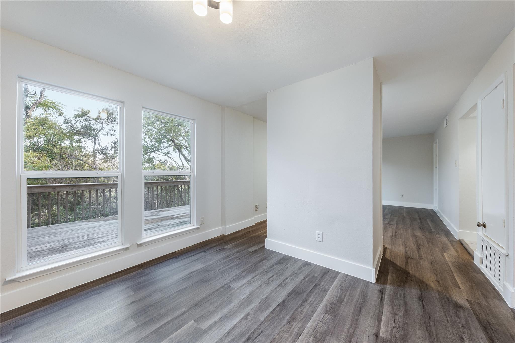Freshly remodeled with new flooring, paint, countertops and appliances. Features a fabulous oversized deck overlooking the greenbelt - this property does not have a fenced yard for pets. Just 5 miles from downtown! verification of 3x's income required.