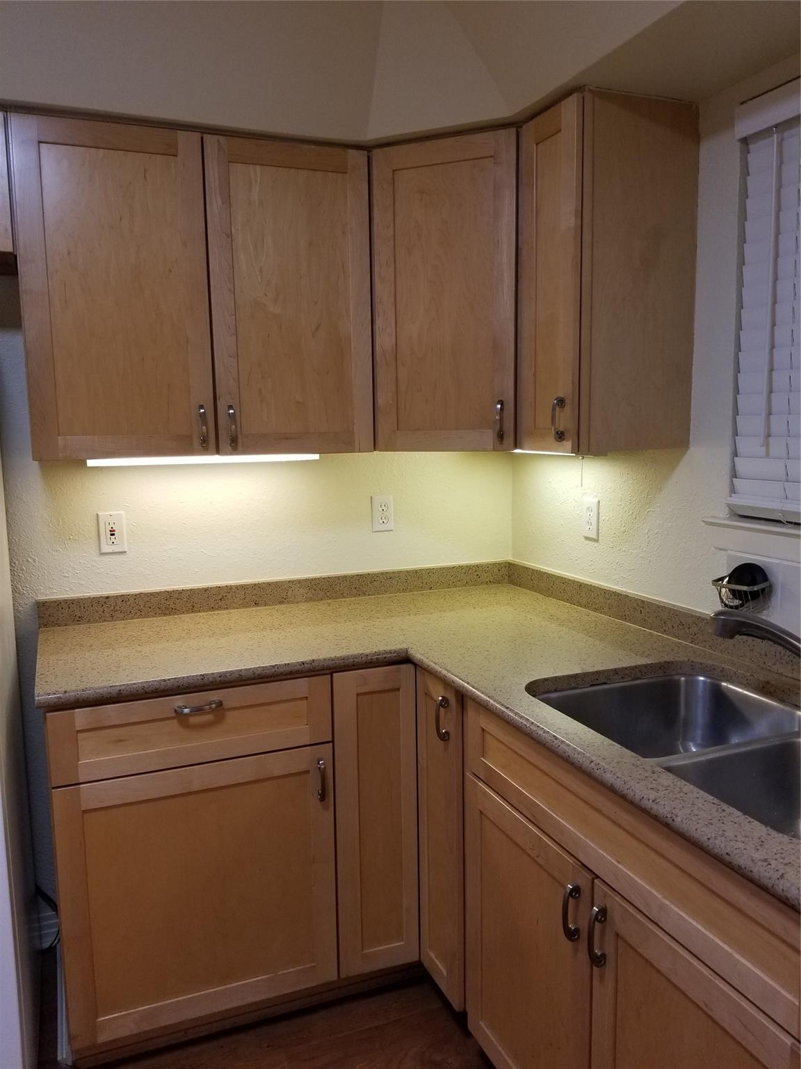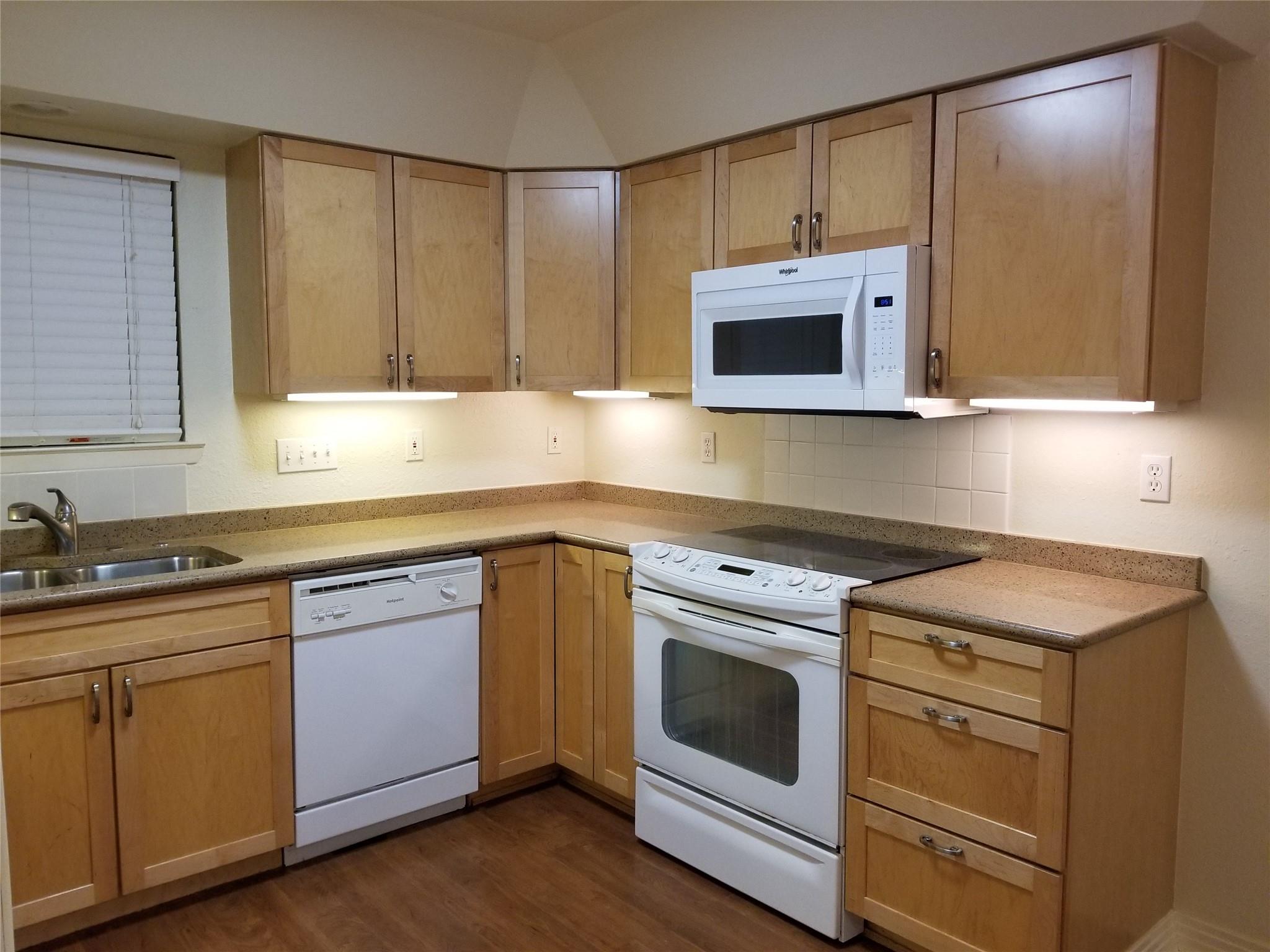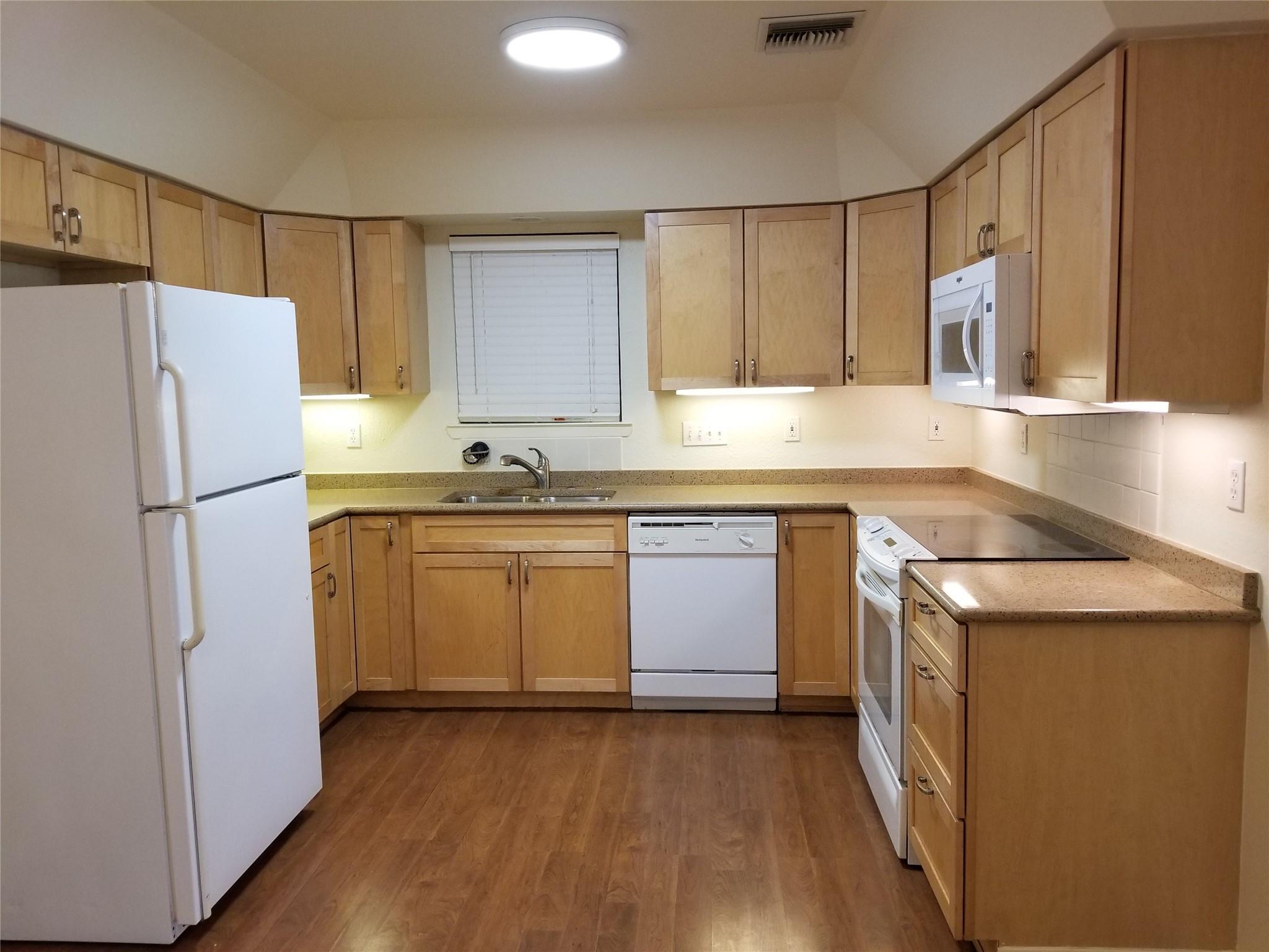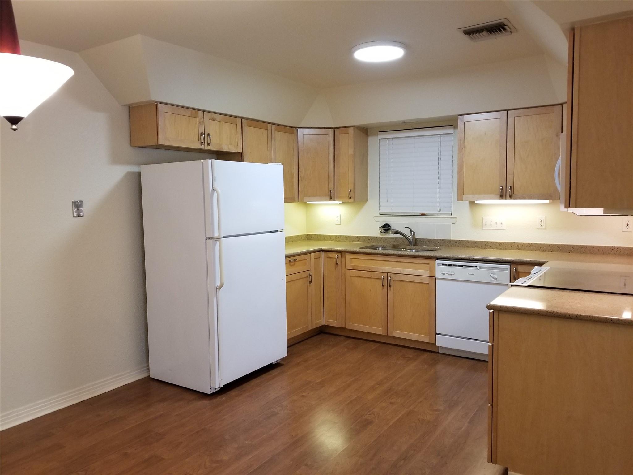 Granite countertops, open kitchen. Hardwood floors.