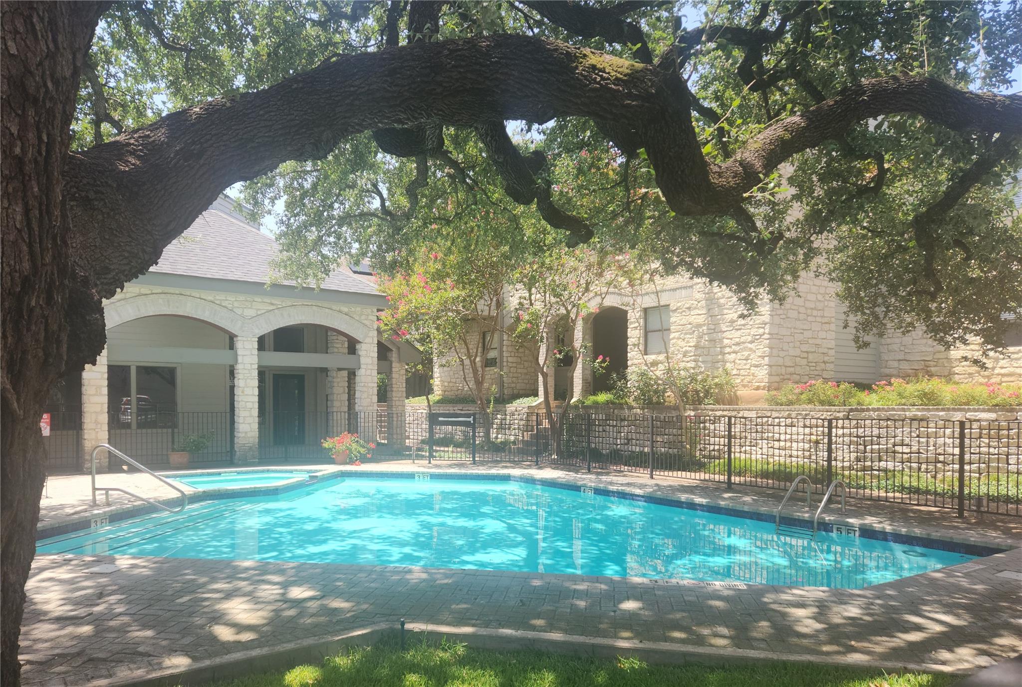 Great location. Attractive affordability near the Arboretum, Domain & Lake Austin with easy access to Downtown. The 1st floor condo features a spacious bedroom with more than enough room for a king size bed, a cozy fireplace, even a bonus space/office & plenty of kitchen counter/cabinet space. Also enjoy a sizable back patio with a privacy fence & an assigned covered carport. Escape the heat & walk out your front door to cool off in the pool. Proximity with privacy.