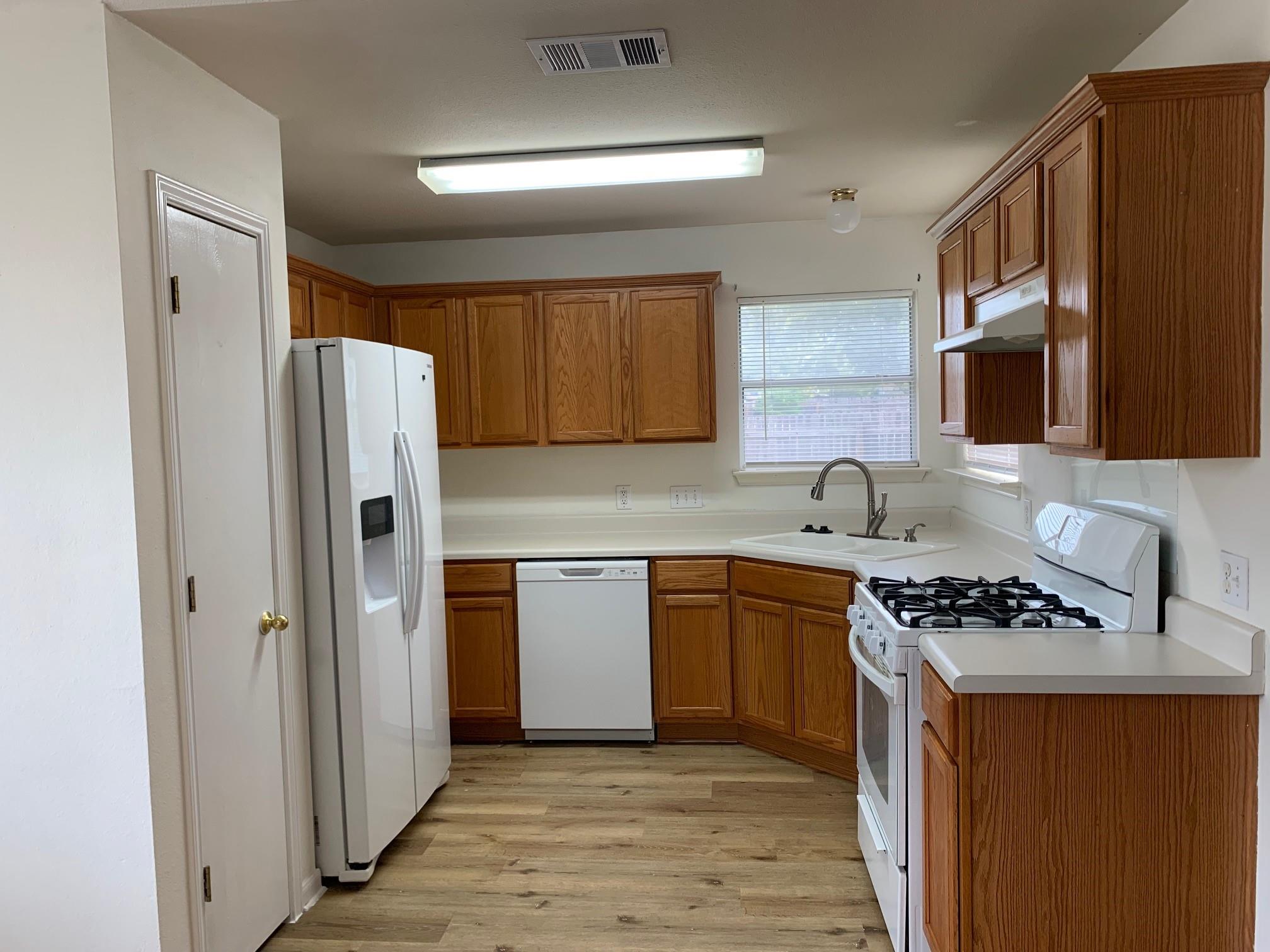 GREAT 3 BEDROOM, 2 BATH, 3 CAR GARAGE ON A CORNER LOT AND A CUL-DE-SAC STREET. HOUSE HAS NEW FLOORING,PAINT AND BACK PRIVACY FENCE AND IT IS READY FOR YOU TO MOVE RIGHT IN! WASHER, DRYER, FRIDGE, GAS GRILL, CHIMNEA AND FLAT SCREEN TV CAN BE REMOVED IF TENANT DOESNT WANT/NEED THEM. PICTURES OF PRIMARY BEDROOM AND BATH COMING.