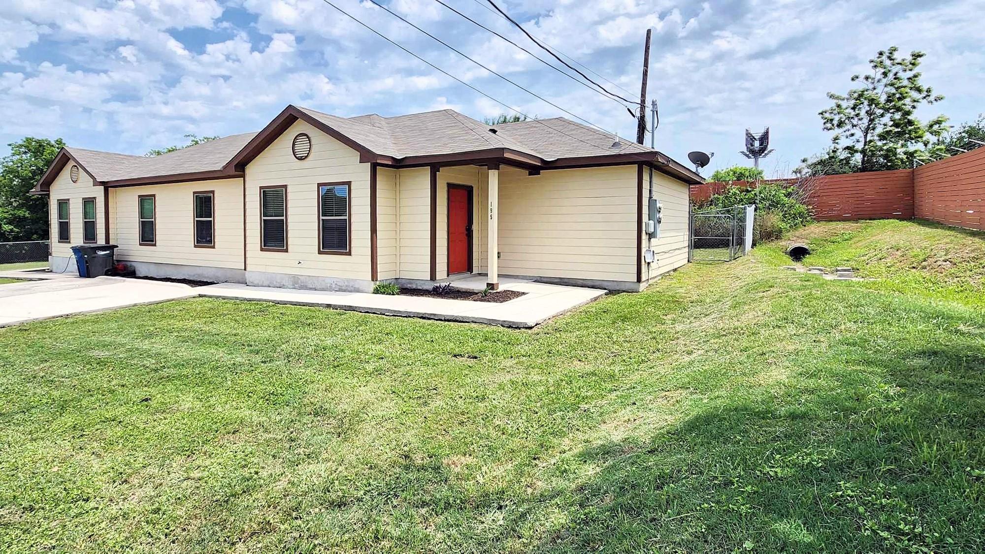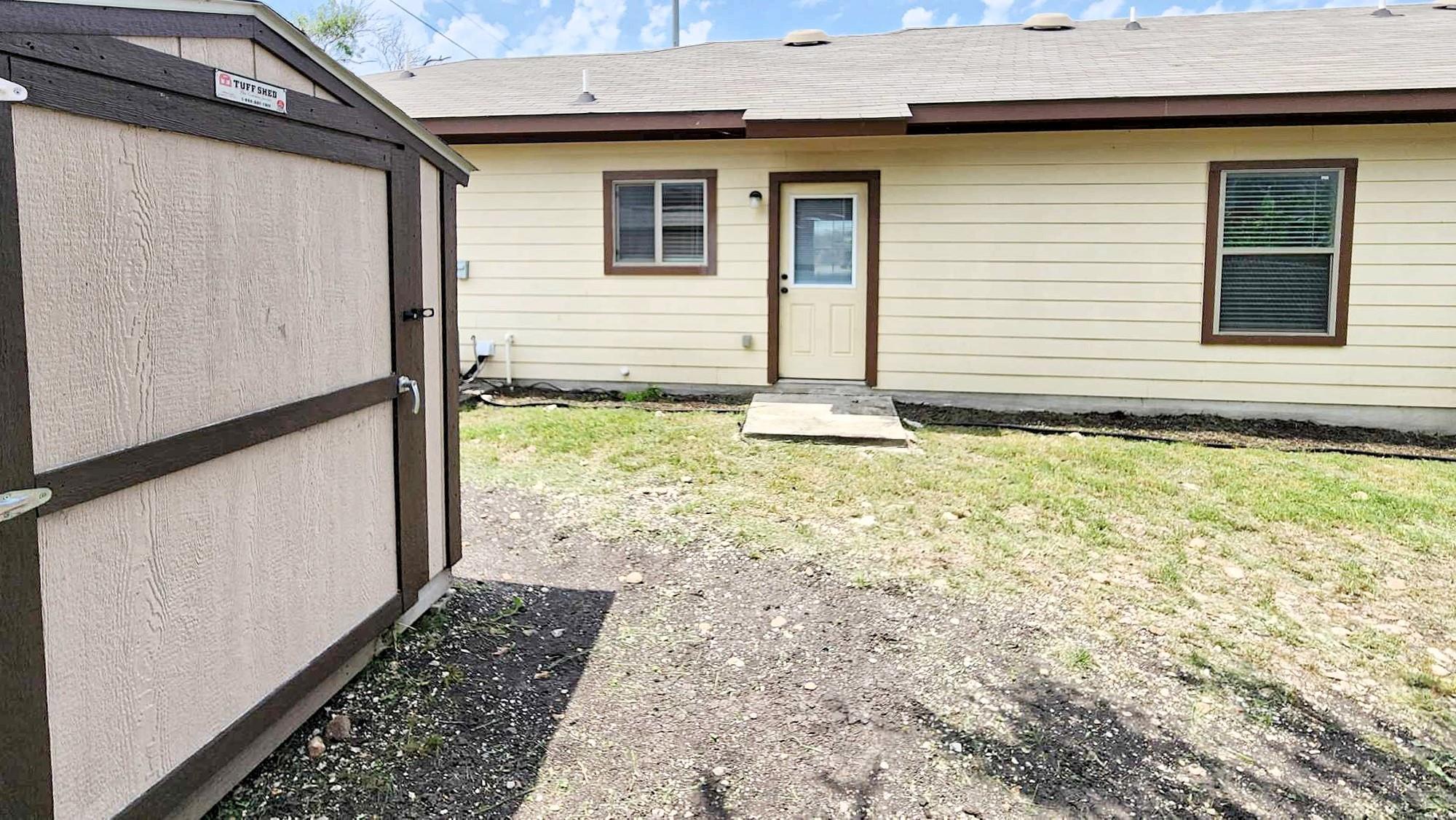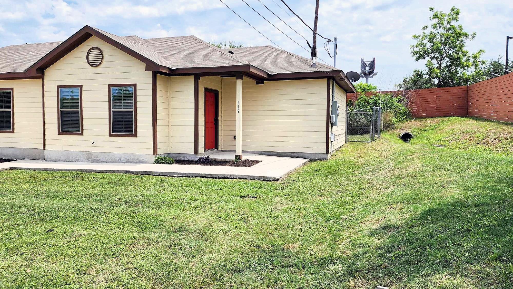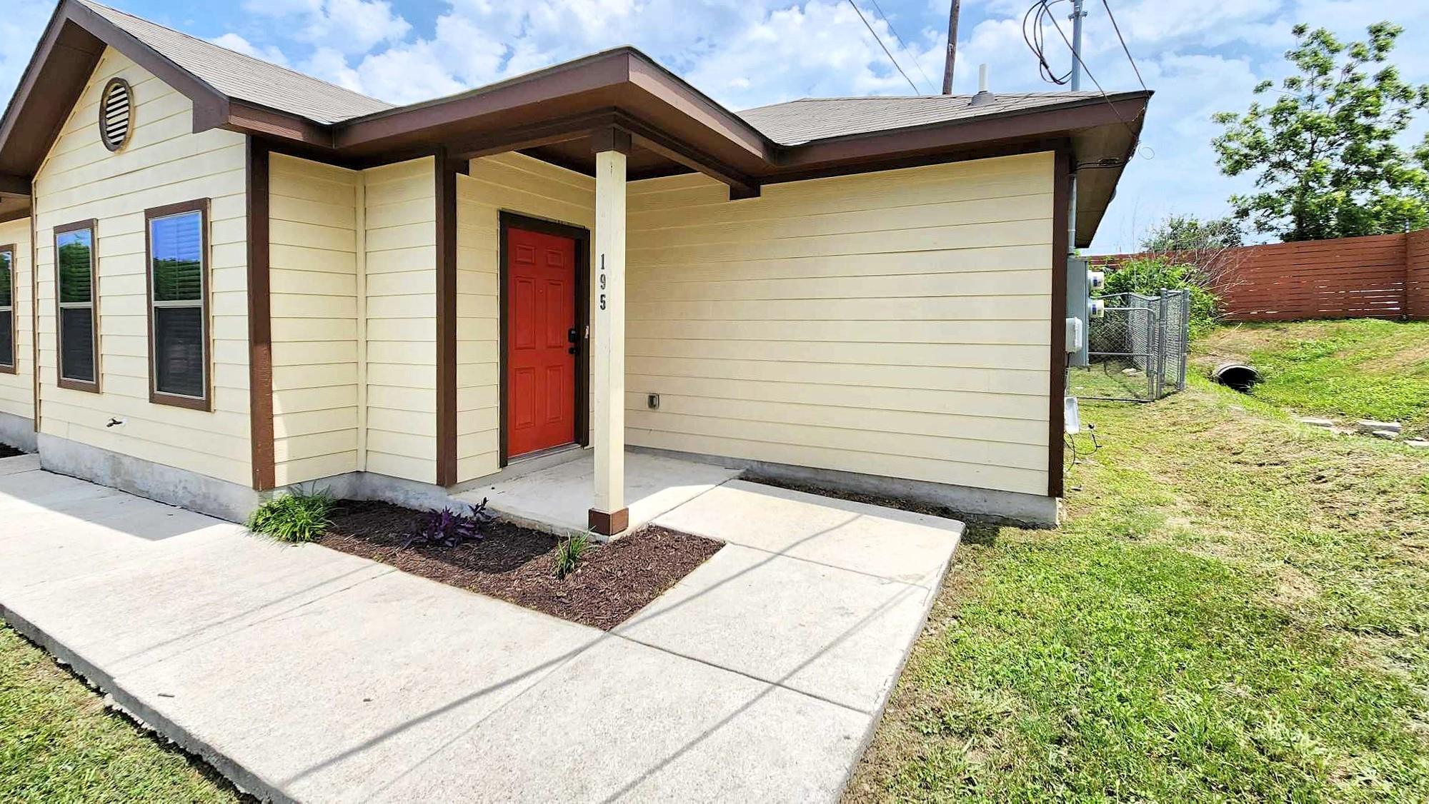 This charming 3 bedroom, 2 bathroom duplex features a bright red door with loads of character! This home has an open floor plan with stained concrete flooring throughout (NO CARPET!!) and stylish wood blinds. The kitchen features recently updated shaker cabinets and stainless steel appliances. The primary suite has a walk-in closet, ceiling fan, private bathroom with a tall shower and built-in shelving. This home also has a split bedroom concept so the guest bedrooms are separate from the primary suite and most are equipped with ceiling fans as well! Step outside to a spacious backyard with fencing and a storage shed. The home is a stone's throw away from the brand new library and conveniently located near IH 35, making for an easy commute to both San Antonio and Austin. Don’t miss this opportunity to live and work in New Braunfels!