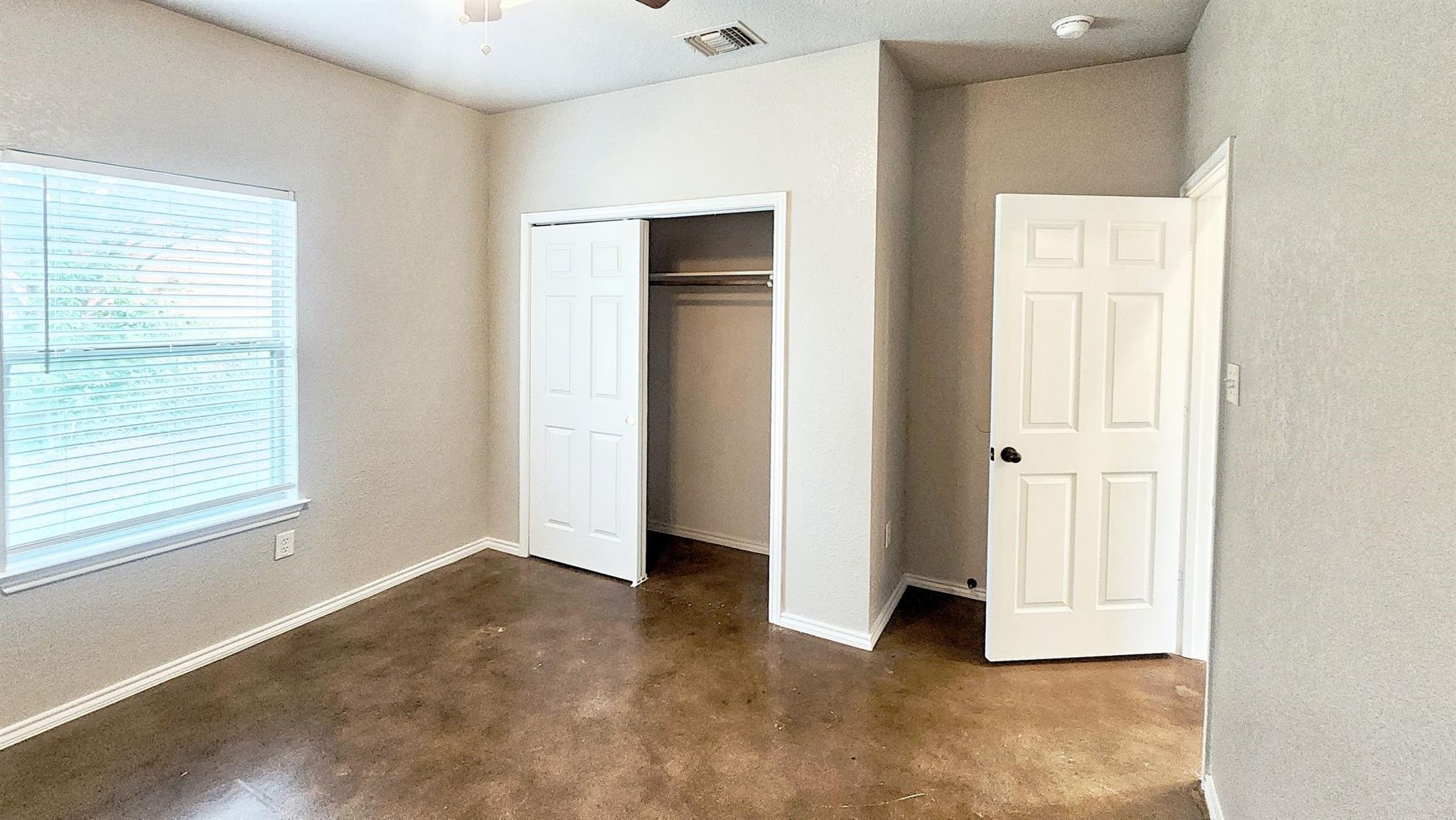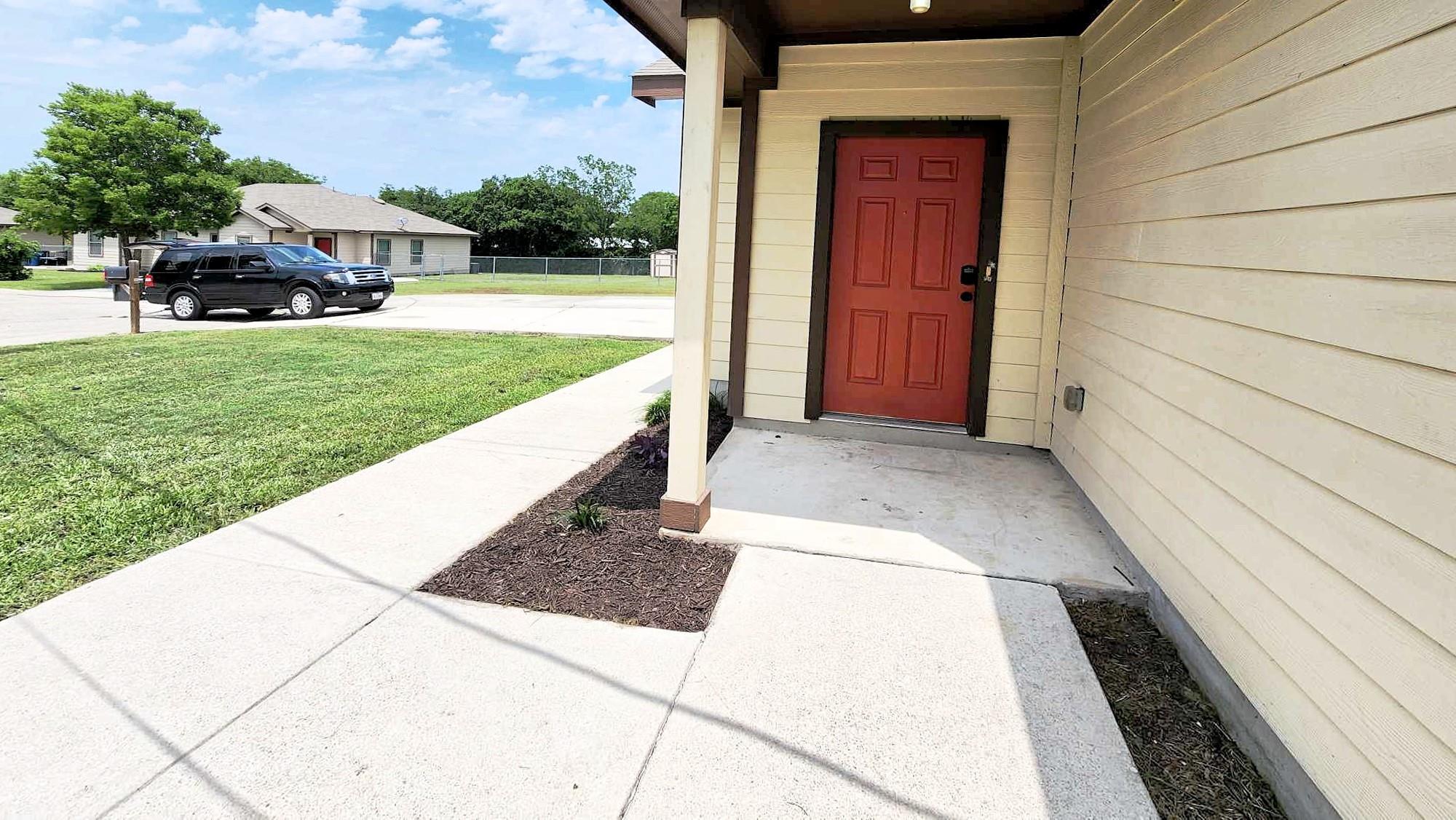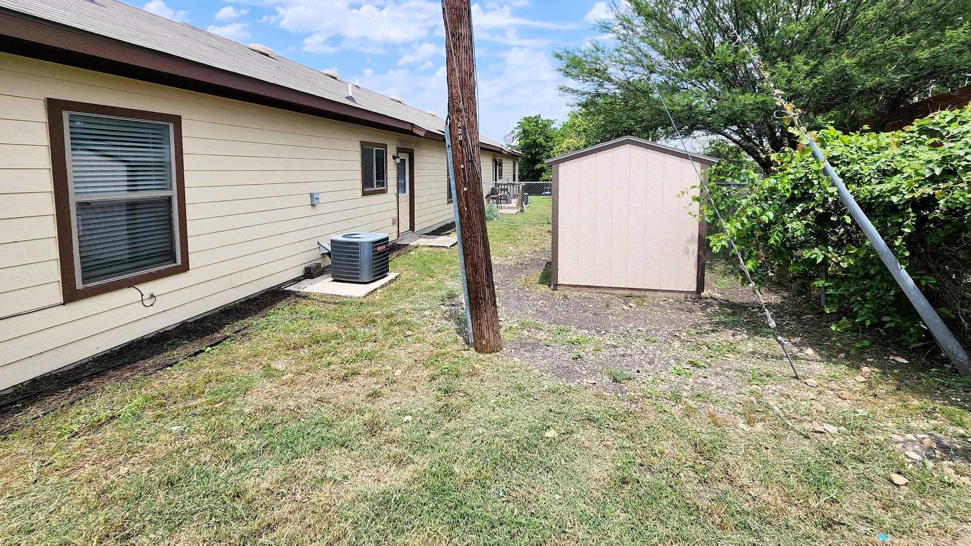 This charming 3 bedroom, 2 bathroom duplex features a bright red door with loads of character! This home has an open floor plan with stained concrete flooring throughout (NO CARPET!!) and stylish wood blinds. The kitchen features recently updated shaker cabinets and stainless steel appliances. The primary suite has a walk-in closet, ceiling fan, private bathroom with a tall shower and built-in shelving. This home also has a split bedroom concept so the guest bedrooms are separate from the primary suite and most are equipped with ceiling fans as well! Step outside to a spacious backyard with fencing and a storage shed. The home is a stone's throw away from the brand new library and conveniently located near IH 35, making for an easy commute to both San Antonio and Austin. Don’t miss this opportunity to live and work in New Braunfels!