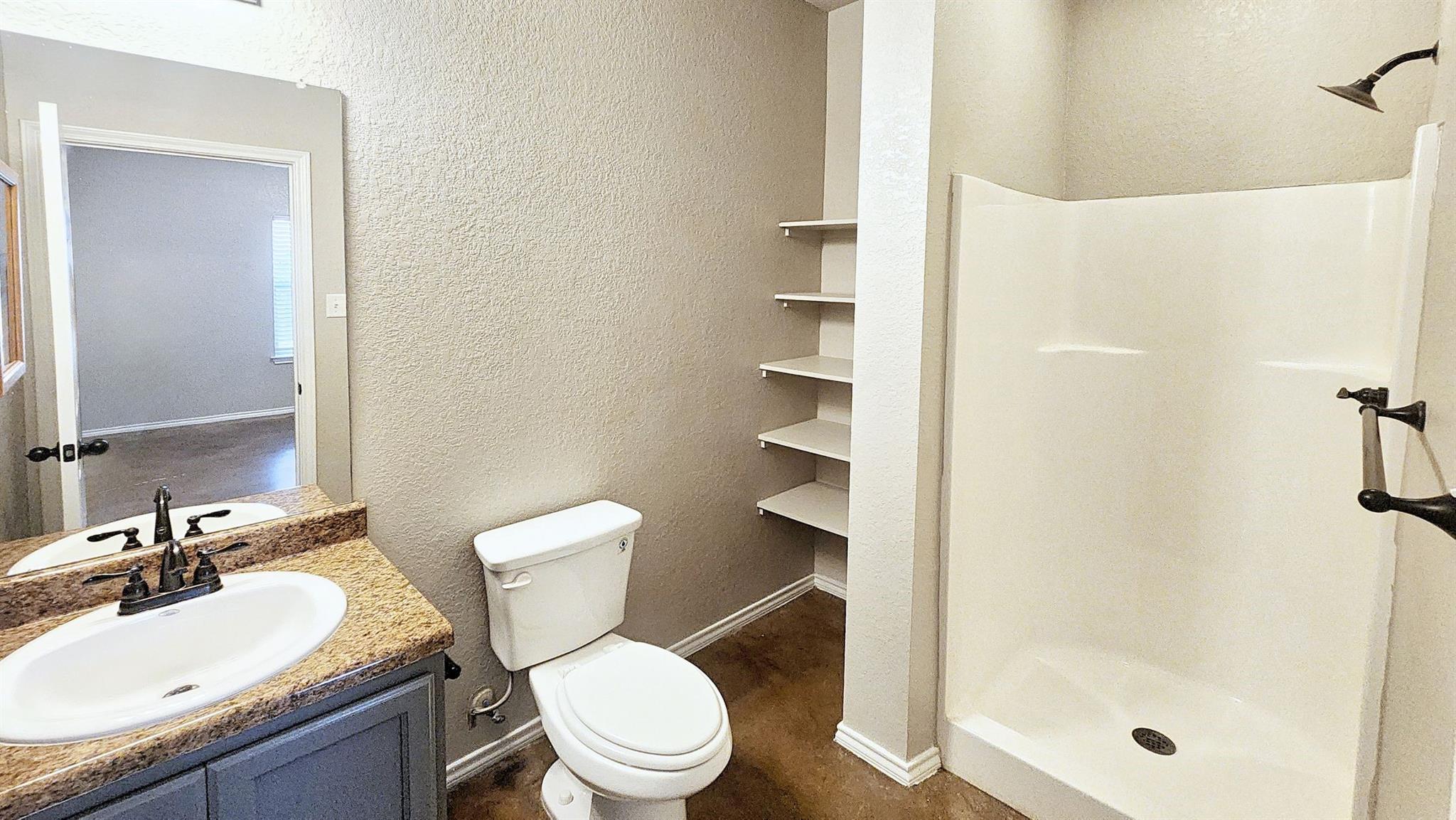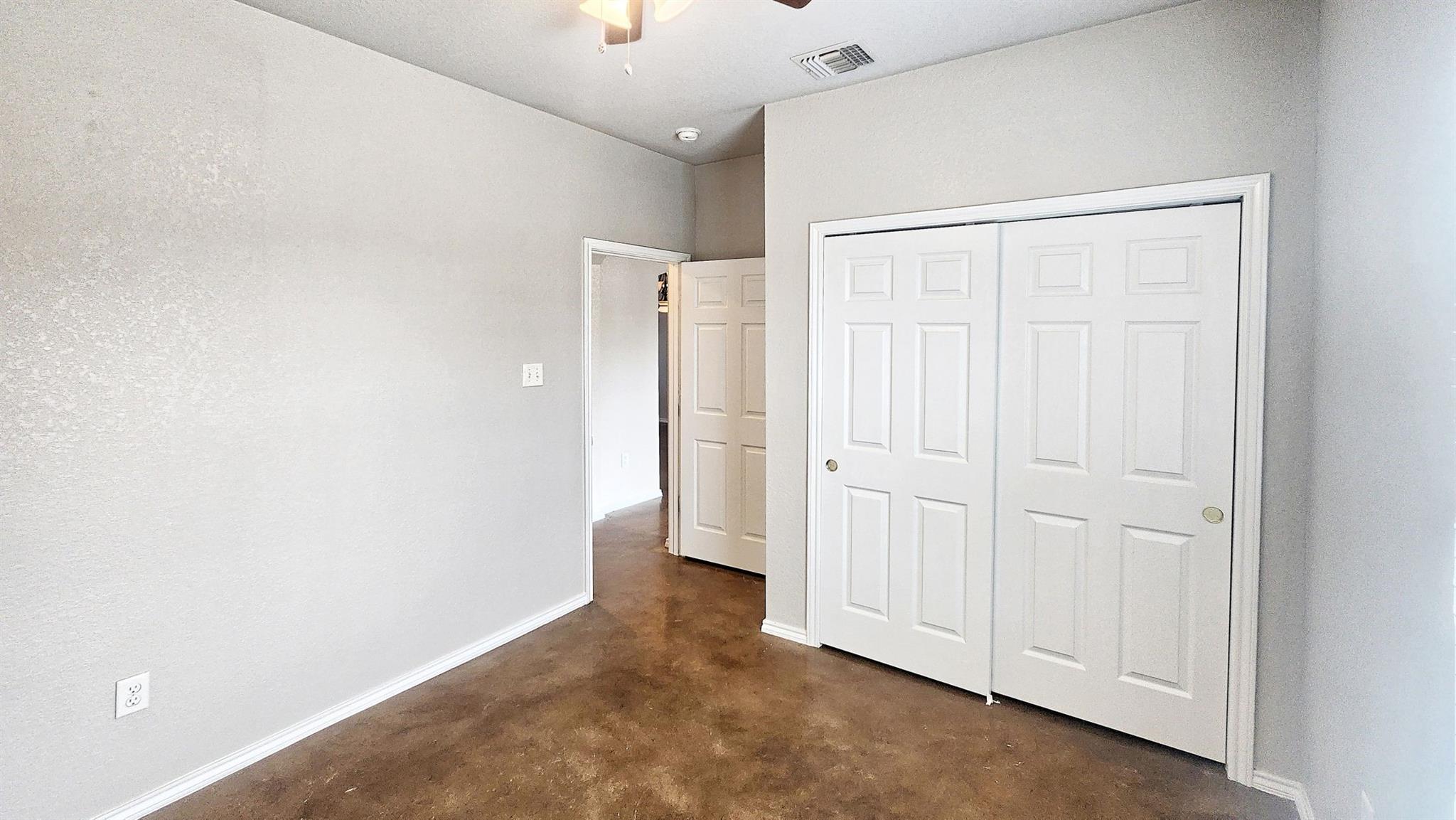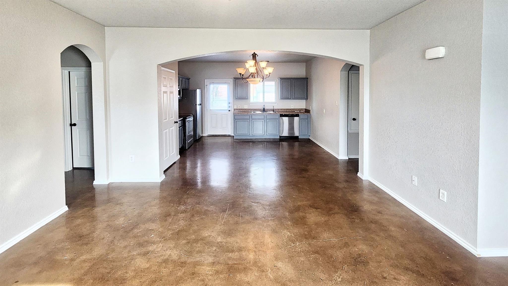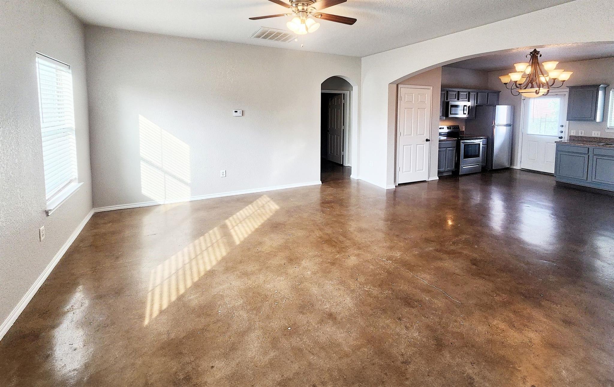 This charming 3 bedroom, 2 bathroom duplex features a bright red door with loads of character! This home has an open floor plan with stained concrete flooring throughout (NO CARPET!!) and stylish wood blinds. The kitchen features recently updated shaker cabinets and stainless steel appliances. The primary suite has a walk-in closet, ceiling fan, private bathroom with a tall shower and built-in shelving. This home also has a split bedroom concept so the guest bedrooms are separate from the primary suite and most are equipped with ceiling fans as well! Step outside to a spacious backyard with fencing and a storage shed. The home is a stone's throw away from the brand new library and conveniently located near IH 35, making for an easy commute to both San Antonio and Austin. Don’t miss this opportunity to live and work in New Braunfels!