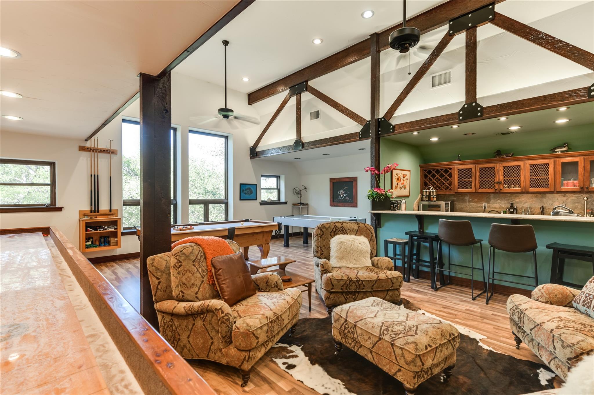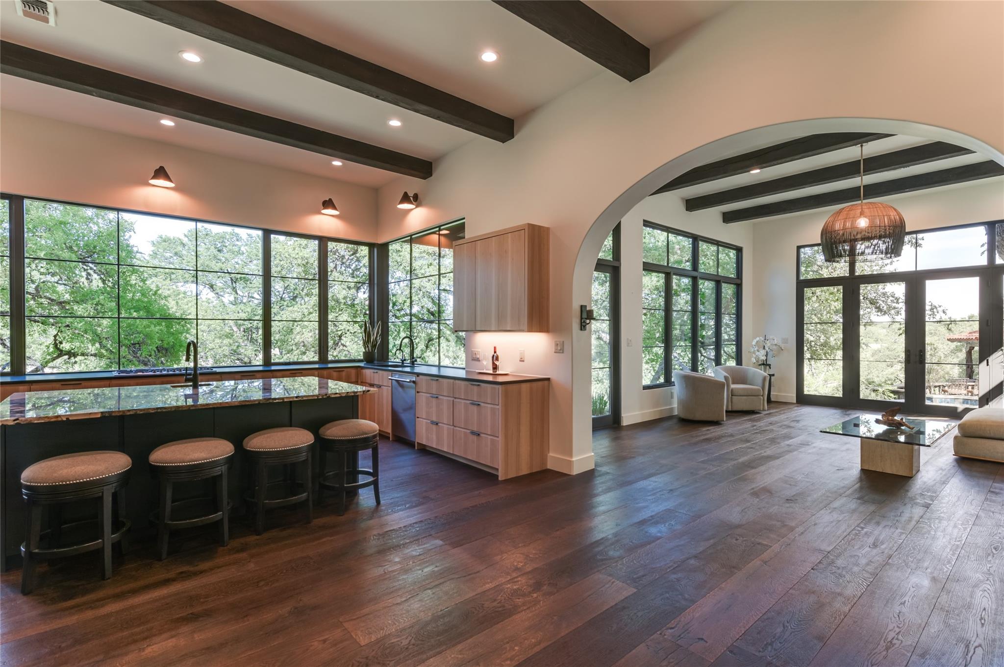 | Interior Features | Breakfast Bar, Beamed Ceilings, Quartz Counters, Double Vanity, Dry Bar, Eat-in Kitchen, Entrance Foyer, French Doors, Kitchen Island, Multiple Living Areas, No Interior Steps, Open Floorplan, Pantry, Soaking Tub, Walk-In Closet(s), Wet Bar | |