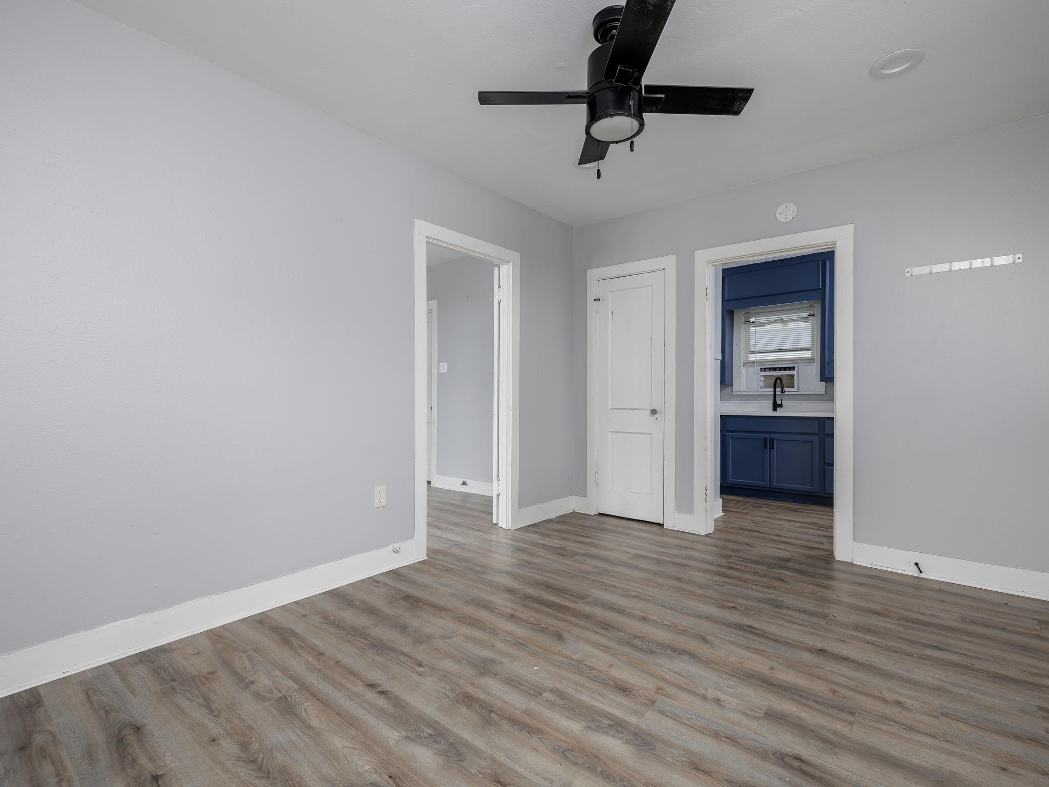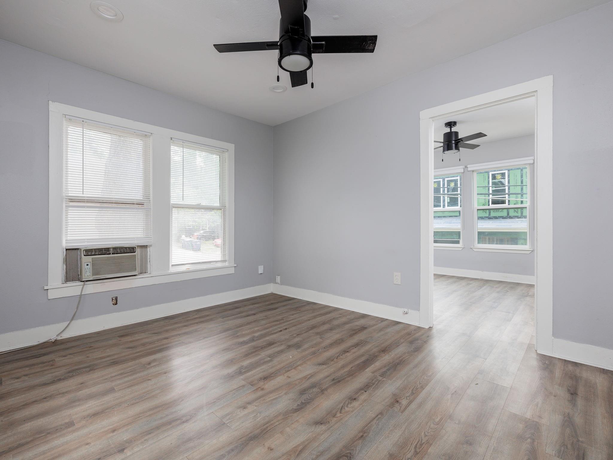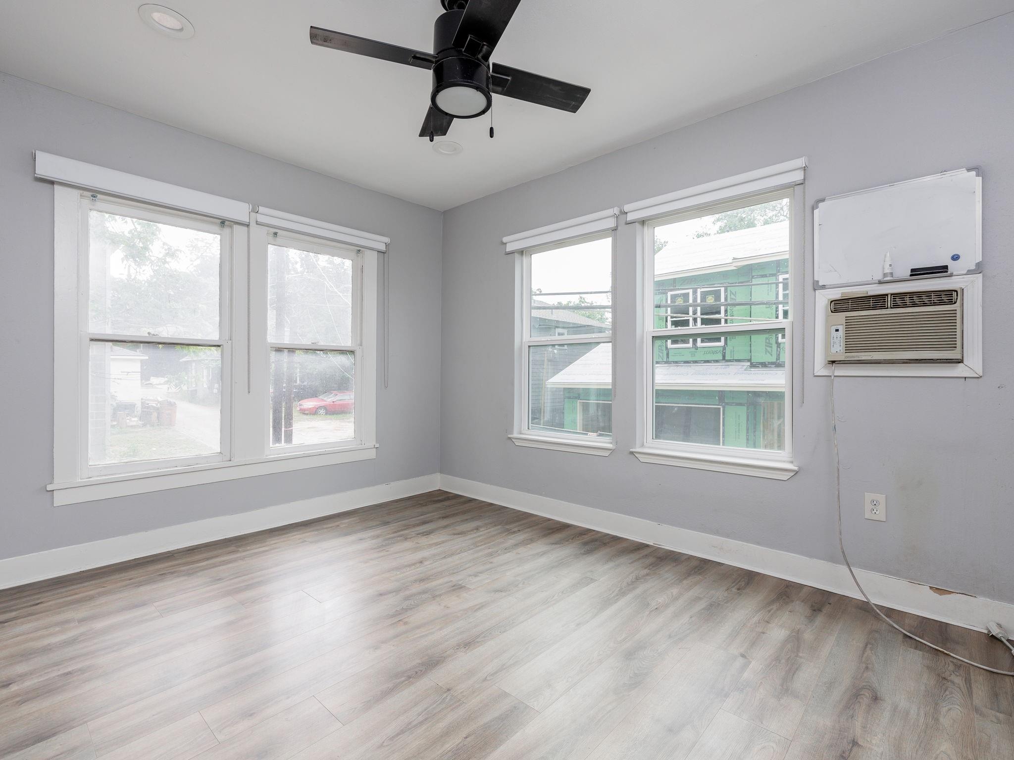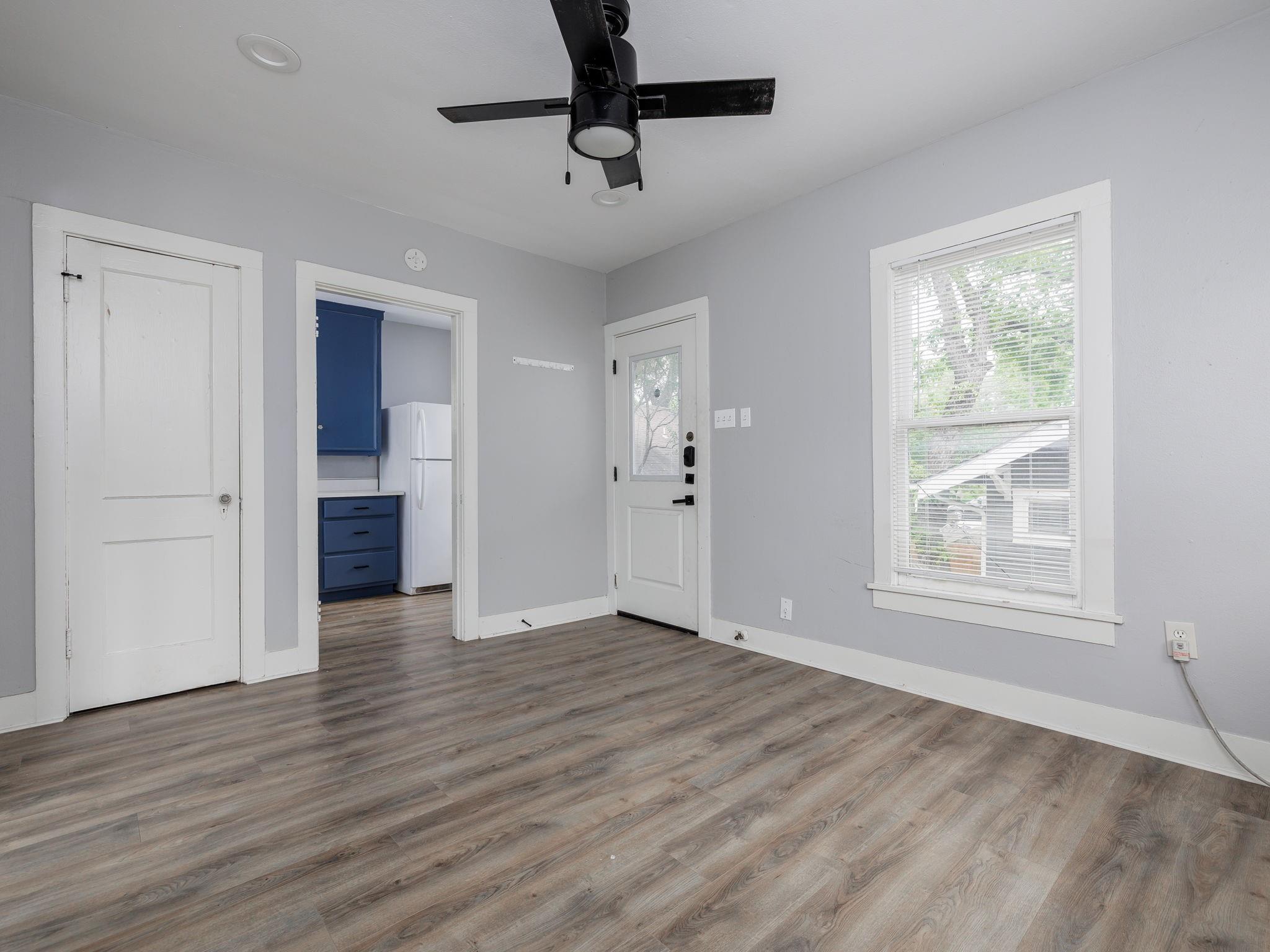 Wonderfully renovated one-bedroom garage apartment in the West Campus tree tops: new vinyl planking, updated kitchen and bathroom. Black-out shades. Full-sized appliances. Quiet and private. Can lights throughout; ceiling fans in living room and bedroom. Air conditioners in living room, bedroom, and kitchen. Landlord pays for water and wastewater; tenant pays for all other utilities. Shared fenced yard with front house. Rental terms are negotiable. Possible additional storage on-site.