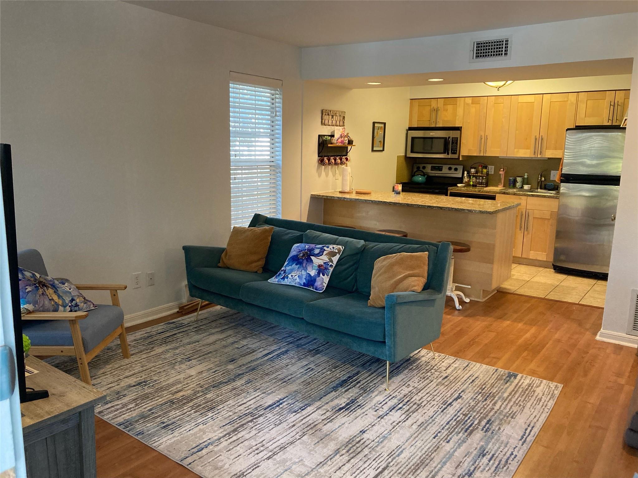 $150 bonus if rent before 5/1. Corner condo. Awesome central location is minutes from UT, downtown & tons of great restaurants and shopping. Cap Metro bus stop on site! Wonderful community with all the amenities including community garden! HOA dues paid by owner and cover internet, cable, water, everything but electric. Refrigerator and washer/dryer included. Brand new carpet in bedroom. Rental length negotiable.