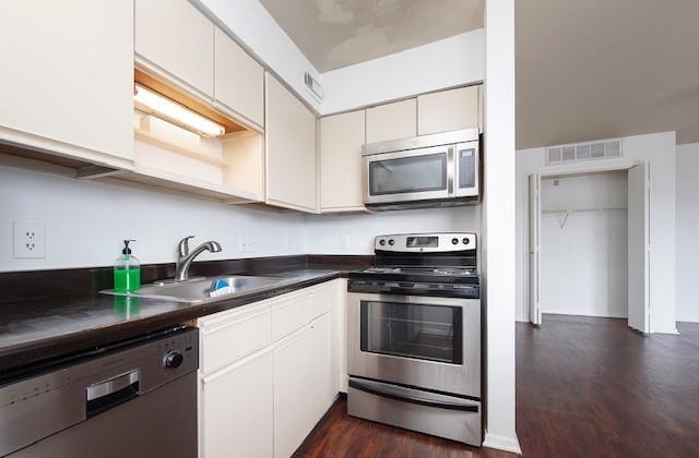 Great location close to dining, shopping and Lady Bird Lake. Just over 4 miles to UT. Second floor condo with open floor plan. Kitchen features stainless steel appliances and breakfast bar. The unit includes a washer/dryer. No carpet, vinyl plank.