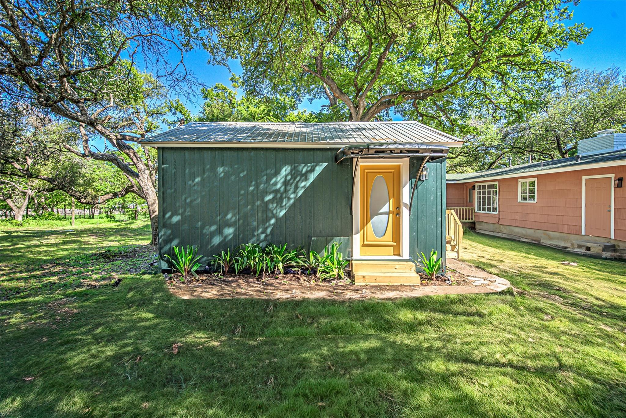 Welcome to 1918 Berkeley Ave - Located in the desirable 78745 zip code, this home is situated in a mature and charming tree-lined neighborhood. Tenants will enjoy a quick 15-minute commute to Downtown or the airport, plus easy access to grocery, restaurants, and other conveniences. Enjoy the community feel of a shared lot, plus the benefits of privacy and great value for a detached home. One acre lot is shared amongst 5 homes. Unit C is the smallest, dark home behind the main pink house. The quaint, efficiency style home allows for minimalist living on a beautiful, large lot. The expansive shared yard allows for plenty of space for outdoor activities. Welcome home! Additional notes: Flat fee for shared services. Tenant to do all due diligence on square footage and home features. Some images are edited.