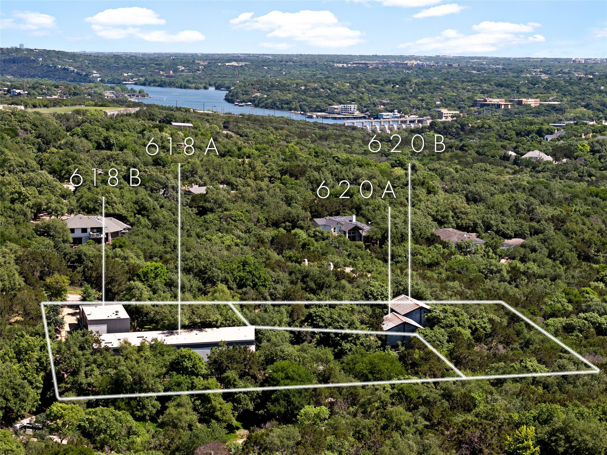 Welcome to the Estate of Rocky Ledge. This exceptional property offers a modern masterpiece in the heart of West Lake Hills. The estate includes multiple homes on a 2+/- acre compound. The main house, located at 618A consists of 4 bedrooms, 4.5 bathrooms, 2 living rooms, a flex space/dedicated office and a 3-car garage. It was designed by the award-winning Nelsen Partners, and this home is a showcase of modern luxury and quality construction. The expansive walls are perfect for displaying large art pieces, while the floor-to-ceiling windows offer breathtaking views of the Downtown Austin skyline. As you enter the grounds through the main gate, you'll be greeted by lush landscaping and extraordinary architectural design. The main floor features an open concept living space, ideal for entertaining, and a modern kitchen that opens up to a spacious deck with tree-top views. Entertain on the large, multi-level outdoor decks, frameless glass paneled railings. Wander the limestone pathways to enjoy the gardens and seasonal stream. 618B is an attached guest house that features a separate driveway and private gated entrance with a 1-car garage. The home has 2 bedrooms, 1 bathroom with kitchen, living and dining - a truly exquisite guest quarters. 618 is on a fully fenced 1+ acre lot, and this home provides impeccable privacy being located at the end of the road. Also included is 620 Rocky Ledge Road, which boasts two additional homes. 620A (currently leased) consists of a detached, 3 bedroom, 3 bathroom home with 3 living spaces and a 2-car garage in 2,858 square feet. 620B is a detached, 2-story, 2 bedroom, 1.5 bathroom guest house in 1,350 square feet. Both units have rectangular footprints and large decks. Very convenient location with close proximity to coffee shops and restaurants at Bee Caves Road and only minutes to Downtown Austin. Don't miss the chance to own this remarkable property and create your own private oasis in West Lake Hills.