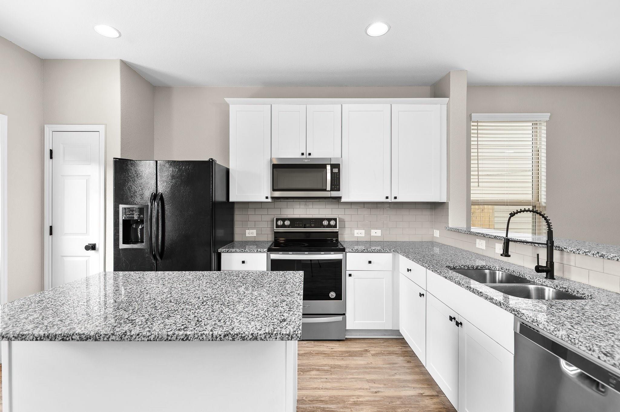 Vacant and Ready for Move-in! Easy access of IH35. Single Story Home with 3 bedrooms, 2 bathrooms, 2 car garage. Vinyl plank flooring in main living areas and recently installed carpet in the bedrooms. Private Yard with patio. Neighborhood pool available. Open floorplan, granite countertops, built-in microwave and refrigerator provided.