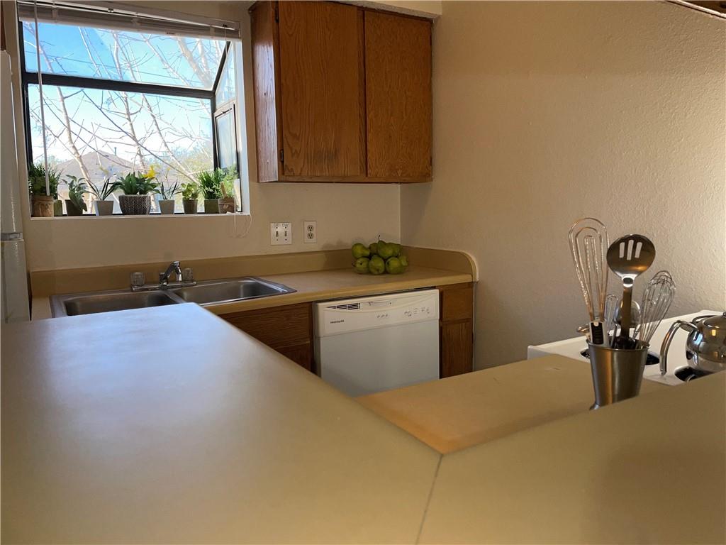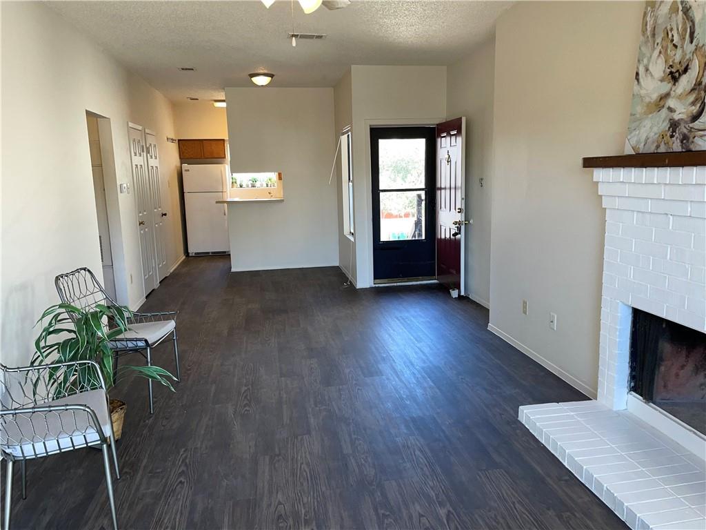 2415 Slaughter Lane Unit D 78748 - VACANT and READY! 2 bedroom 2 bath divided plan with two large bedrooms...each with a walk-in closet. Entire apartment has high ceilings. Wonderful open kitchen/dining/living with fireplace looks out to covered porch/balcony with storage closet. Laundry closet with full size connections is indoors. vinyl wood plank floors throughout. This is a one story floorplan located on the second floor. Located in Tangle wood Forest Limited District with pool and tennis available for small fee. Nice kitchen with garden window and breakfast bar. Look at photos to see floorplan. Highly regarded Kocurek Elementary is in the subdivision...also tracks to nearby Bailey Middle School.