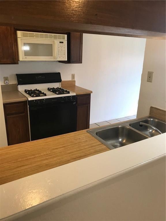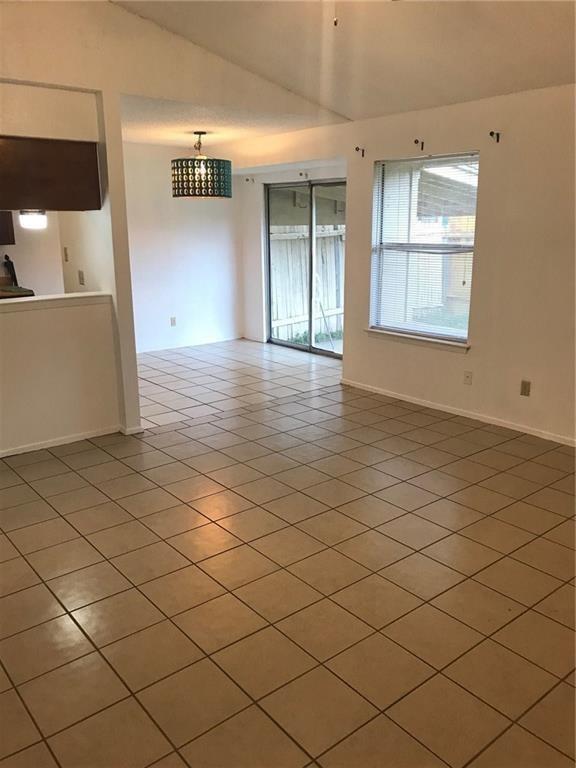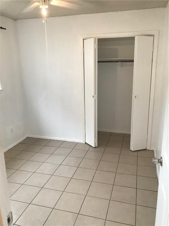 2 bedrooms and 2 baths. No garage. No carpet, all tile. Refrigerator, washer and dryer in unit and maintained. Background check, one month deposit and pet deposit required.