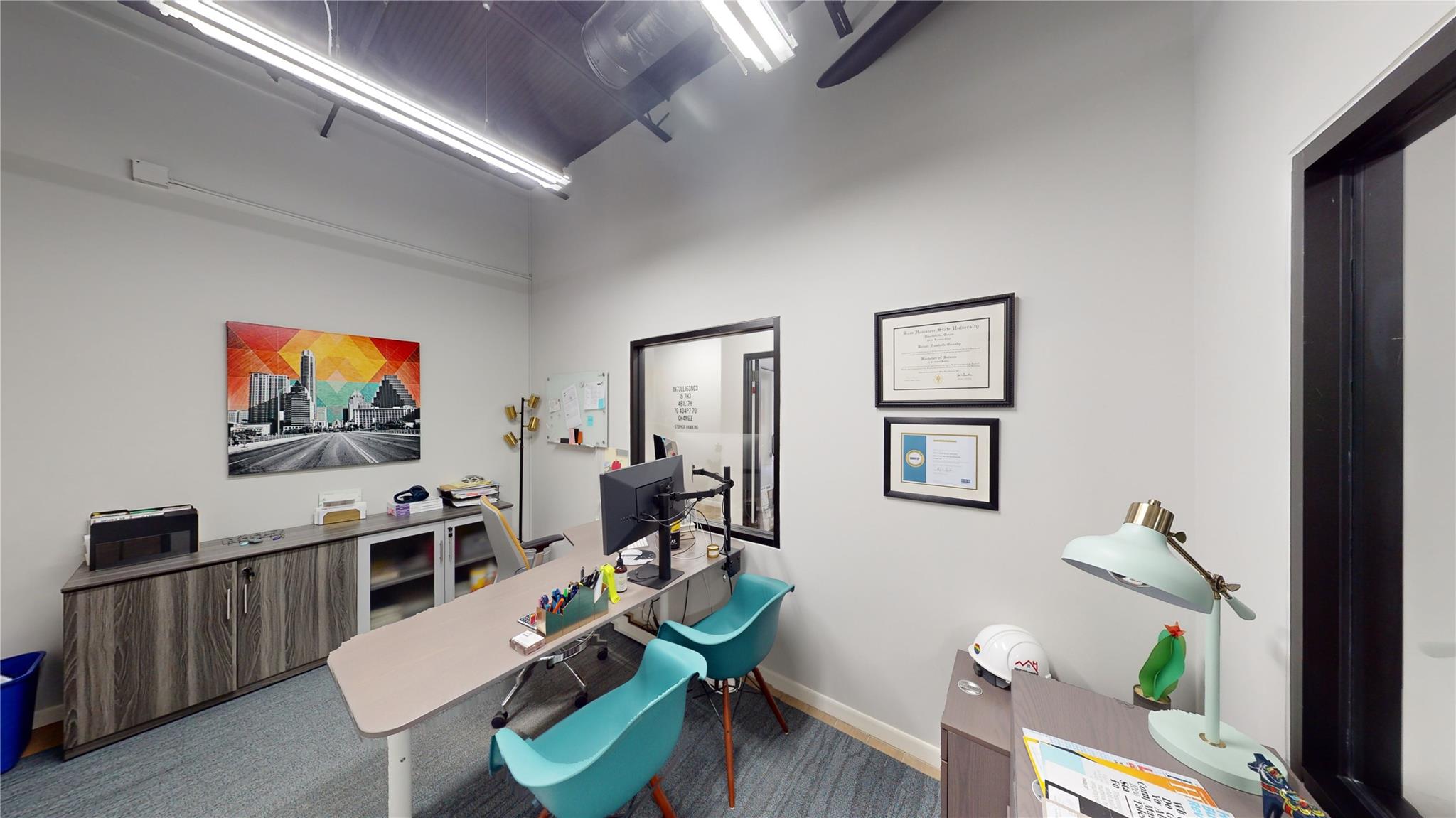 Office Condo For Lease. Updated Office suite has 9 private offices, a large combination Conference Room/Break Room, and a Printer/Work/Storage Room. Convenient to Mopac, 183, Arboretum, and Domain. 15-20 minutes to/from downtown. 20-25 minutes to the airport. Open parking.