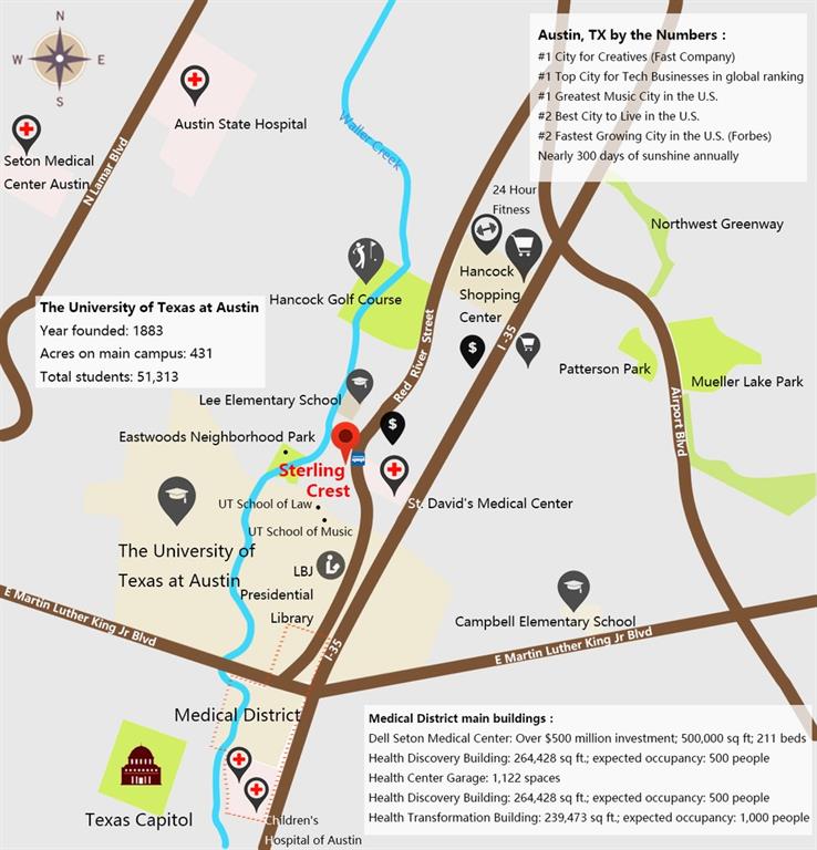 PRE-LEASING FOR AUGUST 2024! Completely remodeled studio condo in highly sought-after Sterling Crest. Electronic door lock, white quartz countertops, custom tile backsplash, large walk-in closet, high-end appliances (Jenn-Air) including Washer, Dryer, Refrigerator. Gated and very secure environment. Includes one reserved parking space and community pool. Only blocks away from UT Law, Engineering, Music, Business, & Medical School and across the street from St. David's Hospital. Tenant pays all utilities (Trash included). No pets.