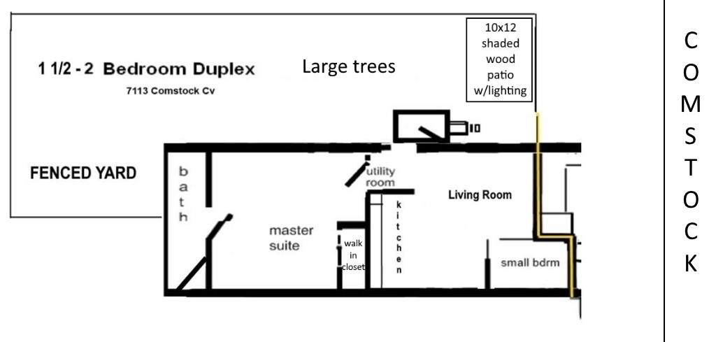 2nd "bedroom" only 7'x8' see sketch, no showings till mid sept after tenant vacates - VERY Pet friendly, credit scores should be over 620 & income over $40k yr, --- Quiet safe funky-nice culdeSac. Shaded private fenced yard w/new 10'x12' patio deck, $225 month additional for ALL utilities: water, sewer, trash, electric, internet/wifi, cable TV w/dvr, Netflix. front & rear & side yard care is $20 month --- separate ac & heaters keep rooms comfortable. Simple kitchen: Large side x side fridge, microwave if needed, hi-end countertop bake, convection/broiler/toaster oven & 2 large electric burners (stove not needed!). Washer & dryer available, Large master w/walk-in shower & closet. Large fenced yard. Lake-park nearby w/ inground pool... etc.. etc... etc. Boat ramp!