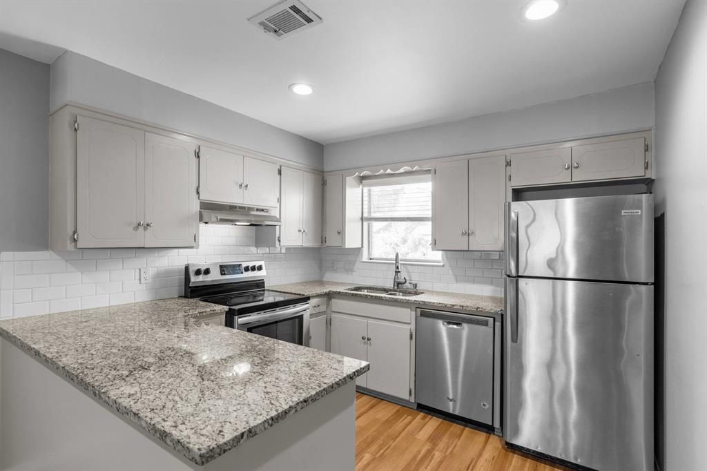 Great Location! Awesome, updated two bedroom, one bathroom duplex in established neighborhood with large trees, nice size fenced backyard and enclosed screened back porch. Kitchen is open to the living room with recent stainless steel appliances and granite countertop - Refrigerator included. Vinyl plank flooring throughout. No carpet. Conveniently located close to major roads (Hwy 183 and MoPac), restaurants, shopping and bus stop.