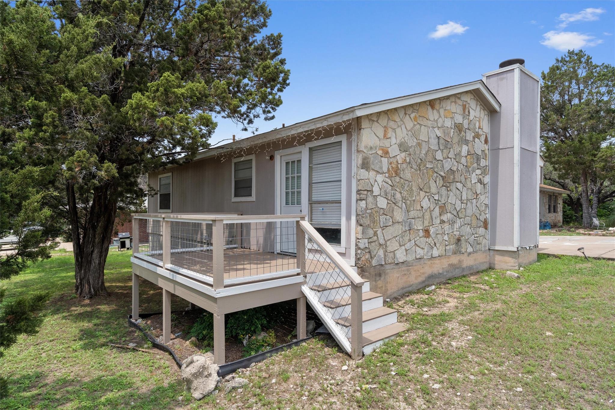 Welcome to 21526 Coyote Trail Unit A, a charming duplex nestled in the serene community of Lago Vista, Texas. This inviting 2-bedroom, 2-bathroom home offers a modern, carpet-free living experience with recent upgrades that enhance its appeal. Step inside to discover a spacious living room featuring a cozy fireplace, perfect for relaxing evenings. The kitchen comes complete with a refrigerator, ensuring you have all the essentials at your fingertips. W/D Hook Ups. The home's exterior is equally impressive, boasting a deck out back that provides an ideal space for outdoor entertaining or simply enjoying the tranquil surroundings. Don't miss the opportunity to make this beautifully updated duplex your new home. Tenants will be required to sign up for the new Resident Perks Program at $25/mo per household.