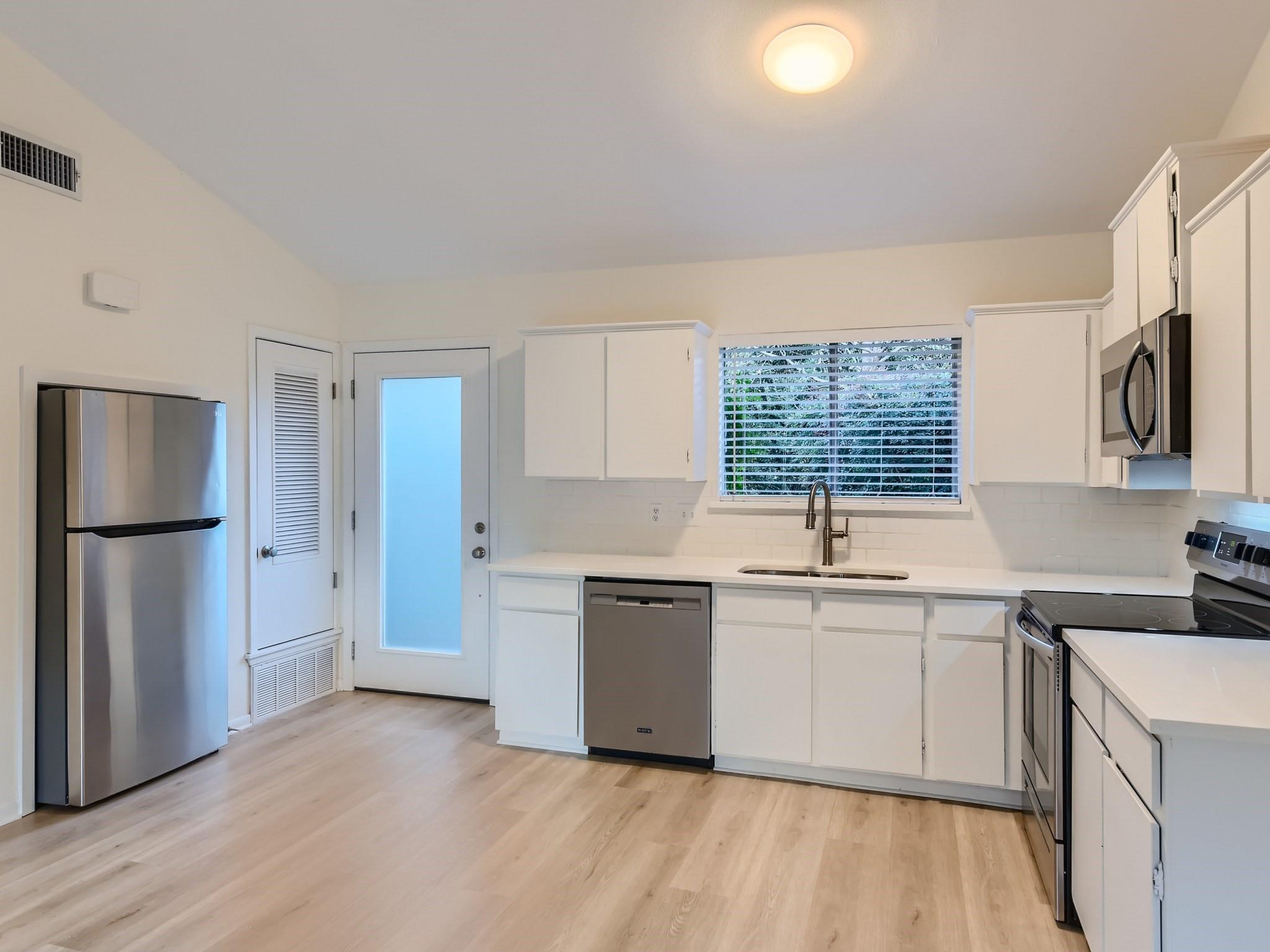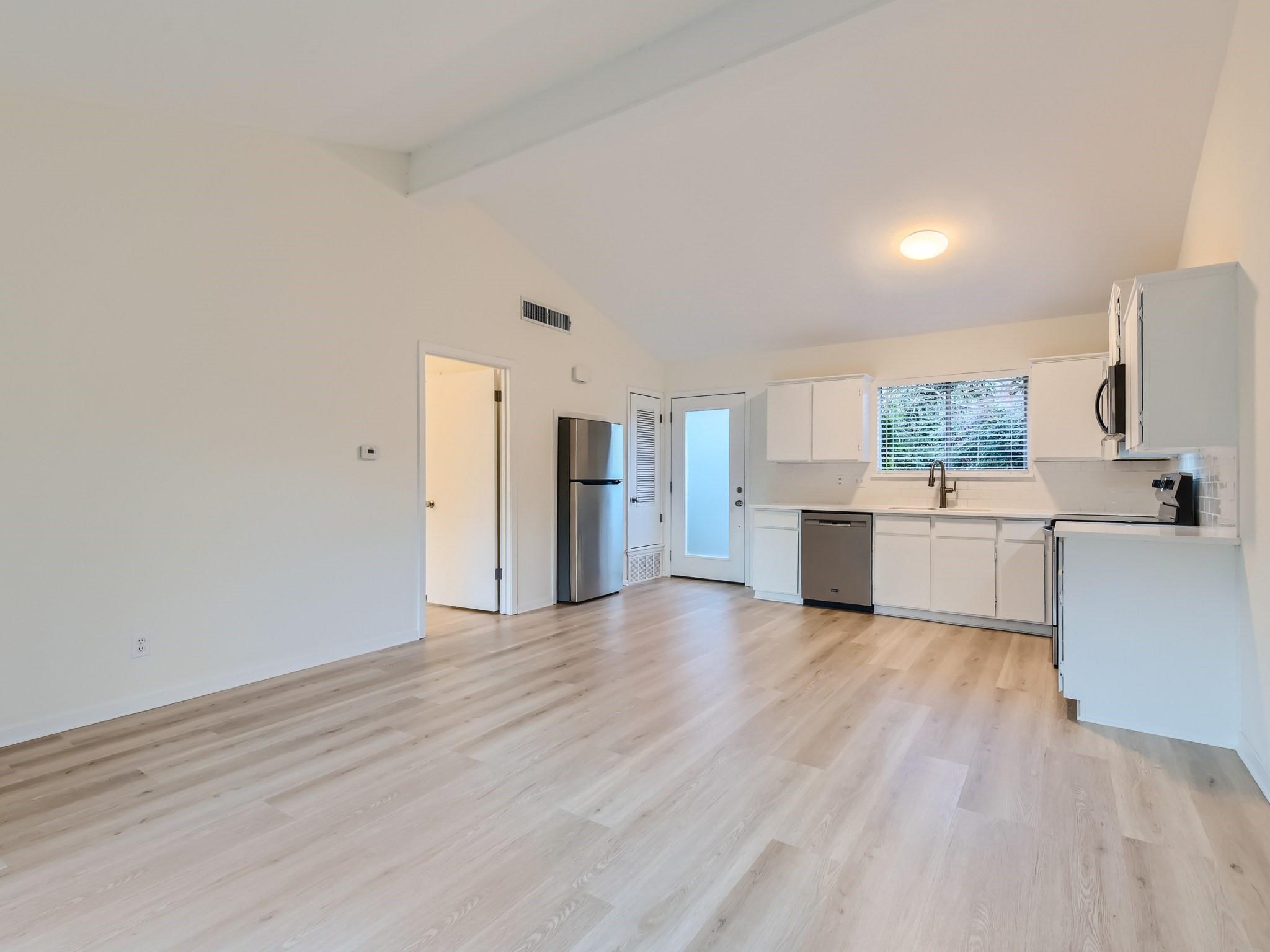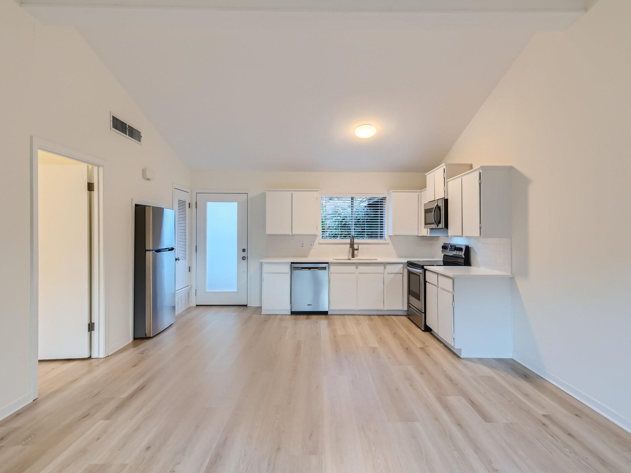 Rental opportunity in the trendy South Lamar neighborhood! This one bed/one bath unit is available for someone to call home. Located in Austin's 78704, 2 miles south of downtown Austin, bike to Zilker Park, Barton Springs Pool and hike and bike trails, walkable to tacos and music! Move-in ready! Flooring, paint and kitchen counters and appliances were added in 2022. Beautiful views to the back yard when you walk in the front door thanks to the tall sliding glass doors taking you to the deck where you can enjoy the views of nature and Tom Lasseter Park.