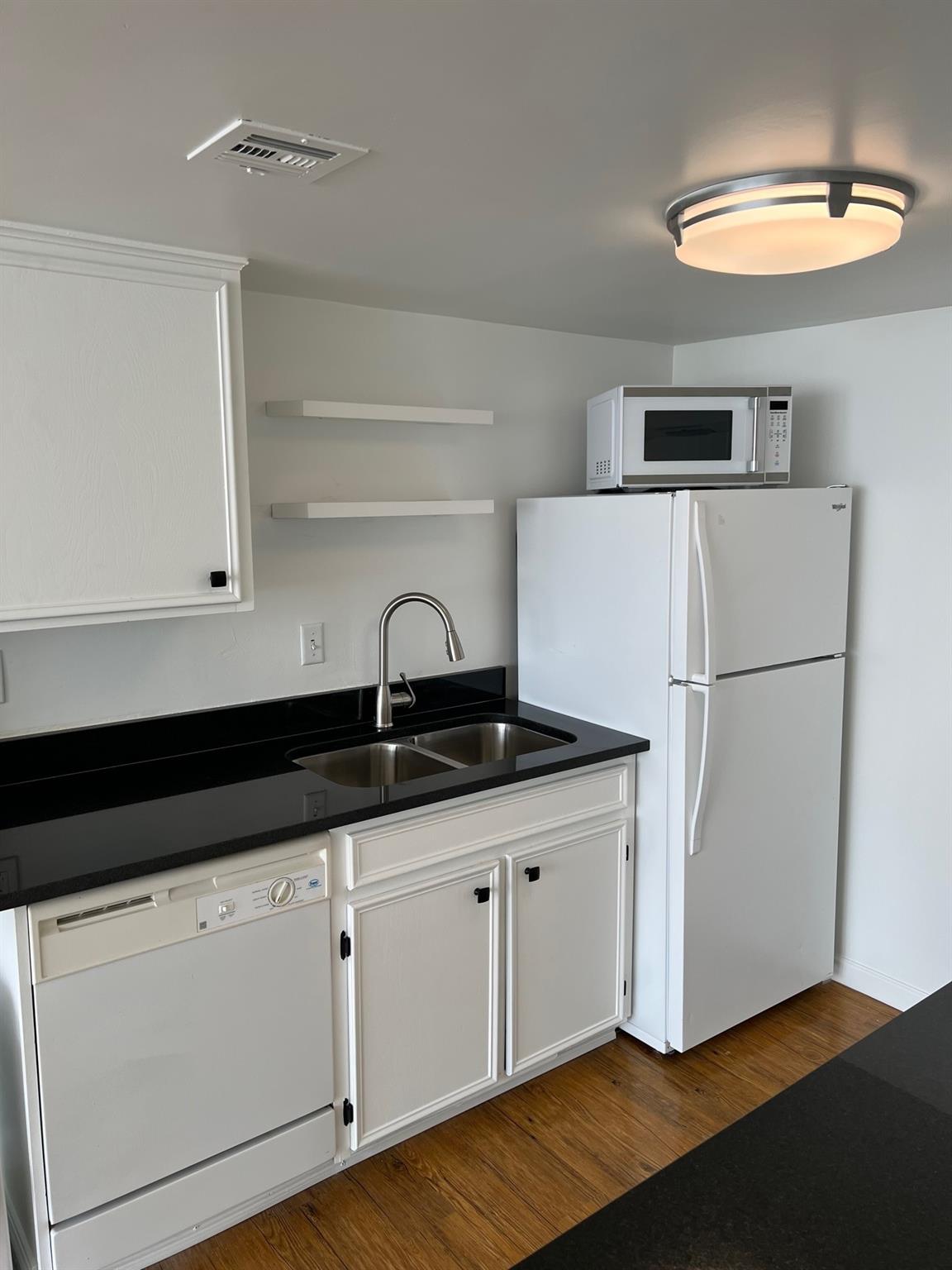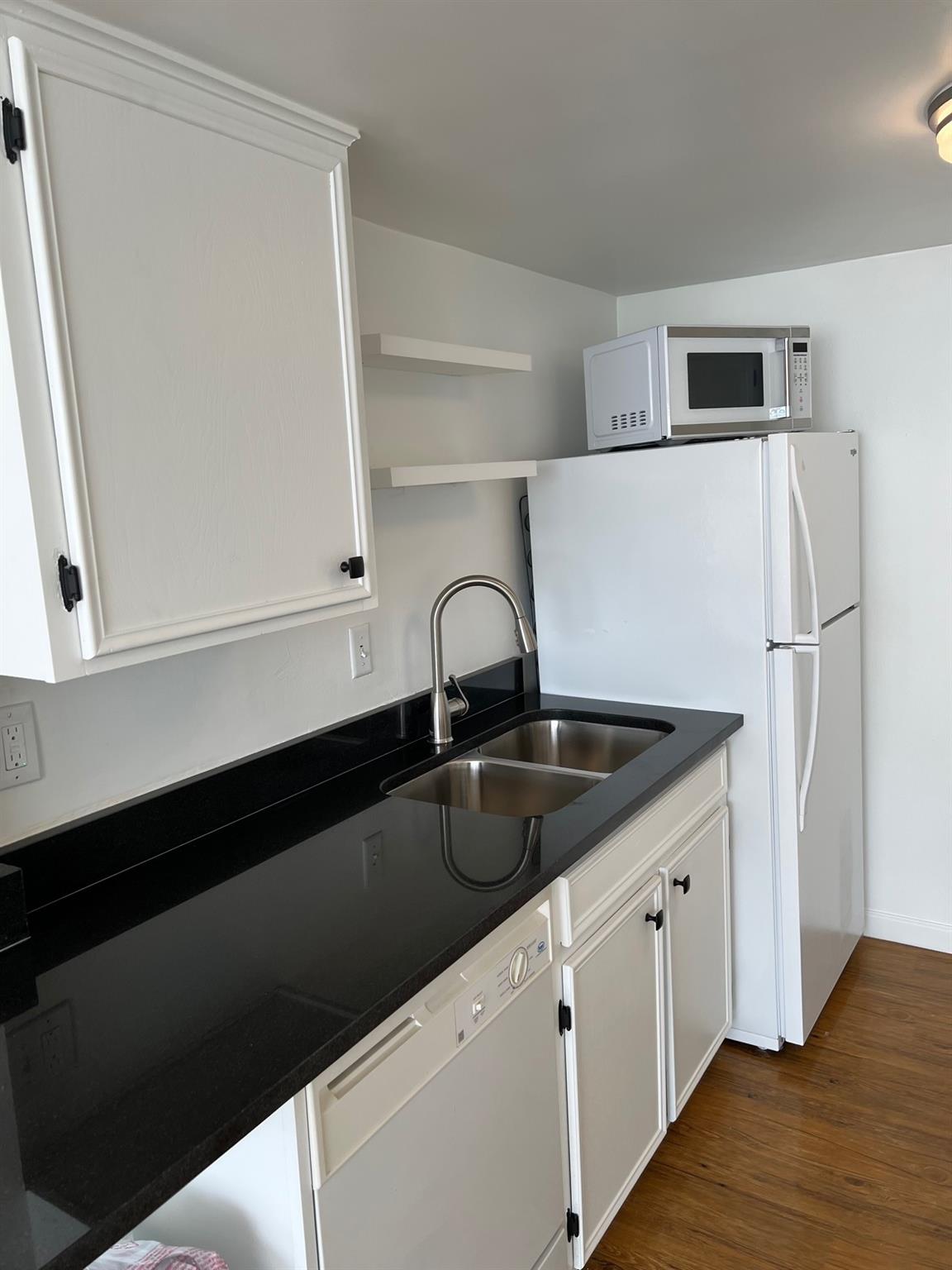 Remodeled 1 bedroom very spacious. Open kitchen with granite counters, New cabinets. Large rooms walls of natural light. Walk in shower with updated cabinets, mirror and lights.