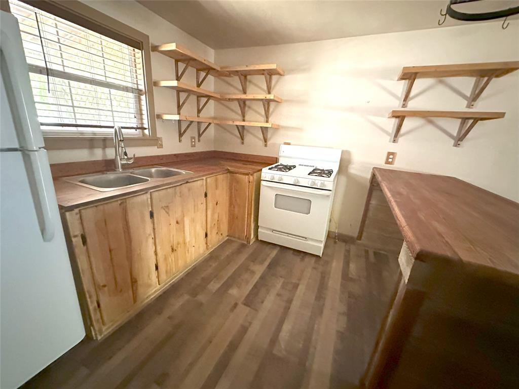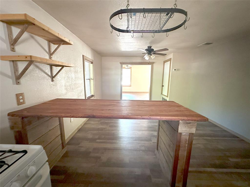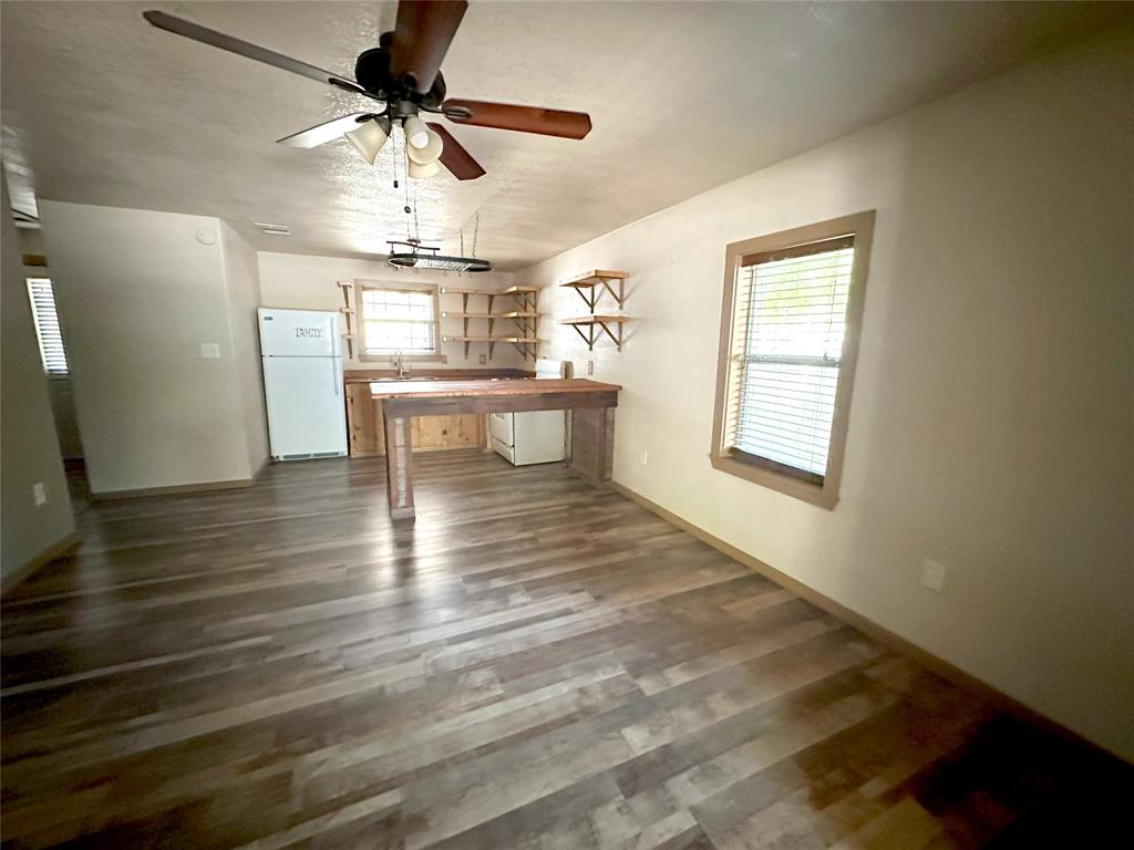 Discover the perfect blend of classic charm and modern convenience in this well-maintained two-bedroom, one-bathroom home, ideally situated on an oversized lot in a prime location. Open living, dining and kitchen living - live larger than expected - the kitchen features butcher block countertops and open shelving giving a touch of rustic charm into the space. The porches offer ideal spots to unwind and and watch the world go by. Choose between the welcoming front covered porch, where you can visit with friends and neighbors, or the shaded back porch, offering a private oasis for relaxation and leisure. Just blocks from Lockhart’s happening square – this one is an idea spot!