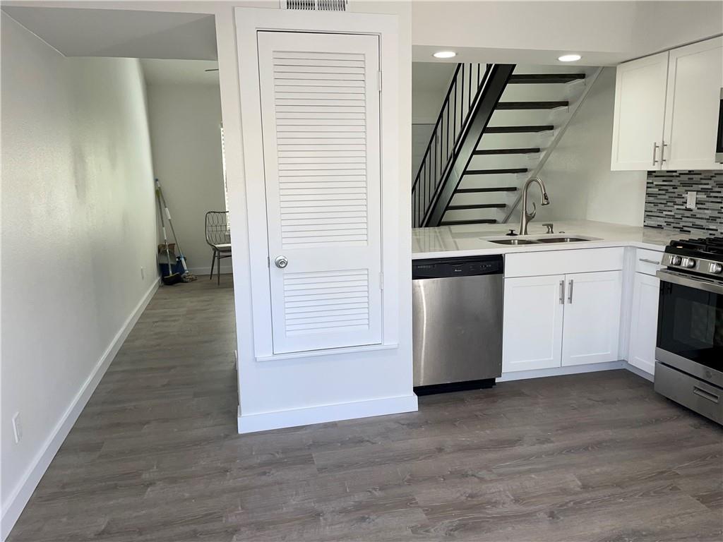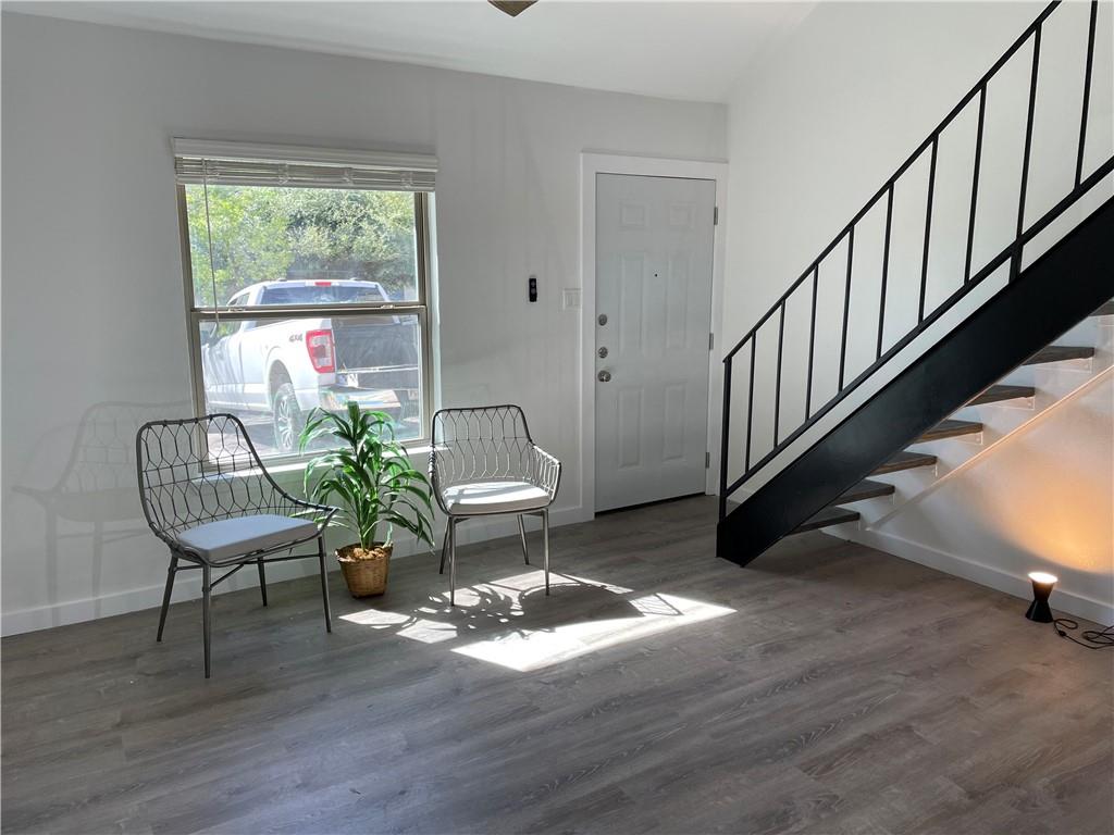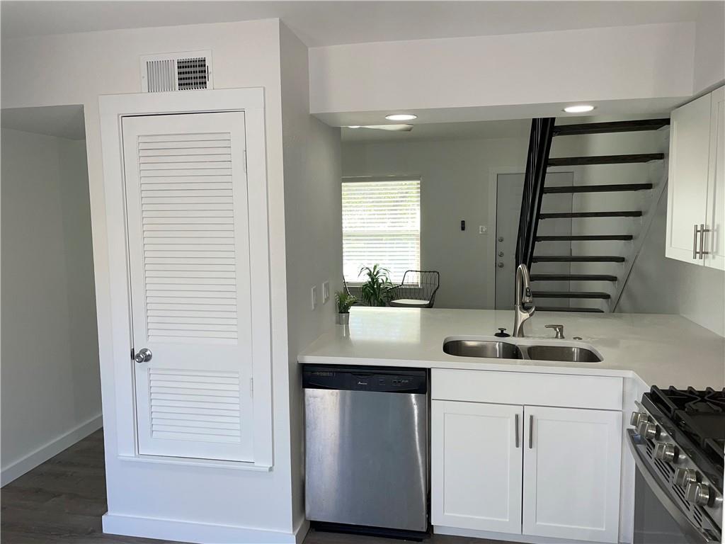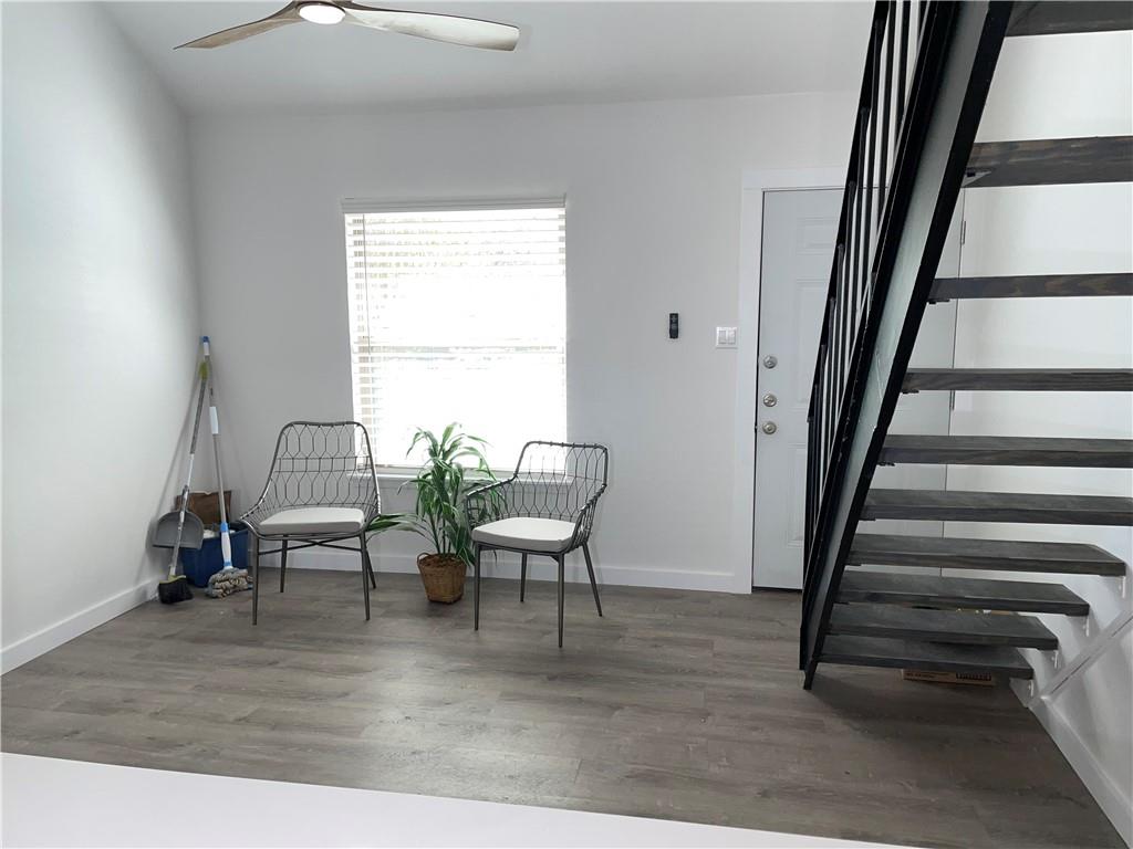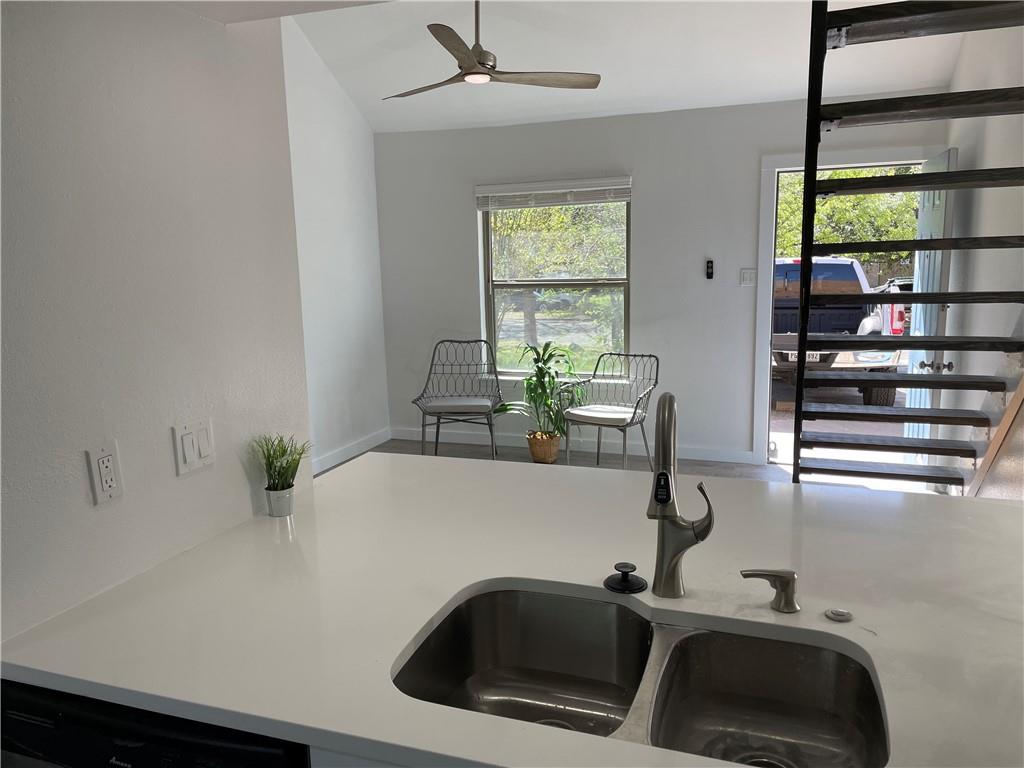 ACANT & READY...¡wOw! lots of updates include upgrade cabinets and countertops...stack washer and dryer in kitchen...large eat-in silestone kitchen also has breakfast bar open to vaulted living ...french doors from kitchen/dining open to fenced private patio with large shared yard beyond...upstairs loft style bedroom has updated bathroom and walk-in closet...EZ parking right in front...A#1 location with great access to South Congress and downtown. no cat please. dog is ok. Agent: please see MLS attached for instruction how to submit the app and payment, include the ID & financial document for faster process.