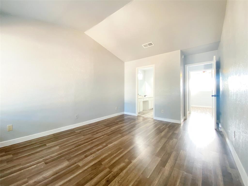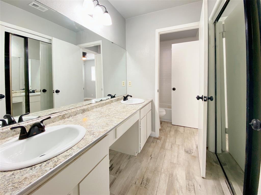 The ensuite bathroom comes with a dual vanity, a built-in tub, and a walk-in closet to keep your wardrobe organized.