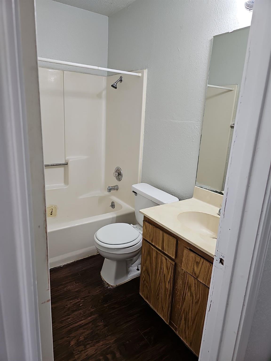 3 bedroom, 2 bath with 1 car garage. Mother in Law floor plan. Living area features high ceiling and wood burning fireplace. Kitchen features all appliances and pass through bar to living area. Carpet and blinds throughout. Full size washer and dryer connections. Fenced back yard, lots of shade trees. Convenient to shopping, schools and highways/toll.