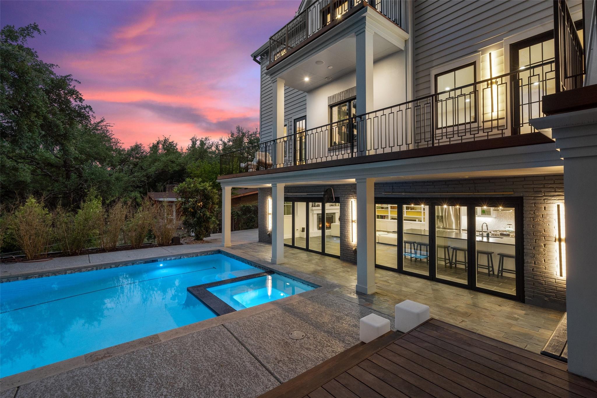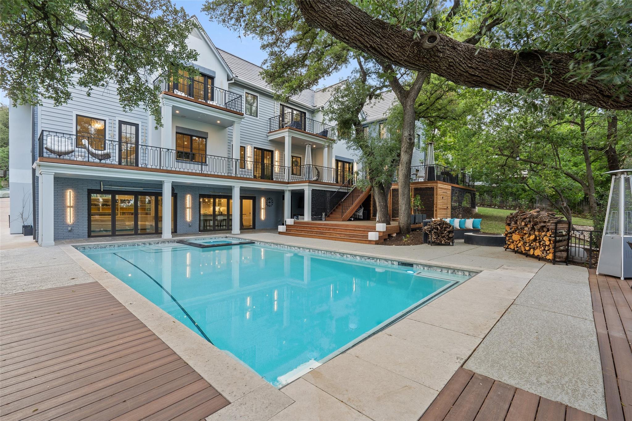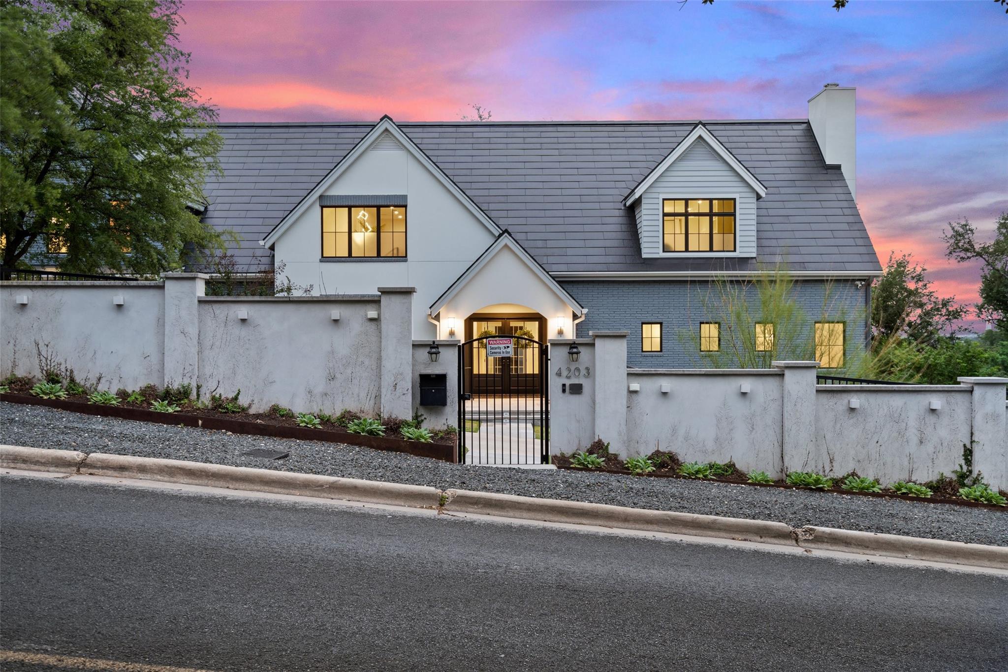 Experience the epitome of modern and elegant living in this exquisite property nestled in the heart of Austin,TX designed by Studio Steinbomber and built by Mulligan Construction.Gated & located on over .511 acre boasting unparalleled sophistication, quality craftsmanship and stunning architectural design, this home offers a lifestyle of luxury and convenience. Spacious and meticulously designed interiors, beautifully landscaped outdoor spaces, main level open-concept living areas ideal for gatherings and family time, a gourmet kitchen equipped with state-of-the-art appliances with sub-zero, 3 ovens, and premium custom cabinetry and finishes including quartz counters and a butler's pantry. FIVE luxurious & ample bedrooms w/en-suite bathrooms, including a the primary suite retreat for ultimate comfort with spa-like bathroom with a steam shower and wood tub. Two dedicated offices and a gym complete the main level. The first home in Austin to install a full Tesla solar roof, this home reaps the benefits of energy efficiency. The exterior is an entertainer's dream with easy access for indoor/outdoor gatherings, a sparkling heated pool and hot tub, fire pit, playscape and expansive decks.The lower level features an additional fully equipped kitchen with one full and half bathroom. The intentionally thought out lower level with its retractable doors easily serve the pool area and provide an open flow for catering events and an additional space that could also be an in-law plan or game area.This home caters to many flexible uses.The circular drive and attached 2 car garage with EV charging provides ample parking. Location highlights include living on one of Austin's most desirable neighborhoods and premium streets.Proximity to shopping, dining, and entertainment options including access to parks, trails & downtown. Access to both public and private top-rated schools nearby. 4203 Balcones is a serene oasis and stylish home centrally located.A masterpiece of luxury living.