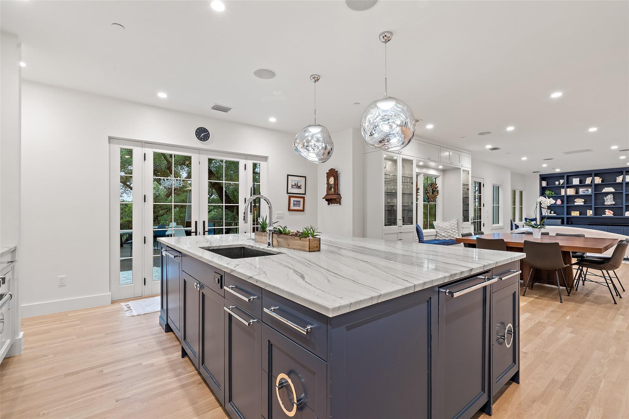 | Interior Features | Bar, Bookcases, Breakfast Bar, Built-in Features, Ceiling Fan(s), High Ceilings, Granite Counters, Quartz Counters, Stone Counters, Double Vanity, French Doors, In-Law Floorplan, Interior Steps, Kitchen Island, Multiple Dining Areas, Multiple Living Areas, Open Floorplan, Pantry, Recessed Lighting, Smart Home, Smart Thermostat, Soaking Tub, Sound System, Storage, Walk-In Closet(s), Wired for Sound | |