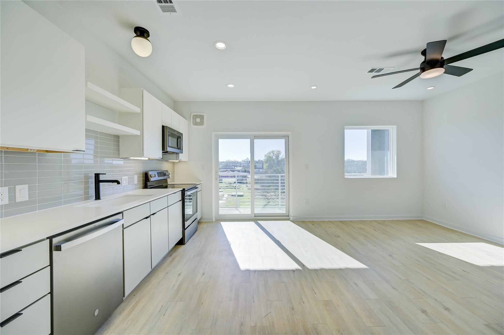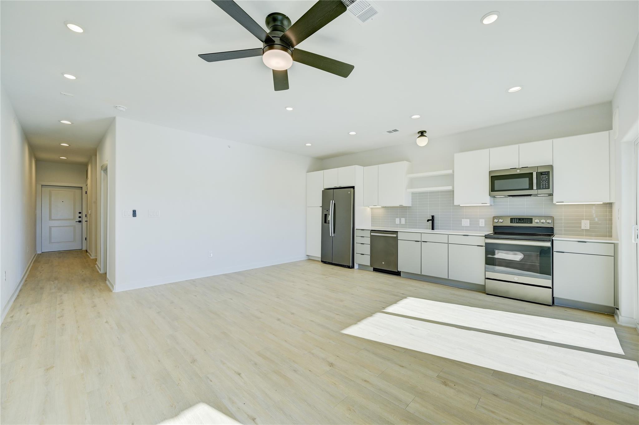 JUST LISTED!! Lease Rate Negotiable! Gorgeous brand-new penthouse condo with spacious West facing balcony and loaded with all the bells n whistles including full-size appliances,...Maytag washer and Dryer, stainless steel fridge + new ceiling fans and fixtures. There are only three neighbors on the top floor! Enjoy the convenience of being just 3 miles from downtown Austin! The condo comes with private and secured/gated parking, a smart thermostat, recessed lighting, dual vanities, a walk-in shower, and a walk-in closet with built-in shelving. Be the first to call this top-floor unit home!