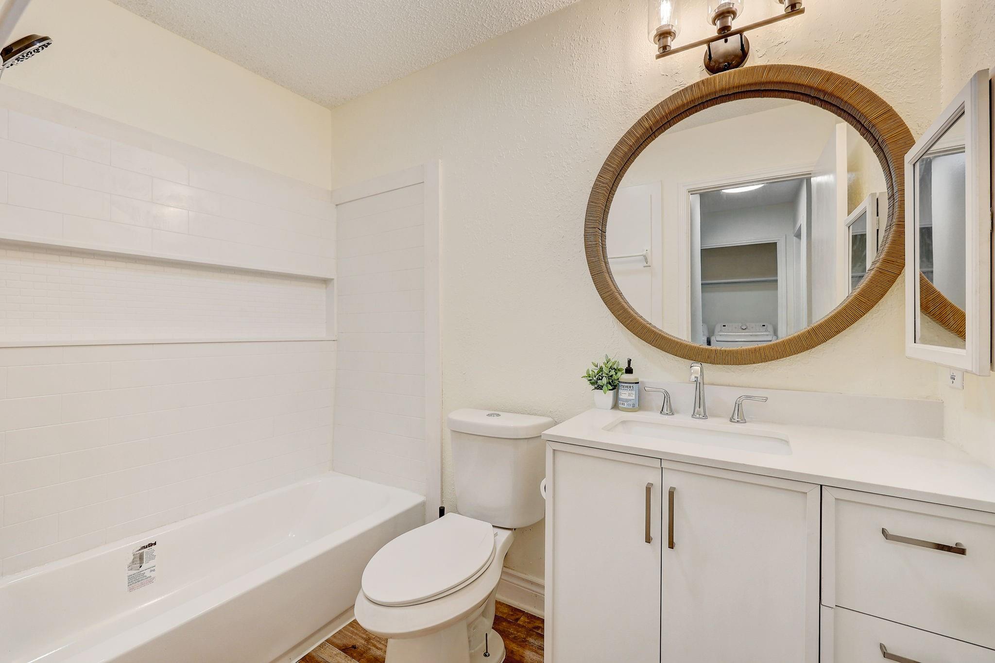 Recently Renovated from top to bottom: Brand new flooring and windows, fully remodeled bathroom and new kitchen appliances, including a luxurious French door refrigerator, a large single sink, gas stove, new washer and dryer!
