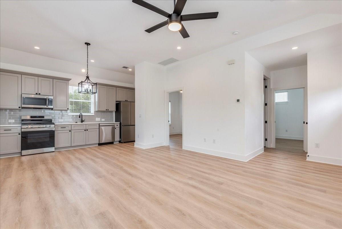 Welcome to your brand new modern home, just a few blocks from Main Street, Kyle! Be the first to live in this charming 2-bedroom, 2-bathroom home. Step inside to an open layout with luxury vinyl plank floors—no carpet, making maintenance a breeze. The spacious living room flows into a stylish kitchen featuring quartz countertops, stainless steel appliances, and a tucked-away pantry. Each bedroom has a ceiling fan and its own bathroom. The primary suite includes a walk-in closet and an ensuite bathroom with a walk-in shower and ample counter space. Enjoy the best of Kyle, with nearby parks, a public library, and popular spots like Texas Pie Company, The Railhouse, and Kyle Pizza. This move-in ready home comes with a refrigerator, washer, and dryer. Available for immediate occupancy. Call today to schedule a viewing before it's gone!