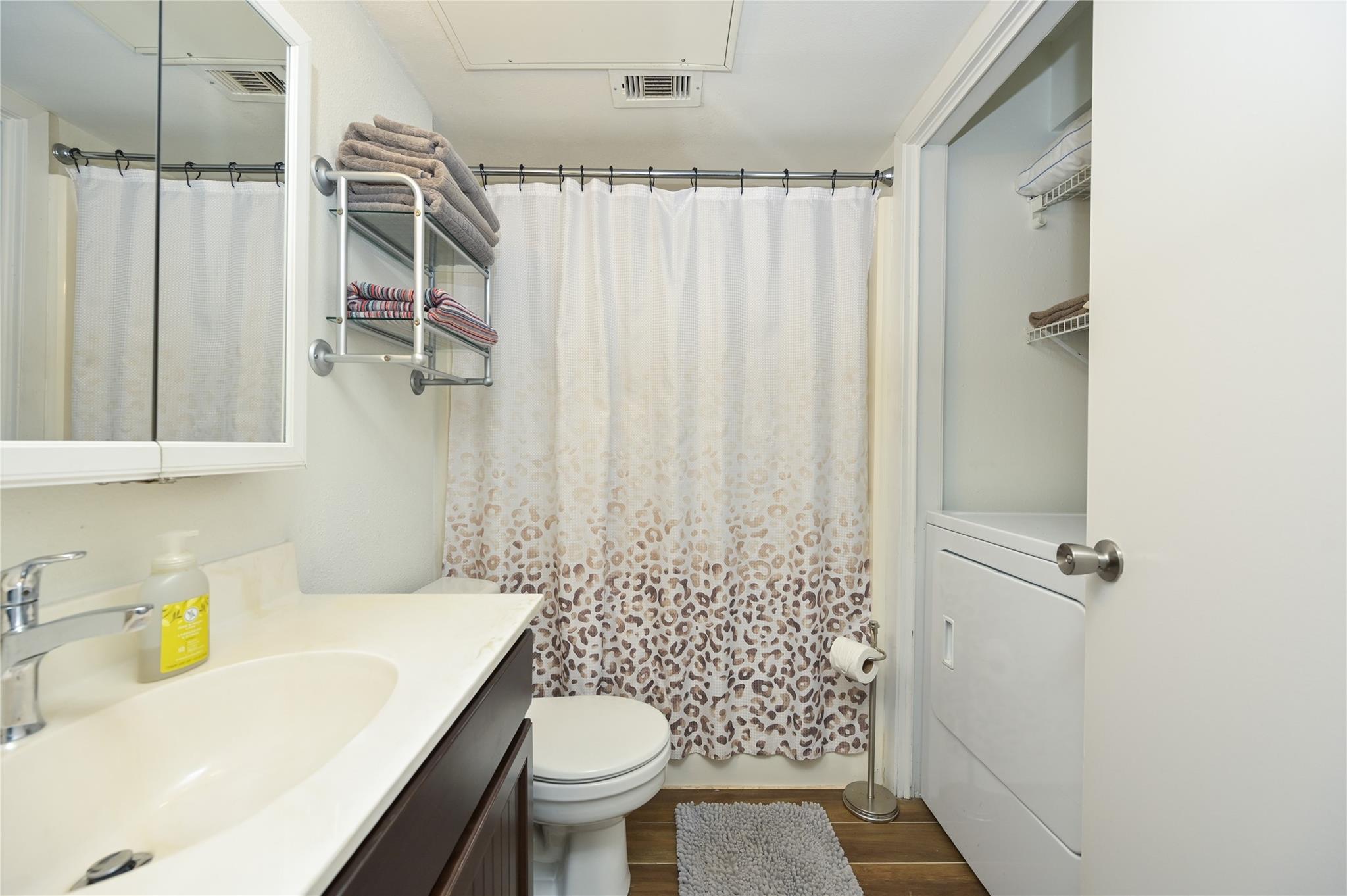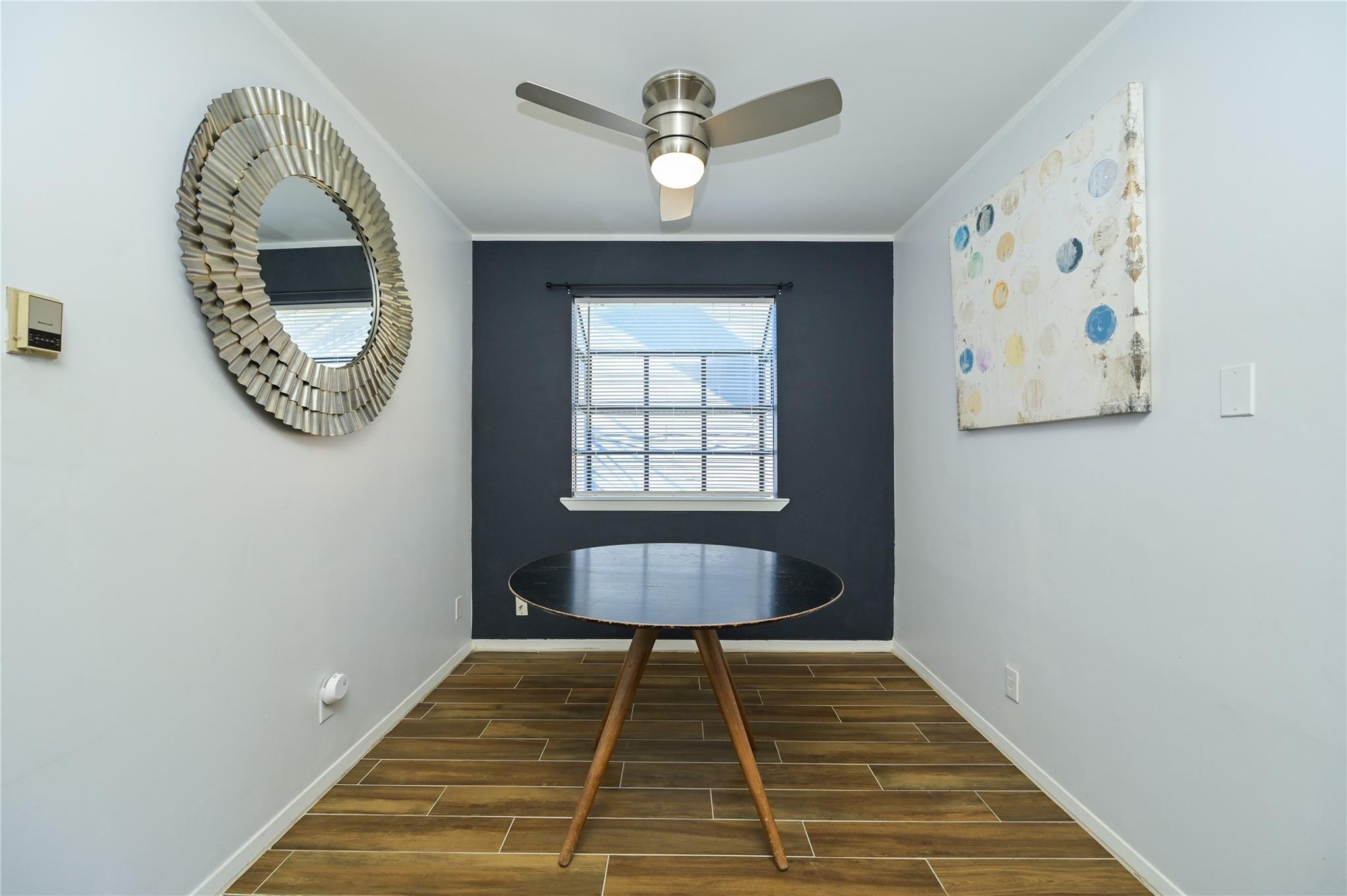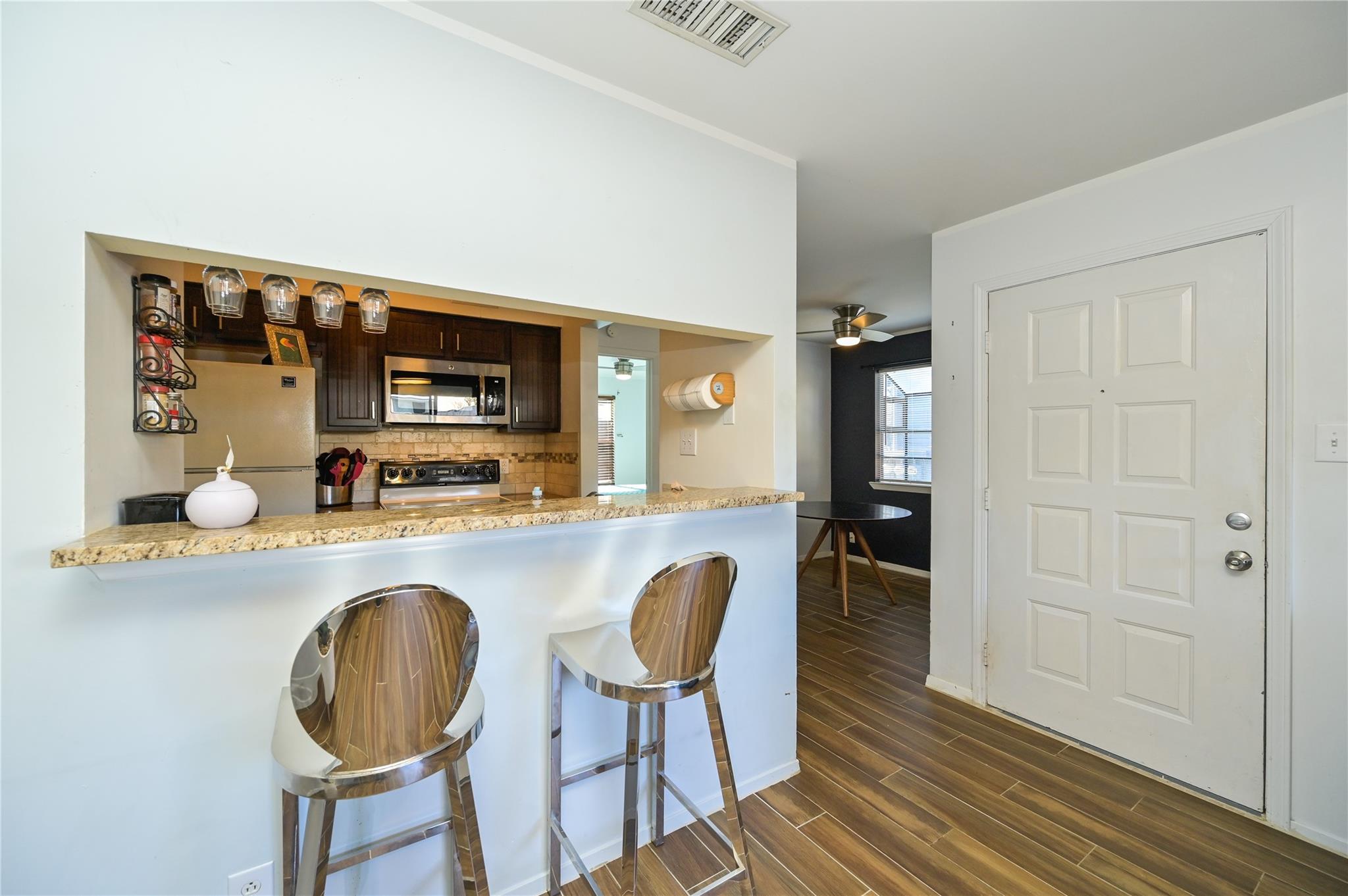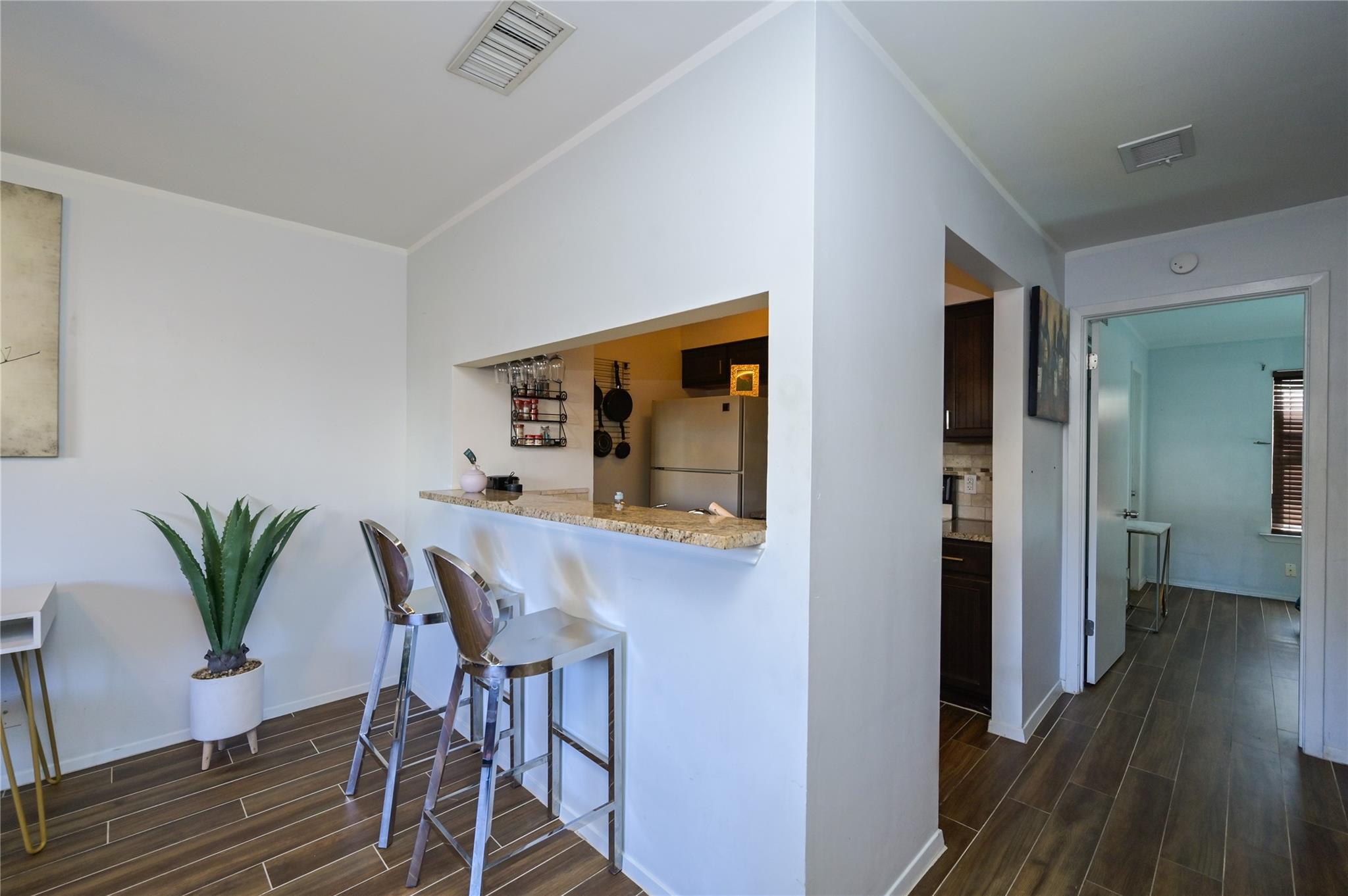Updated first floor condo with a washer dryer in the bathroom. Wood look tile throughout and fenced yard area. All pets are negotiable under twenty pounds. Looking for a one year lease but short term furnished rental possible.