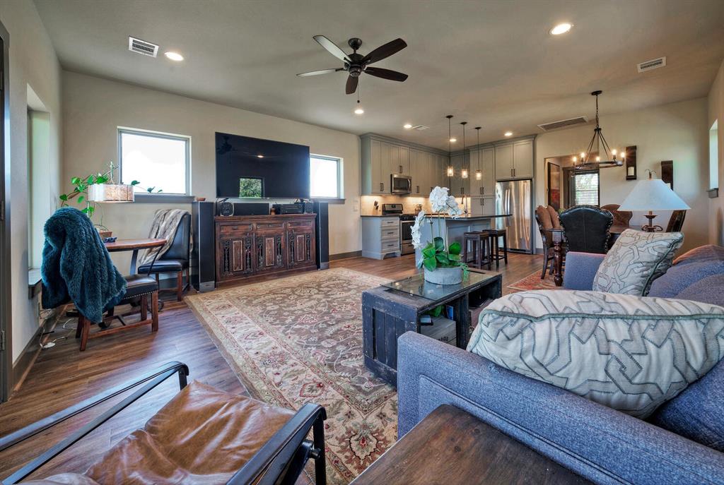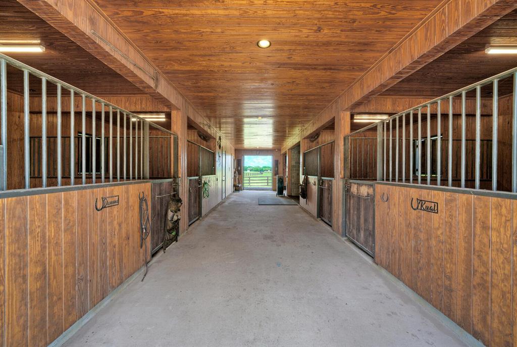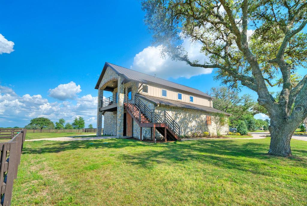 215+/- acres of picturesque land, considered the Hamptons for Houston Ranch Buyers, is conveniently accessible off Hwy 71 or Interstate 10 and is located just an hour away from downtown Houston and 90 minutes from Austin. The ranch is adorned with magnificent live oaks, two serene lakes, and one mile of year-round Schweiner Creek that runs through the heart of the property. The main residence is a stunning, custom-built single-story home featuring 4,700 sq ft, 3 bedrooms, 2-1/2 bathrooms, an office, a game room, media room, and even a gun room. The home also features a spacious 3-car, 1,300 sq ft garage. Four wells conveniently located on the property provide ample water throughout. There are 2 existing cabins on the property, beautifully remodeled and possessing great potential for rental/VRBO. The property also includes an incredibly well-designed horse barn, complete with a beautifully appointed 1 bedroom apartment above. There is also a riding arena and horse paddocks of 1-2 acres each. There are two outbuildings, a shooting range, and a large toy barn/RV barn finished out with commercial HVAC and a bathroom. The property has approximately 5,000 feet of road frontage, bordered by lovely split rail fencing and multiple custom, laser-cut driveway gates along Frantz Rd. The current livestock count is about 60 head of cattle, donkeys, and four horses. This ranch is truly a one-of-a-kind property that offers limitless possibilities for outdoor enthusiasts, hunters, ranchers, livestock, and those seeking a tranquil retreat. With its stunning natural beauty, luxurious amenities, and prime location, this property is a must-see for anyone looking for the ultimate ranch experience.