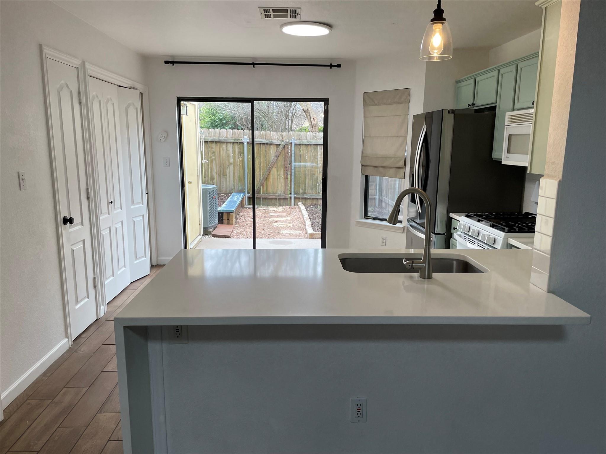 This home features 2 bedrooms both on the 2nd floor, 1.5 bathrooms, and tile downstairs for easy maintenance. This home includes refrigerator, washer, and dryer with the rent. It has a fenced in backyard for privacy. This home is located just minutes from the Domain in North Austin. Must make at least 3x rental income ($4,800) and looking for a credit score above 600 to apply. No broken leases or evictions will be considered. Only small dogs under 35 lbs and cats will be considered with a limit of 2 animals. There is assigned parking for the unit as well as ample parking nearby.