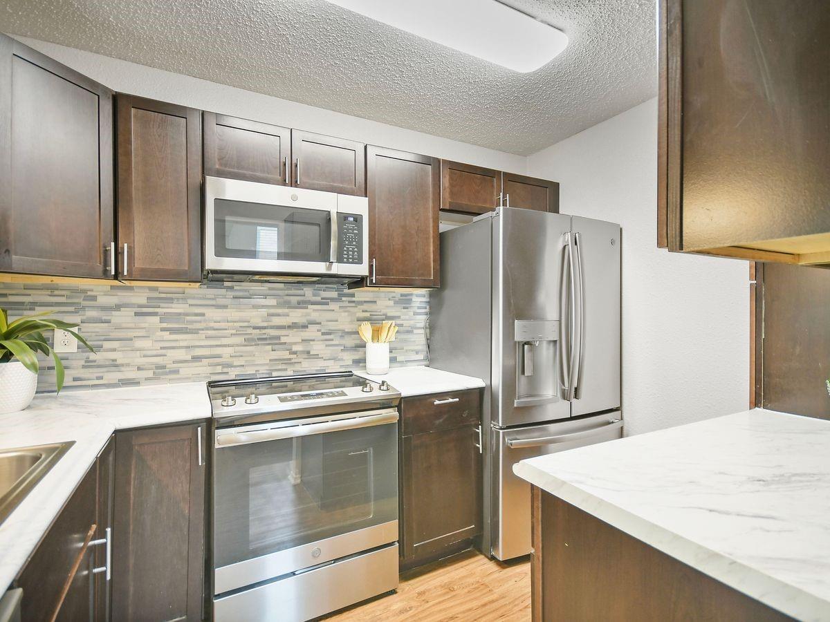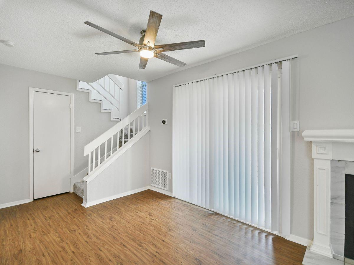 Welcome to your ideal Austin townhome! Nestled within a gated community, this conveniently located 2-bed, 1.5-bath townhome offers a pool, clubhouse, gym, and covered parking. Just minutes away, you'll find the Domain, Q2 stadium, Arboretum, CapMetro Rail, local craft beer breweries, and downtown Austin. Step inside to discover the updated kitchen, complete with stainless steel appliances, while upstairs features new carpet. The open floorplan layout is ideal for roomates, bright and spacious, and includes a small fenced yard. The family room boasts a charming wood-burning fireplace and built-ins, offering a cozy retreat. Tucked away in a private location within the complex, this townhome provides peace, tranquility, and the perfect Austin lifestyle.