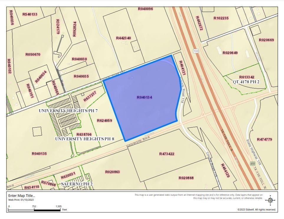 NW Corner of TOLL Road 130 and University Blvd ~ Buy all or Part ~ Subdivide at Buyers Expense into 2 Twenty Acre Tracts and One 21.624 Acre Tract ~ No Survey ~ Buyer and Buyer's Agent responsible for all Studies and Zoning Changes plus new Survey ~ Round Rock ETJ and City of Georgetown