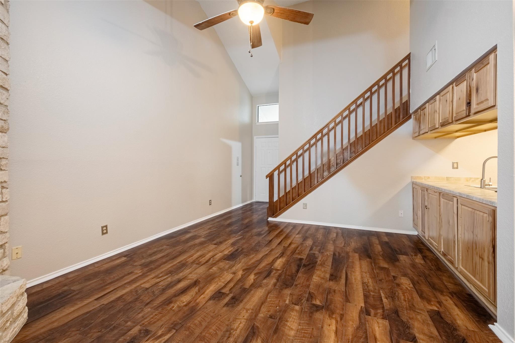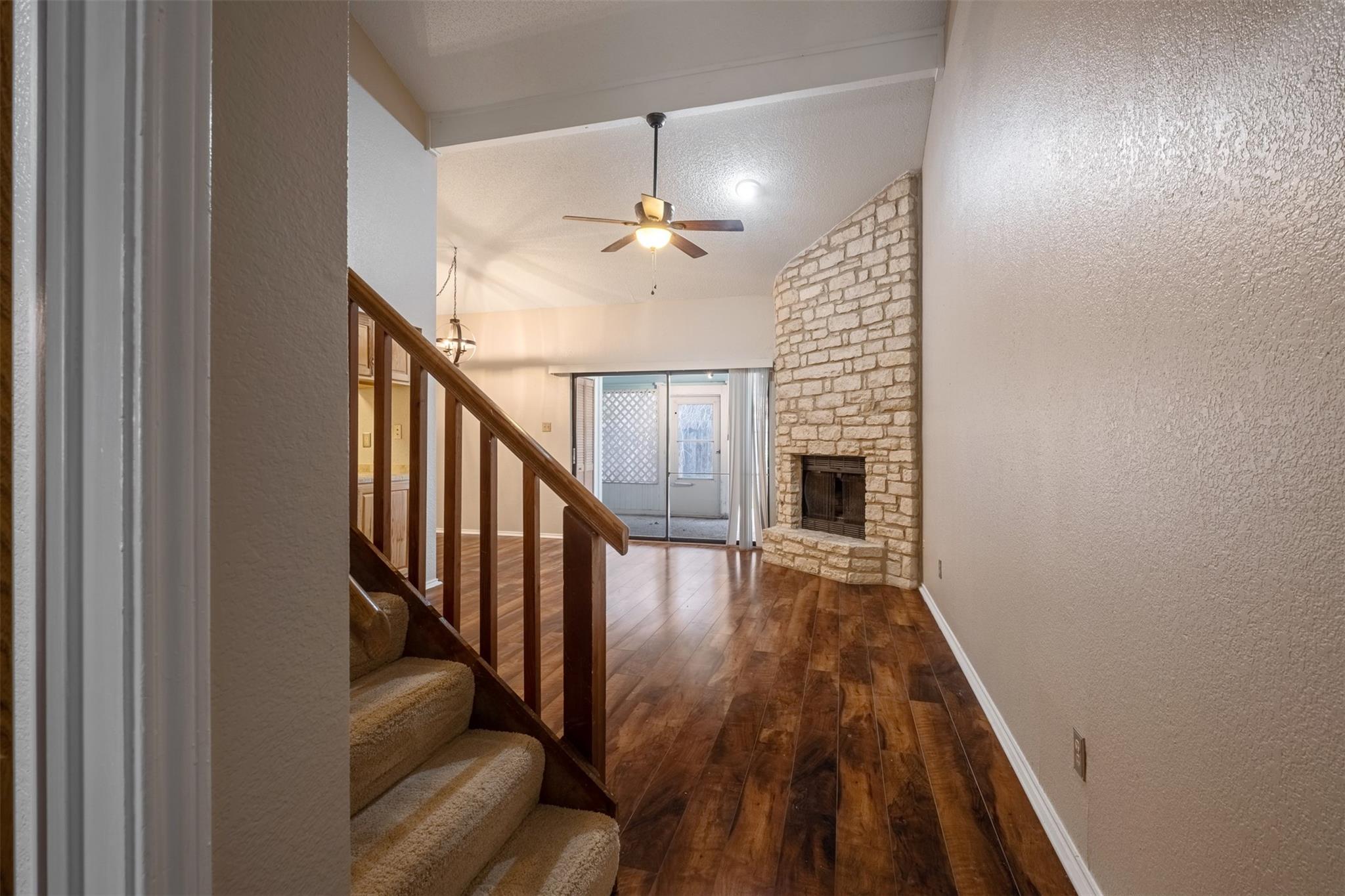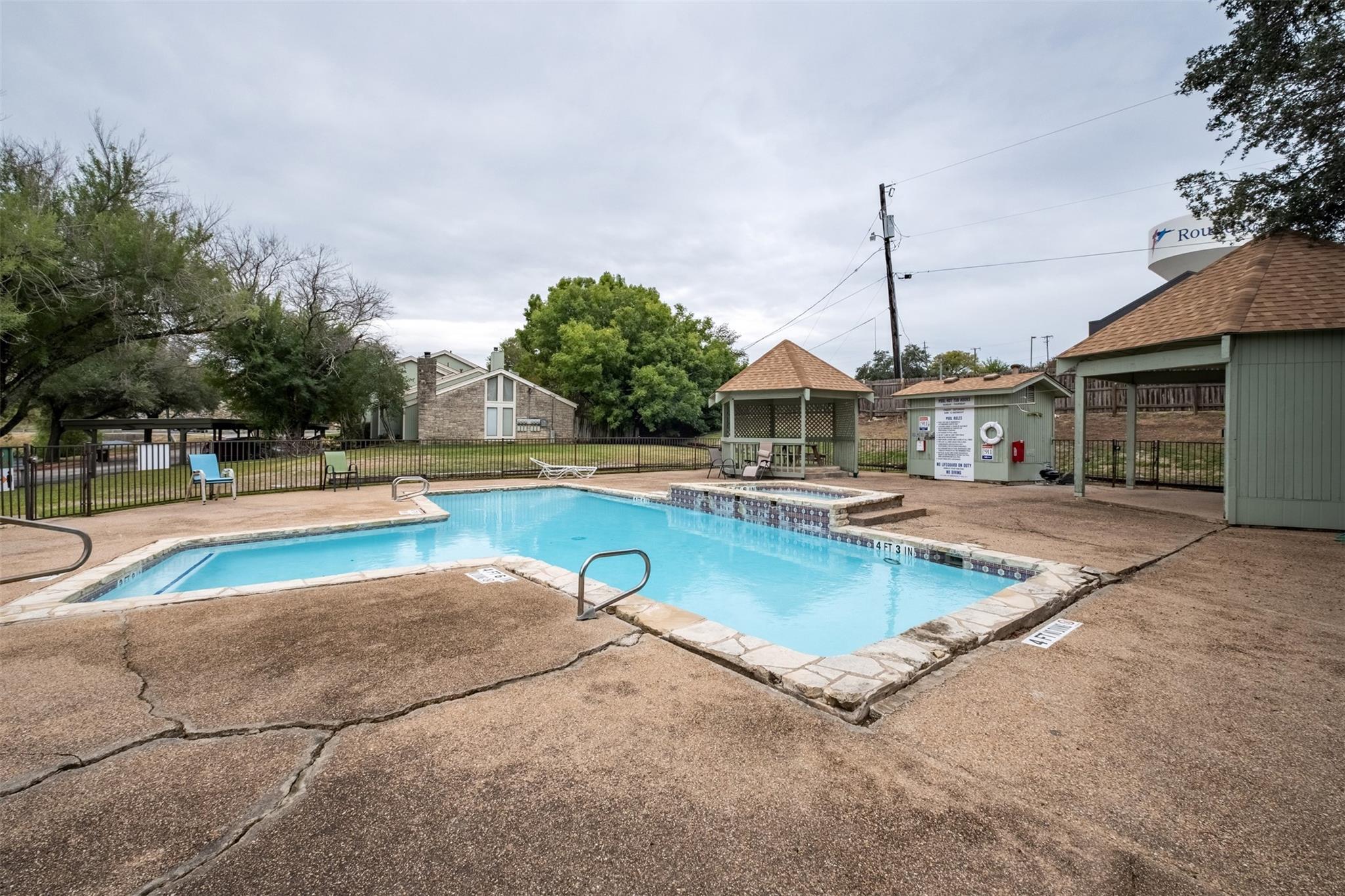 Delightful 2 Bedroom, 2 Bath Condo in Round Rock ~ Lovely Living Room w/ High, Vaulted Ceilings & Wood Floors ~ Cozy Fireplace ~ Designated Dining Area ~ Simple Kitchen w/ Gas Range, Tile Countertops, & Mosaic Backsplash ~ Huge Upstairs En Suite Bedroom w/ Private Balcony & Walk-In Closet ~ Main Level Primary Bedroom w/ Remodeled Bathroom ~ Relaxing, Enclosed & Covered Backyard Patio ~ Additional Shaded Backyard w/ Fence & Gate ~ Community Basketball Court & Pool ~ Nearby Sky Ridge Plaza, La Frontera Village, Boardwalk Shopping Mall, & Round Rock Crossing ~ Located Adjacent to IH-35 & Toll Road 45 for Quick Commutes! Technology Package provided with every lease for an additional $9.95 per month. Includes: Utilities Concierge Setup, Tenant Portal, 24/7 Maintenance & Free Credit Reporting