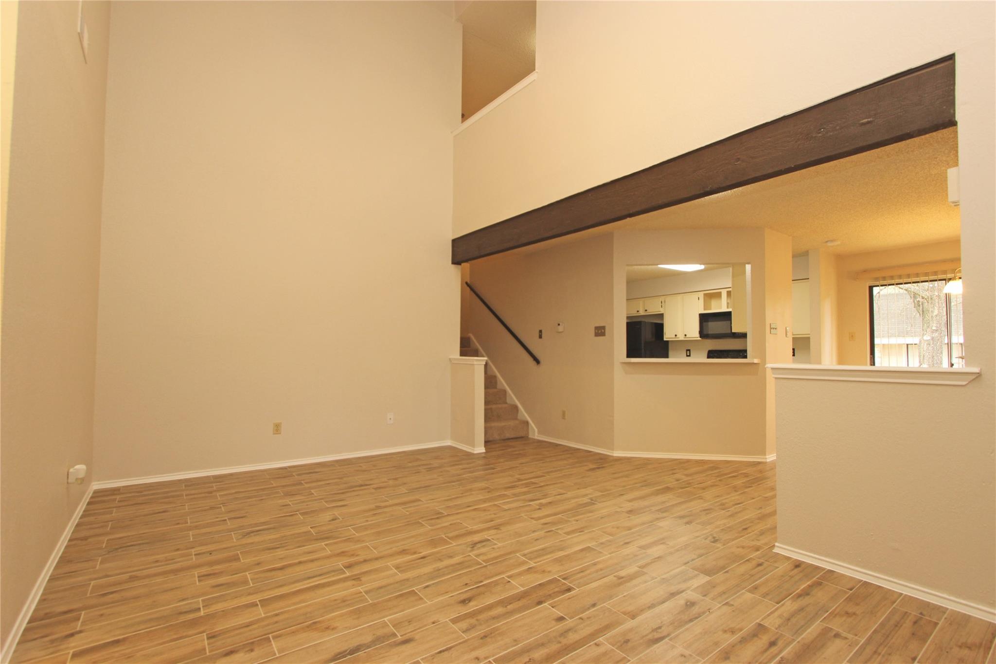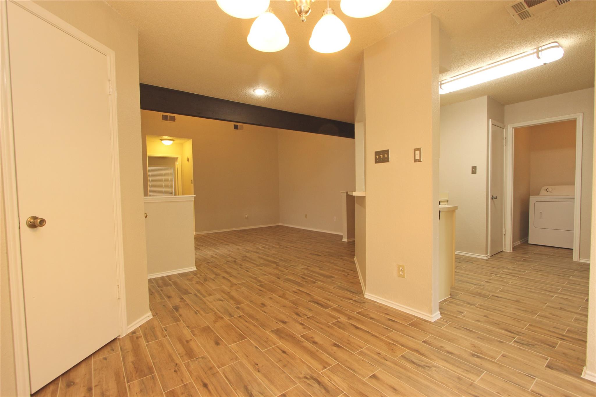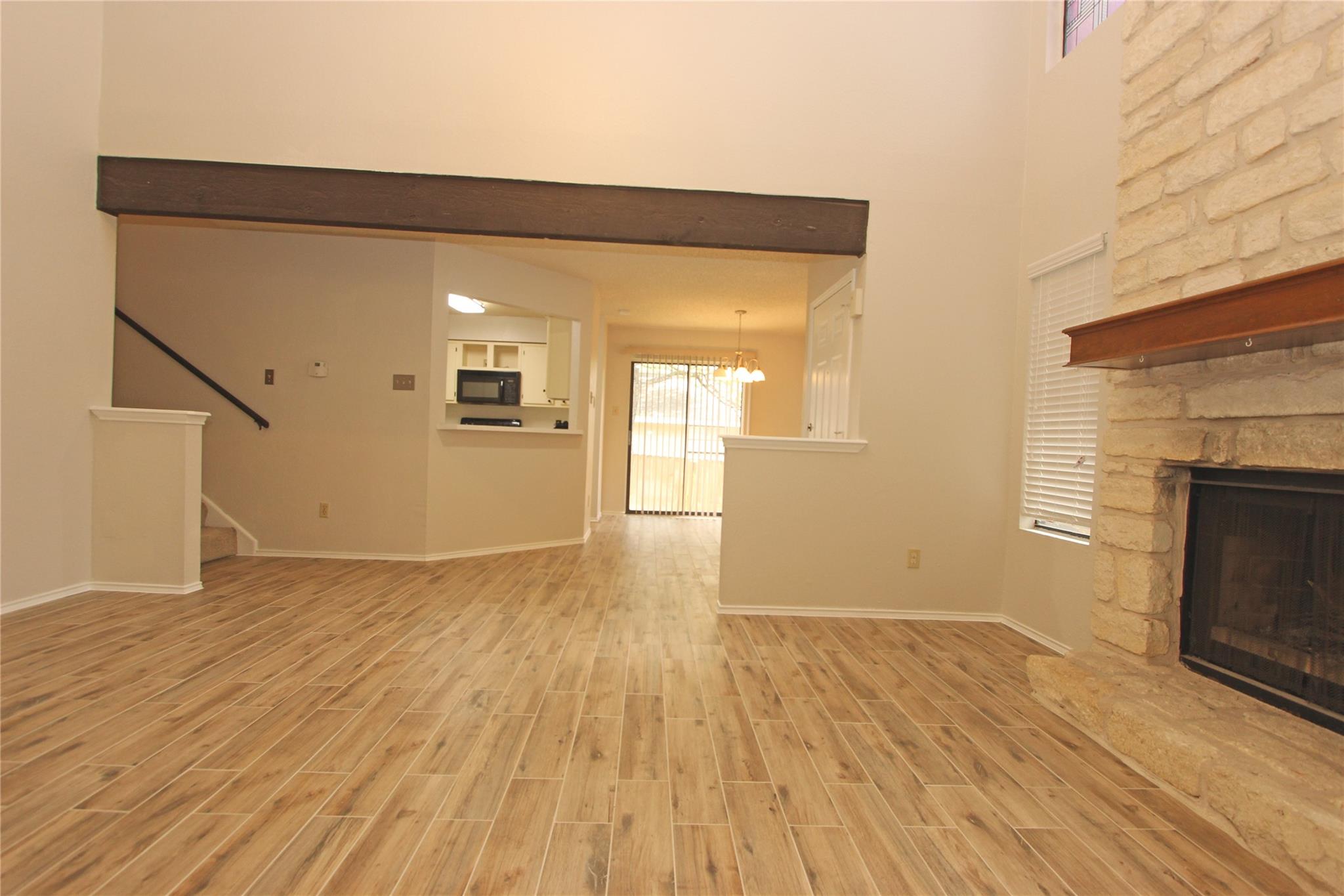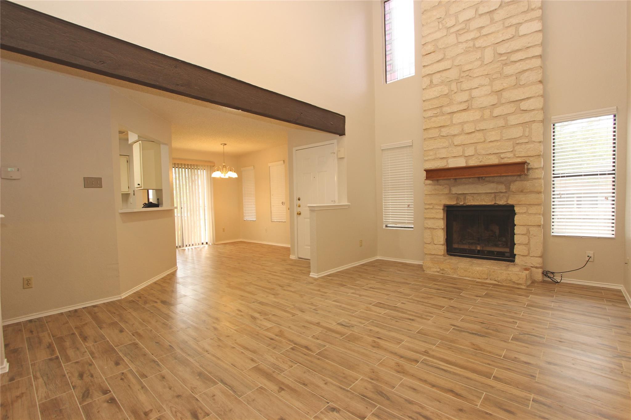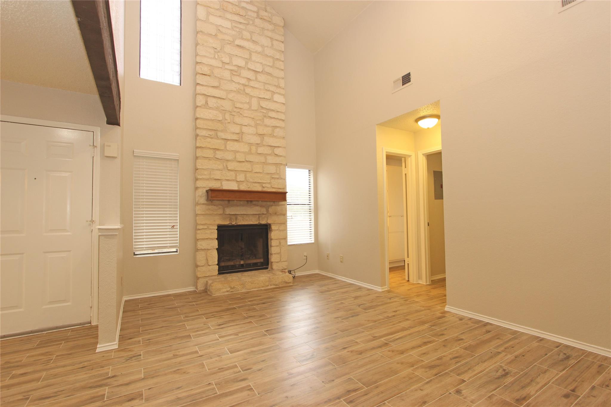 Recently remodeled duplex with new paint and wood plank tiles throughout the first floor. Unique design. Perfect for roommates or family. Tile in kitchen, dining area, downstairs BR and bathrooms. Upgraded appliances and comes with W&D. Large master bedroom with balcony. Soaring ceiling in living and master. Fireplace. Close to elementary school. Surrounded by single family neighborhoods. Broker associate/owner /w Landmark Properties. Lease Application Attached.
