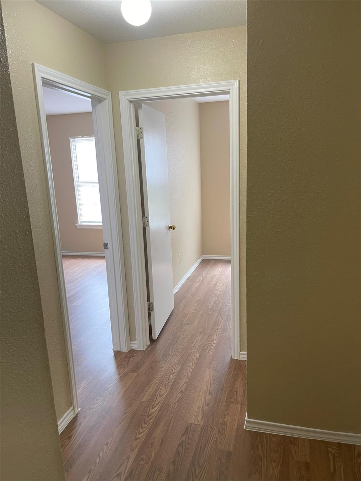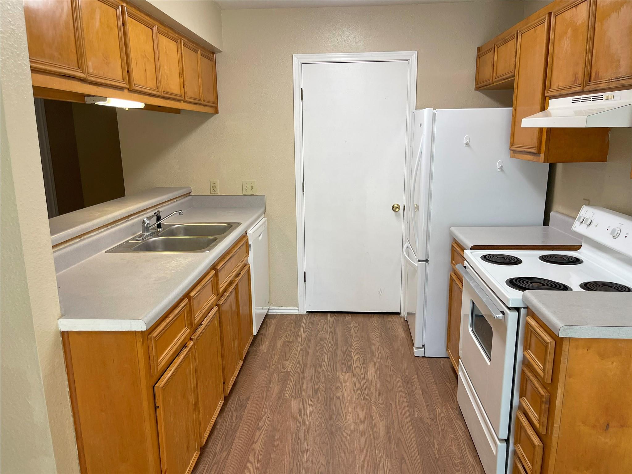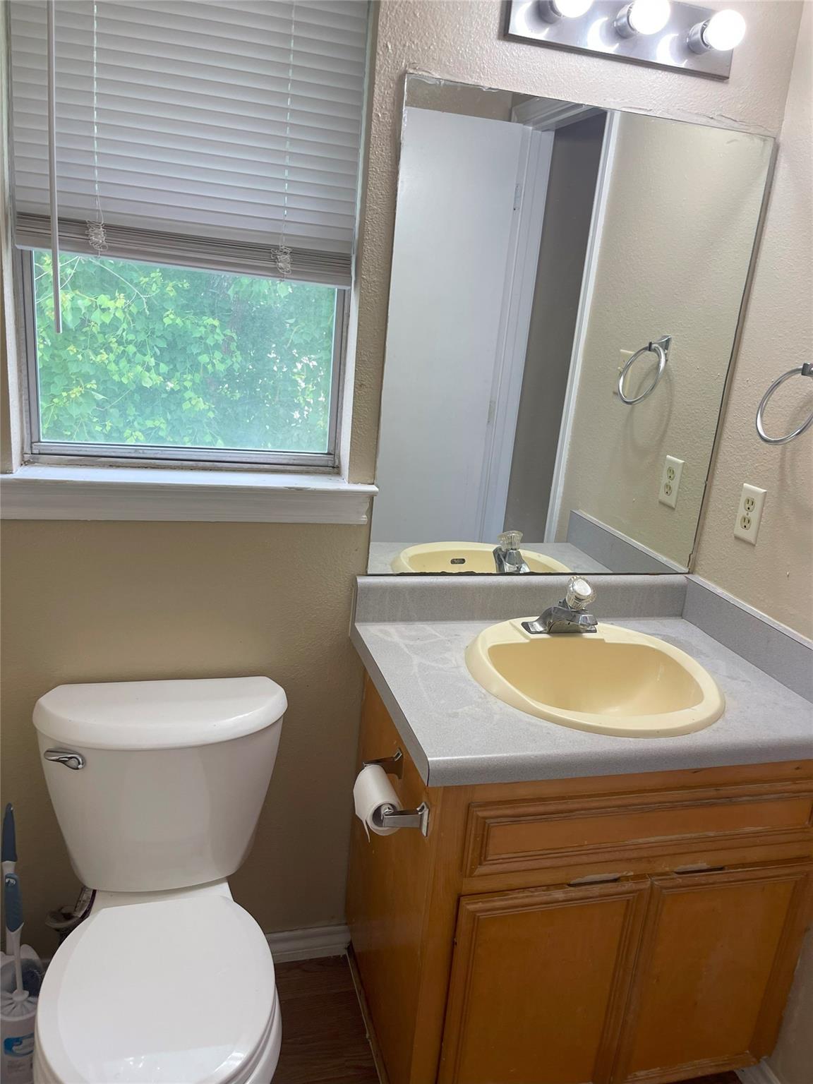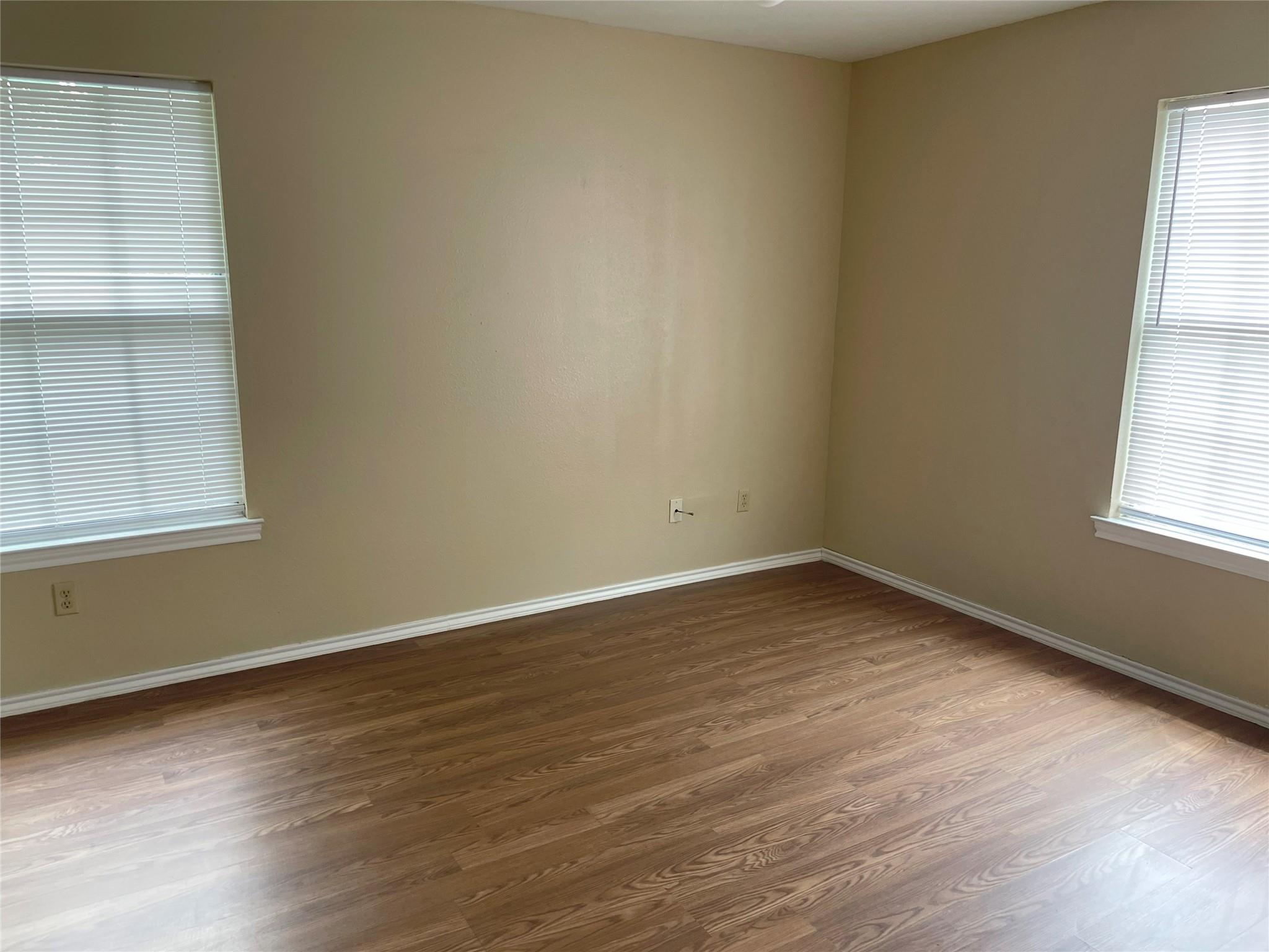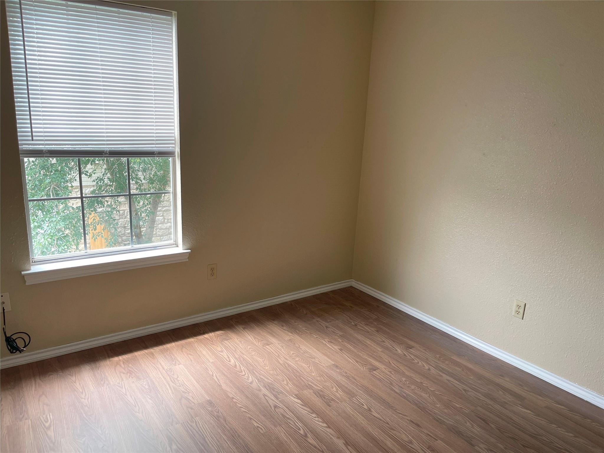 Just finished updating the unit! New paint, flooring, AC. small private patio with small storage area. Both bedrooms up, one half bath down.