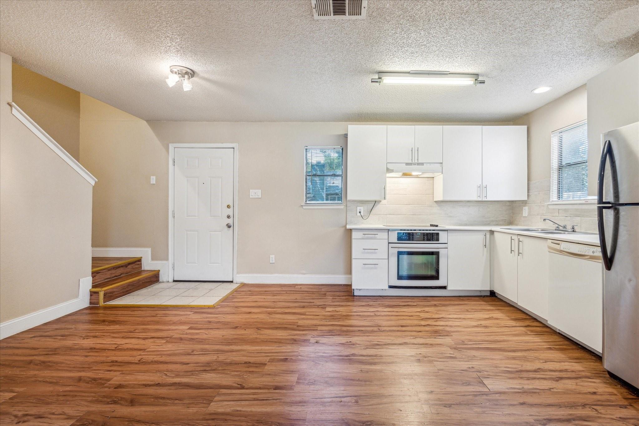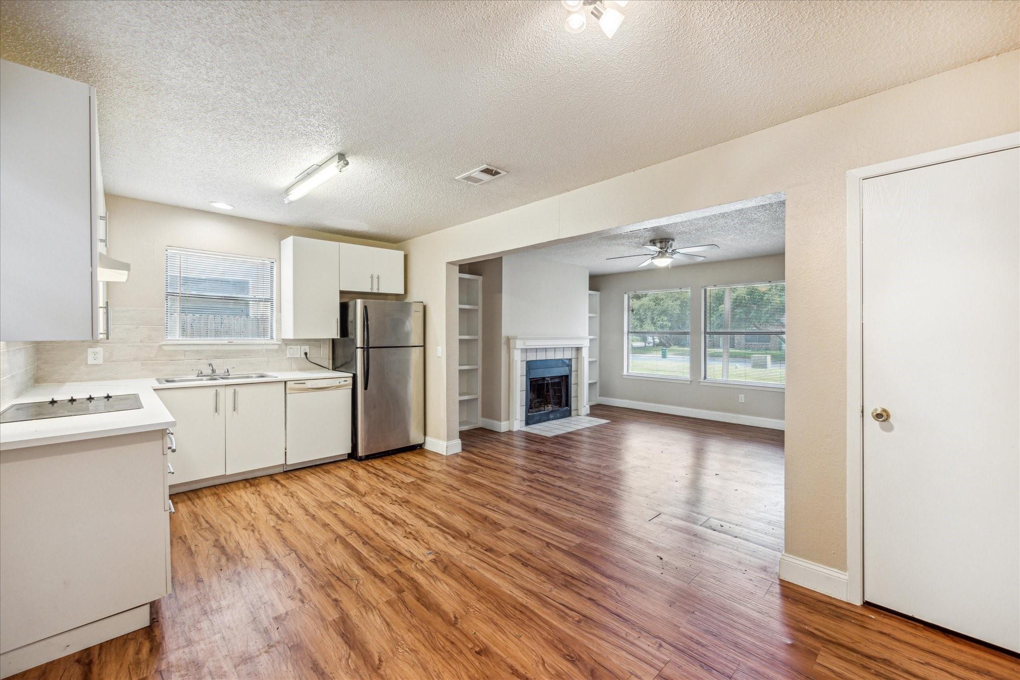 Welcome to this adorable, updated, South Austin 2 BR, 2 BA duplex! This home features super low-maintenance hard plank flooring throughout (NO CARPET). Additional highlights include a fireplace, washer/dryer hookups, a single-car garage, and a fenced yard. Conveniently located near popular spots like The Moontower, with South Park Meadows just a short 5-minute drive away. Don't miss out on this opportunity to embrace comfort and convenience in Tanglewood Forest! Refrigerator included!